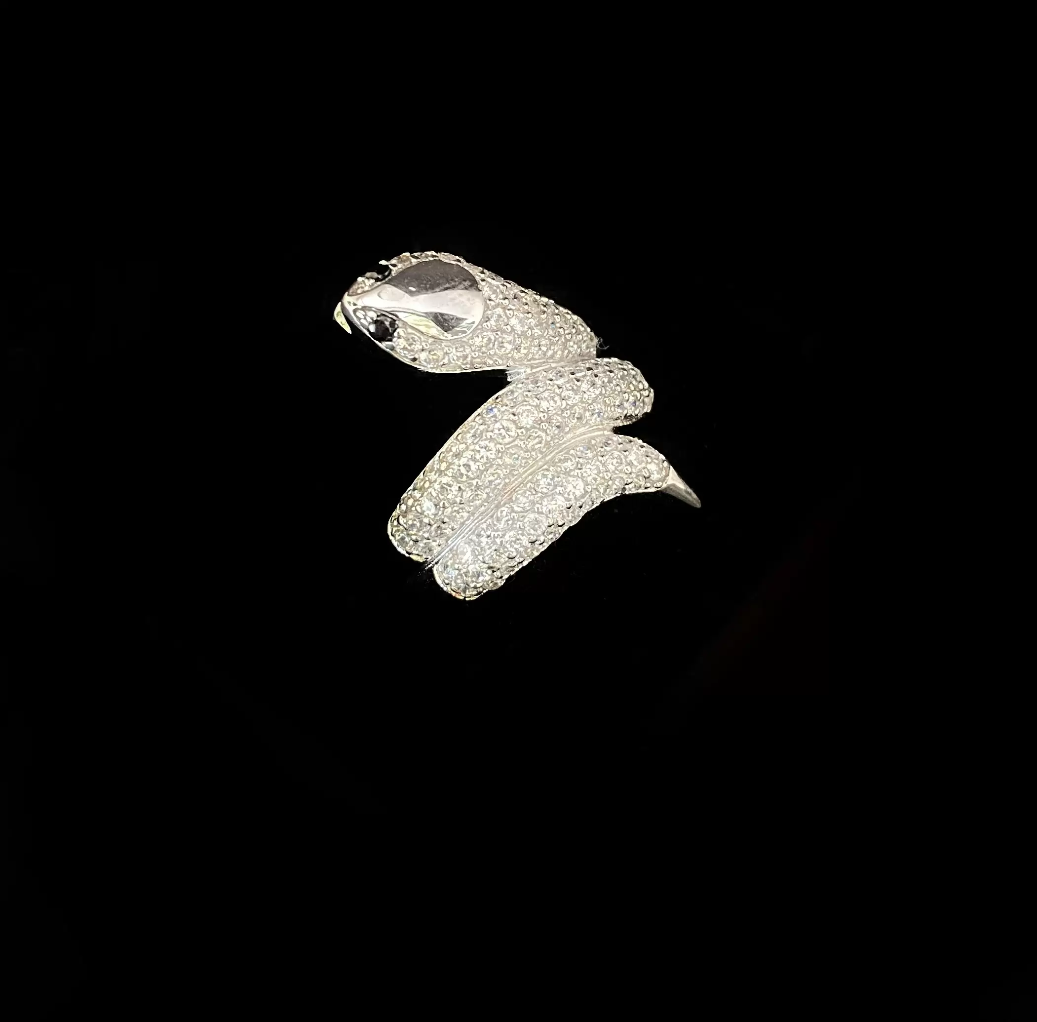 Anel Cobra Zircônias com Olho Negro em Prata 925 e Ródio
