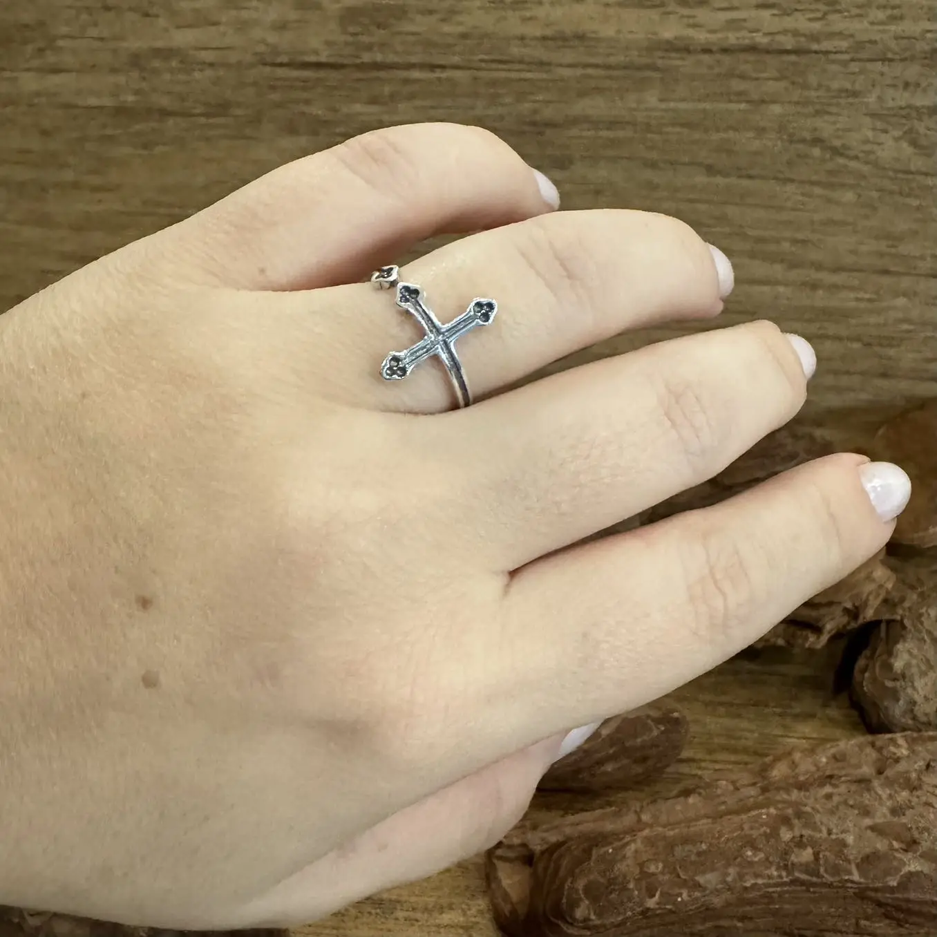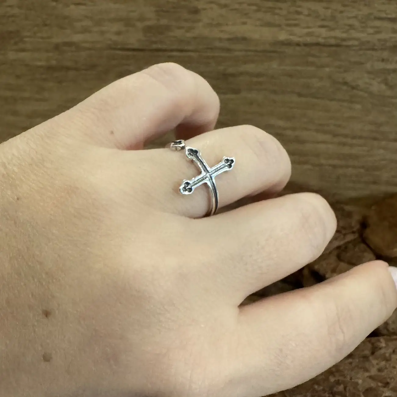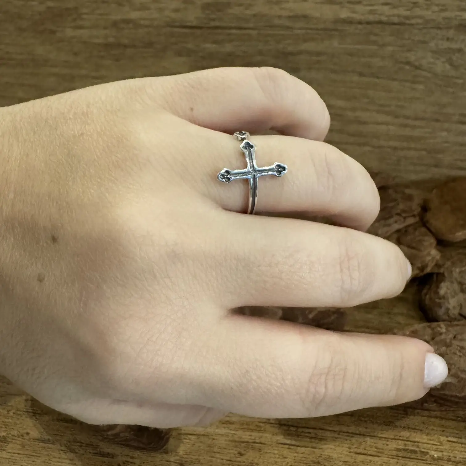 Início Feminino Anel Prata Escurecida (Anel Feminino) Anel Crucifixo de Prata 925