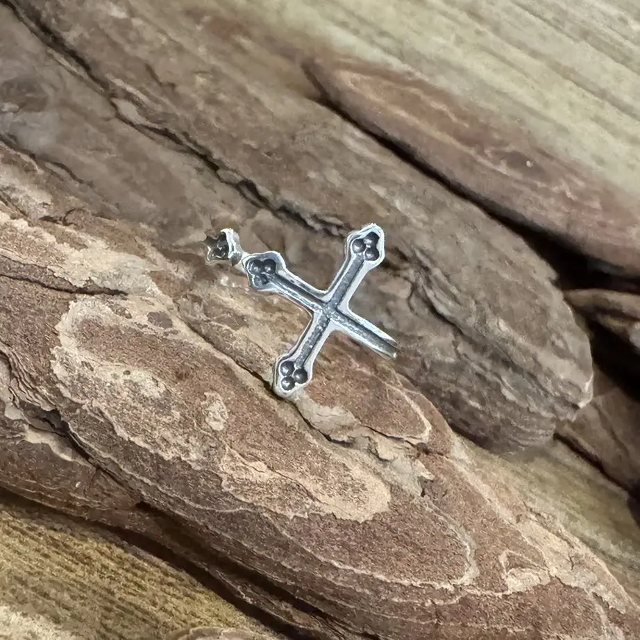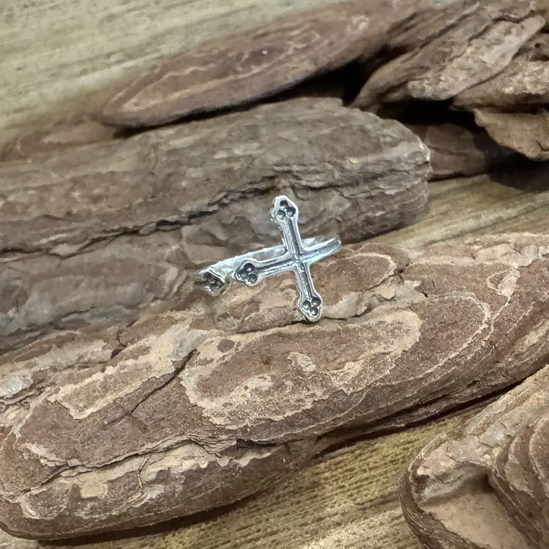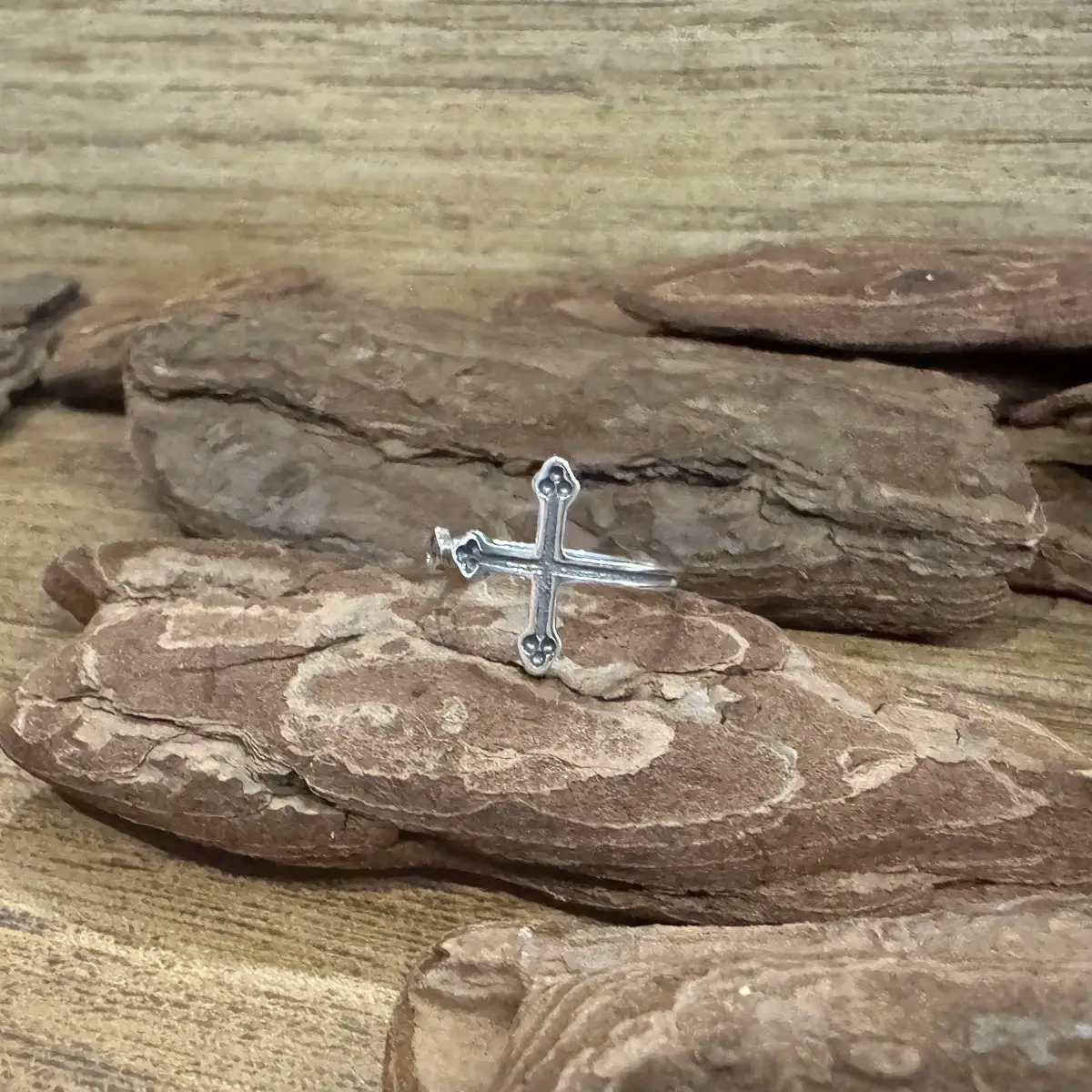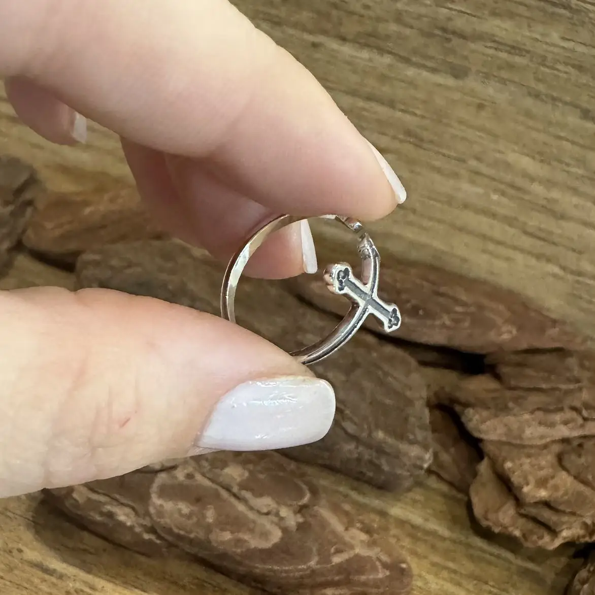 Início Feminino Anel Prata Escurecida (Anel Feminino) Anel Crucifixo de Prata 925