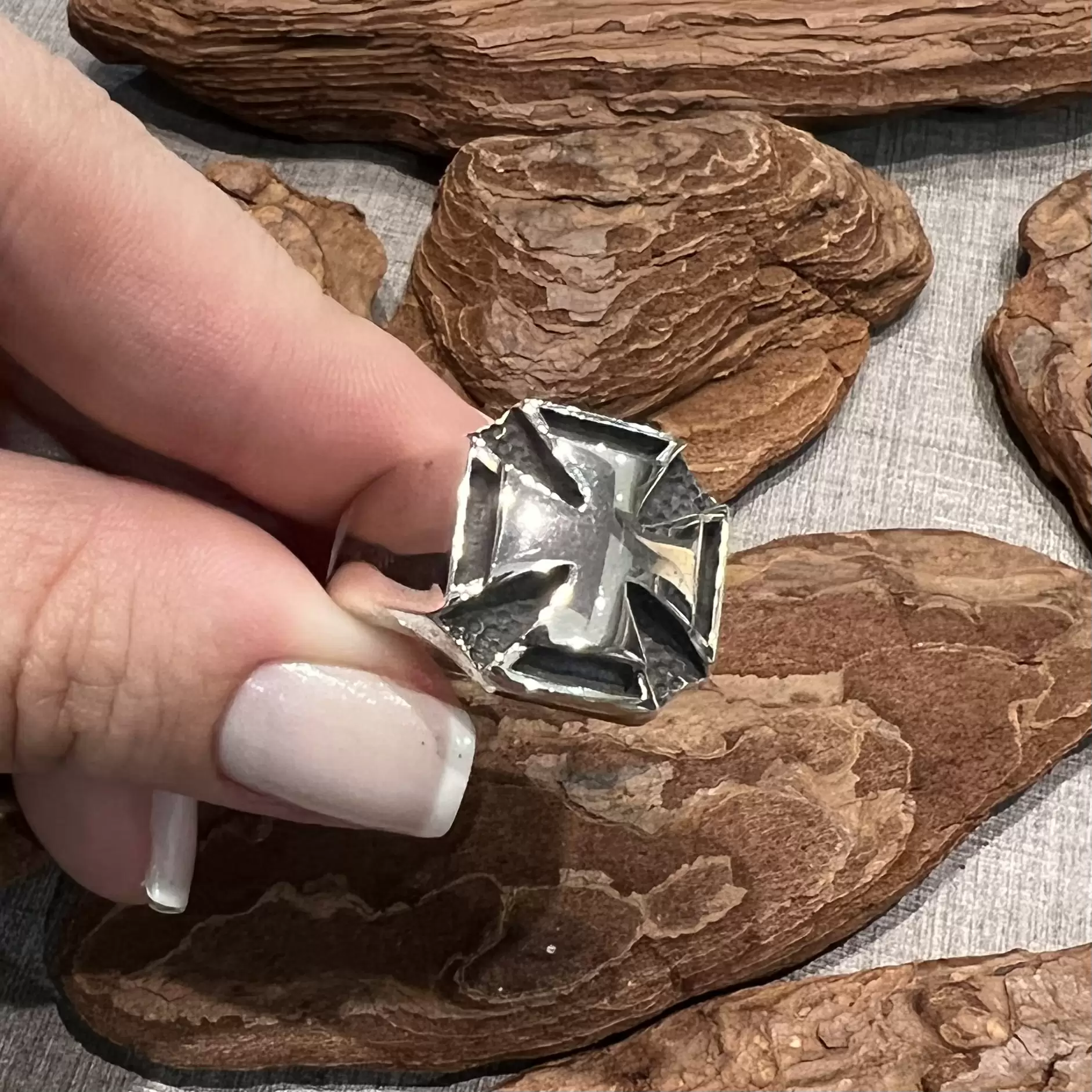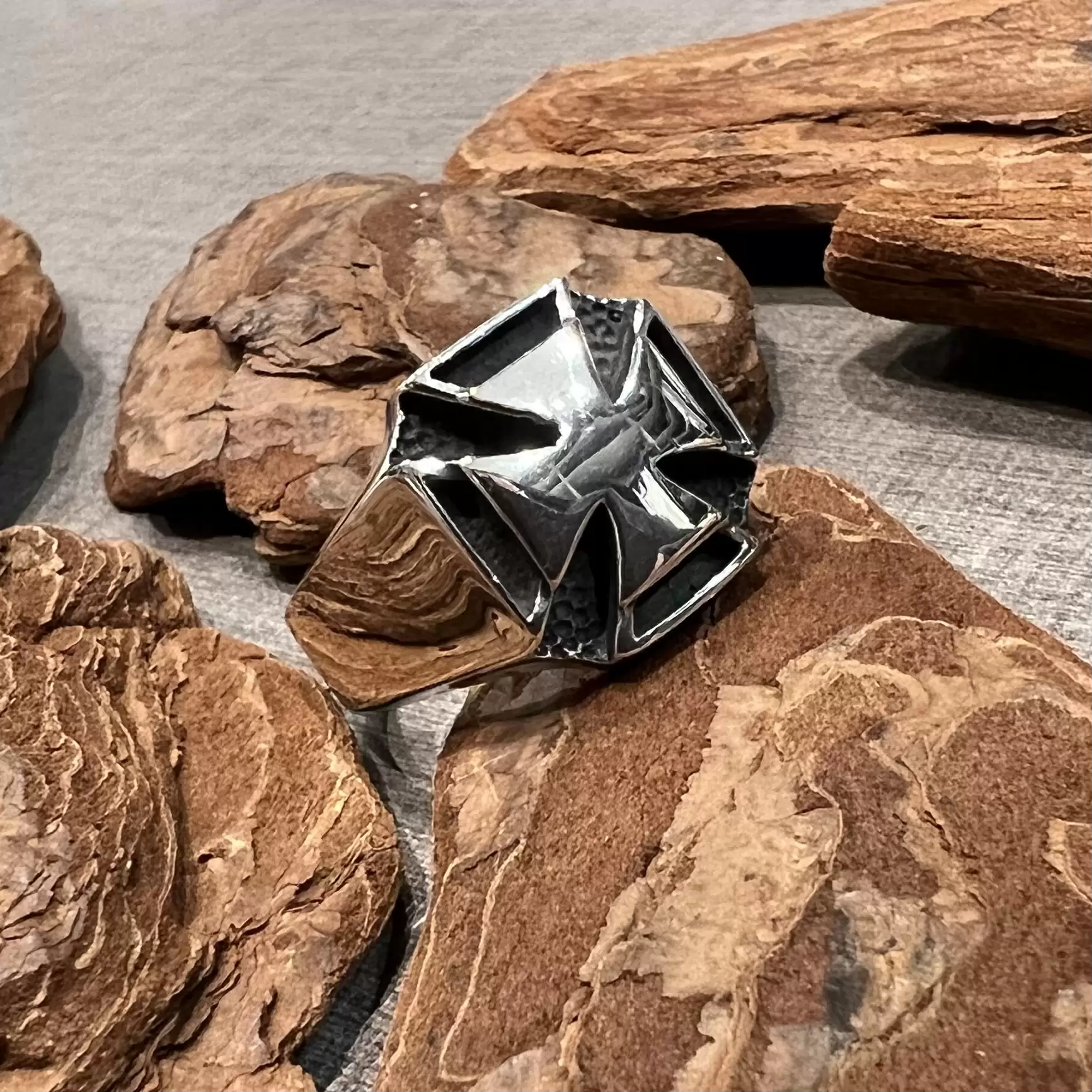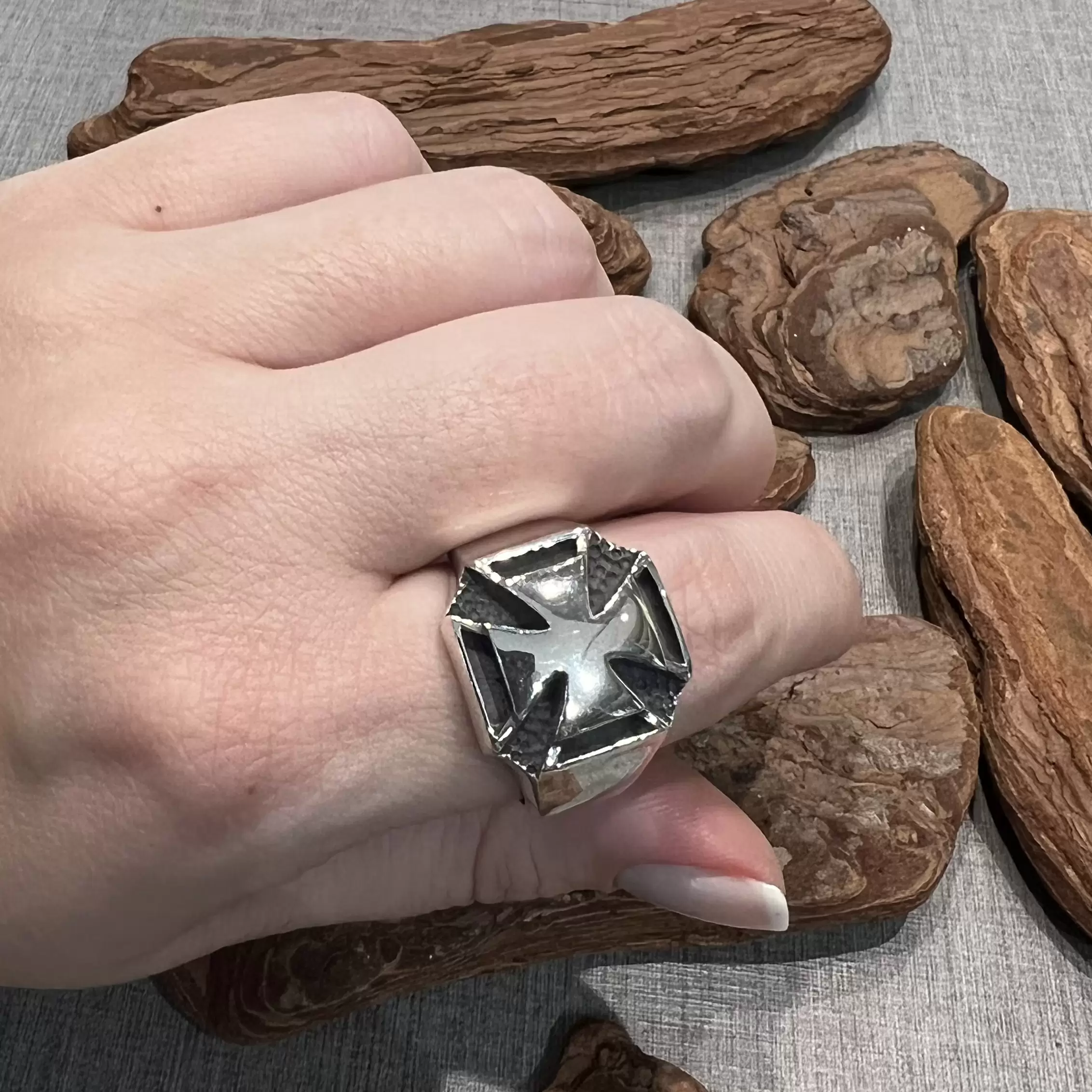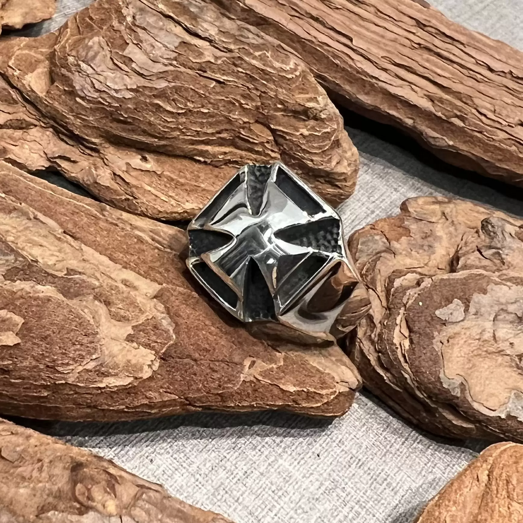 Anel cruz de malta liso em prata 925.