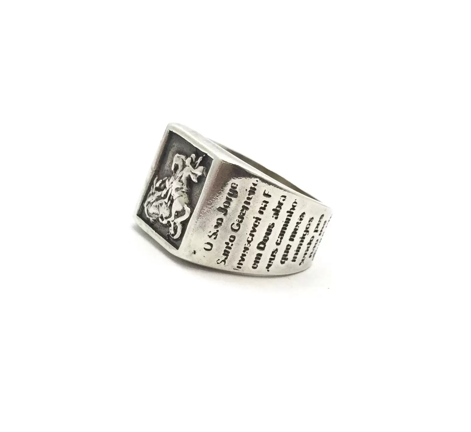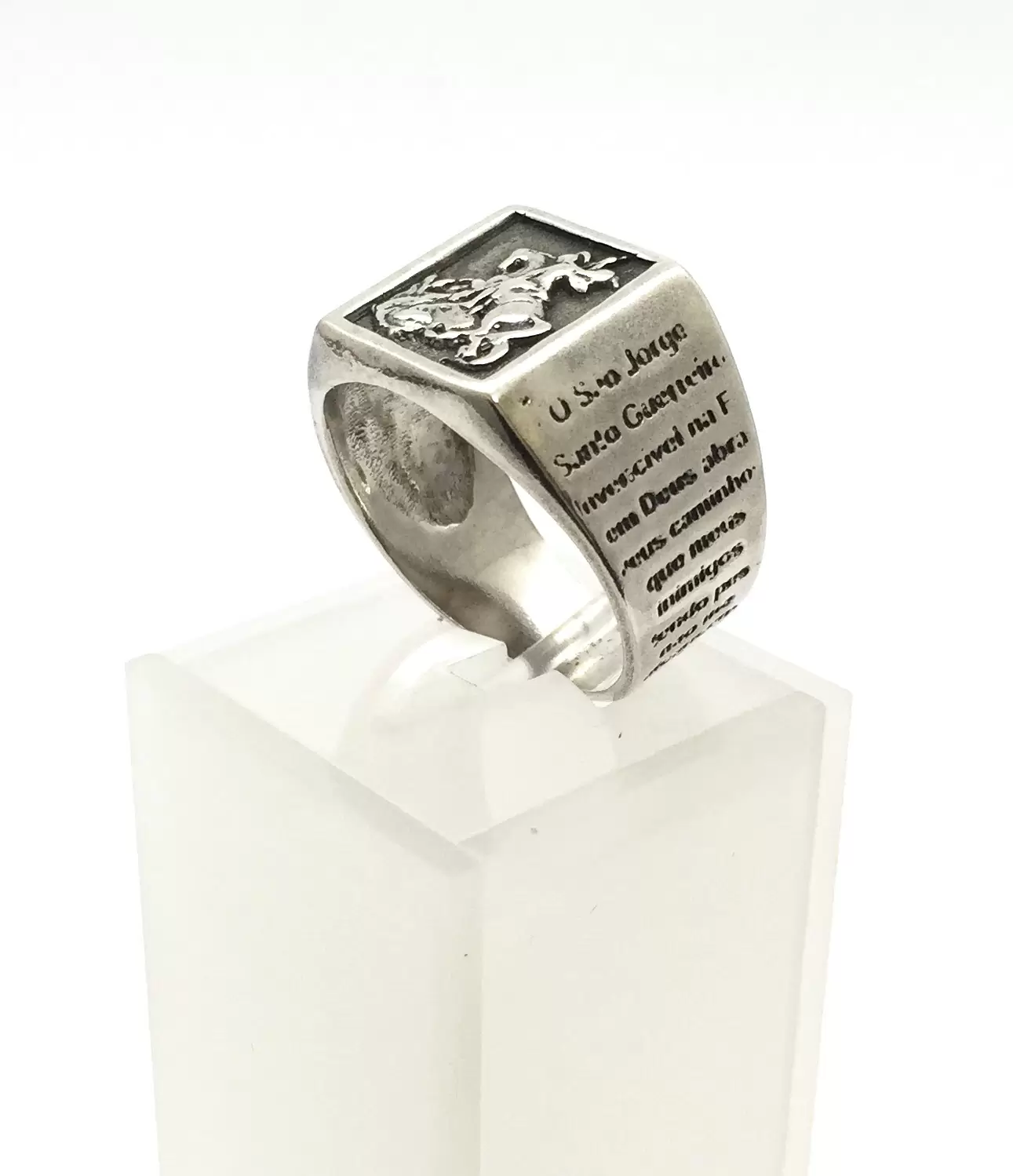 Anel de São Jorge em Alto Relevo, com a Oração nas Laterais, em Prata 925.