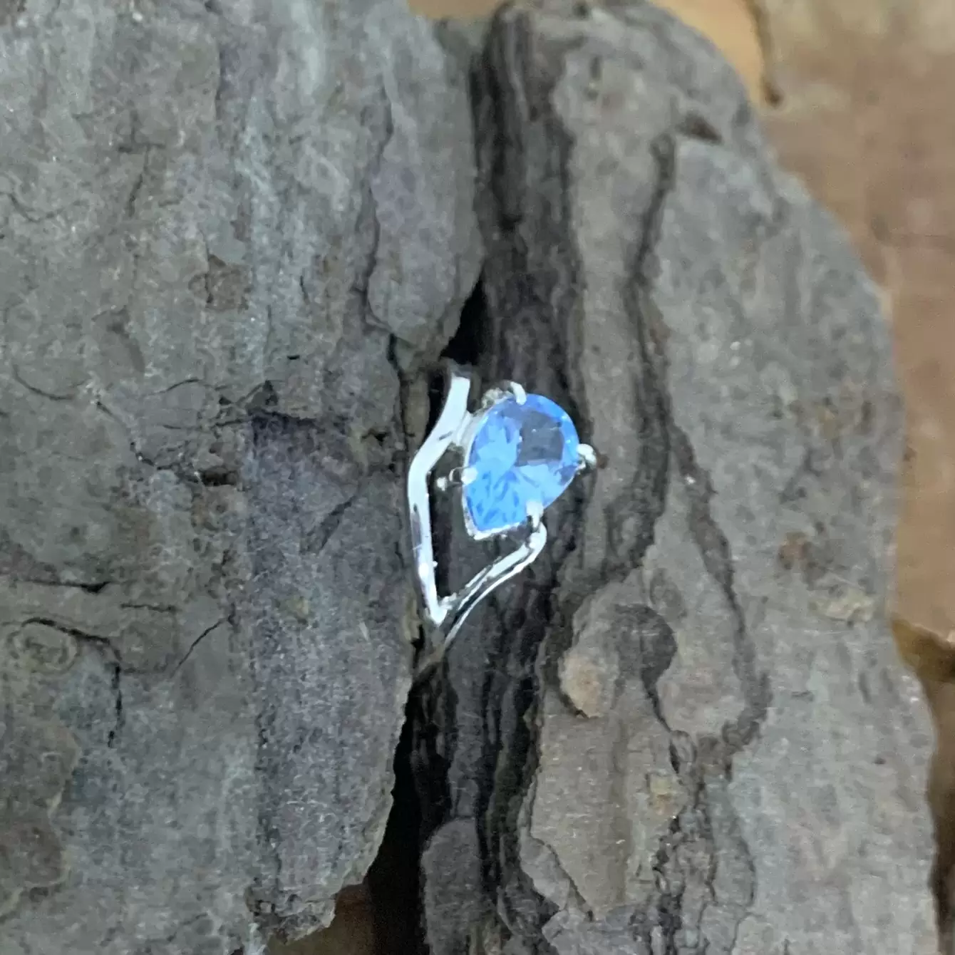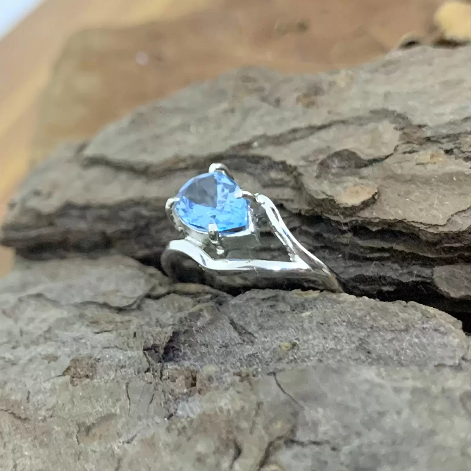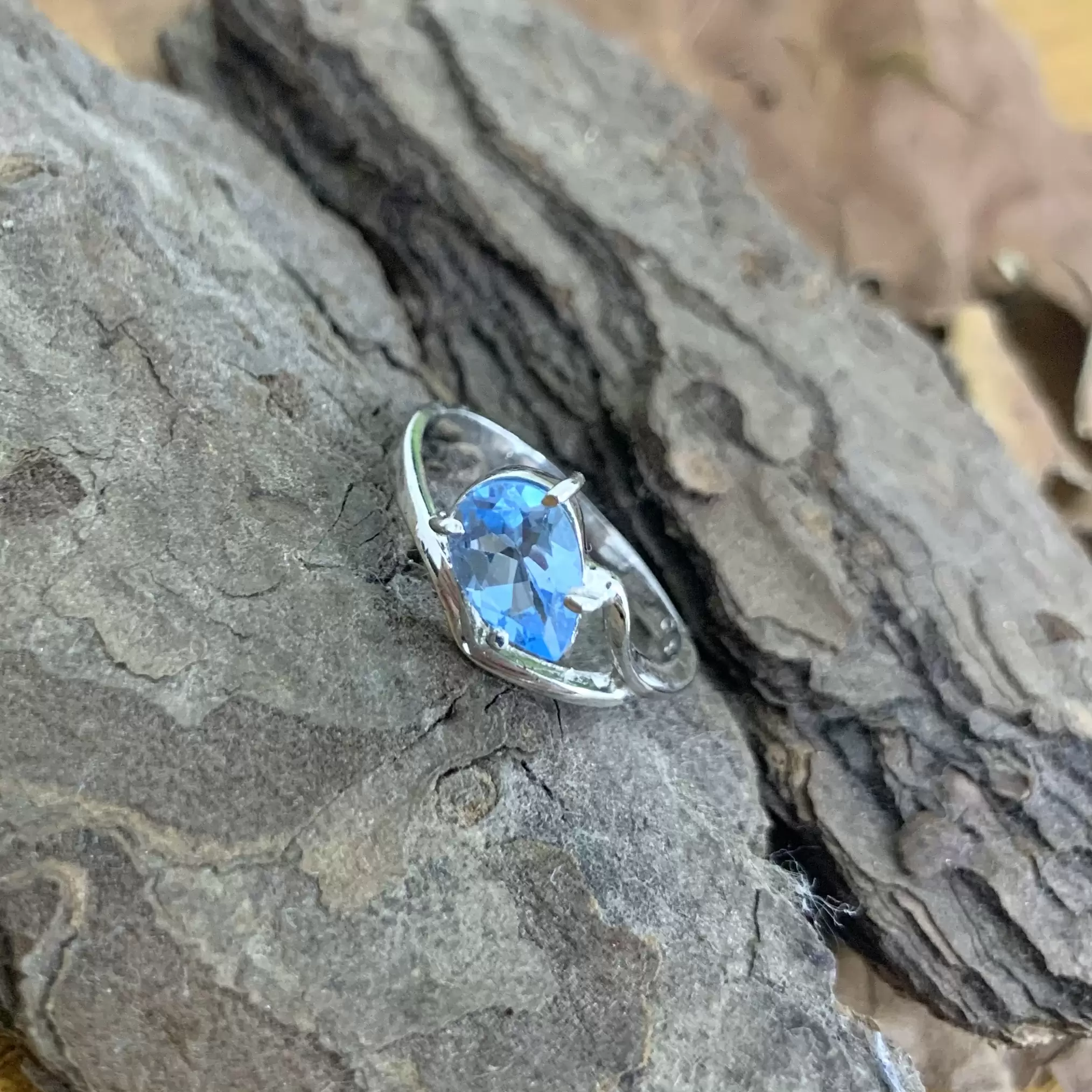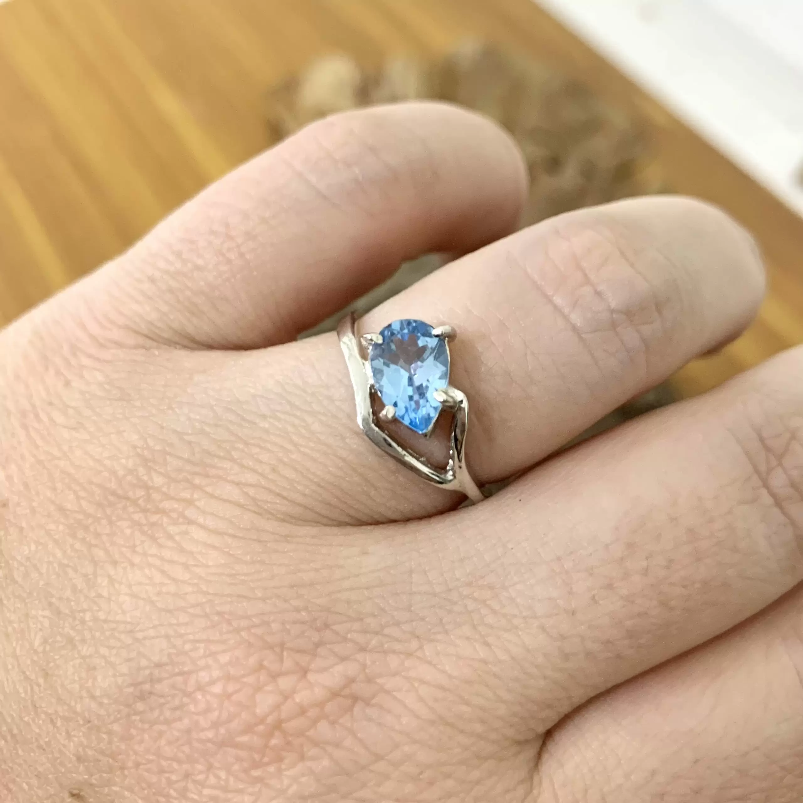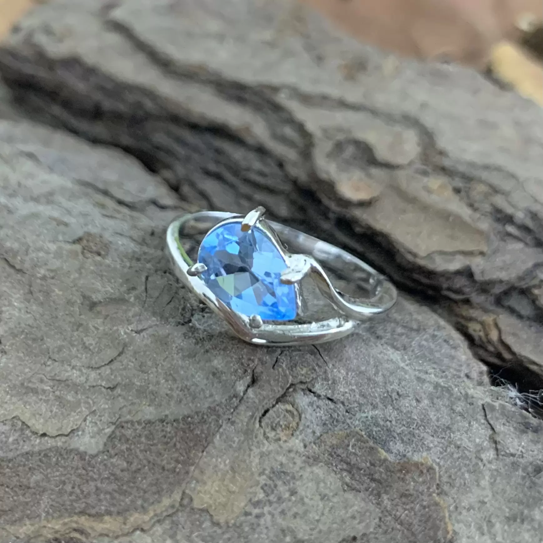 Anel delicado gota de Topázio Azul em Prata 925 com banho de ródio.