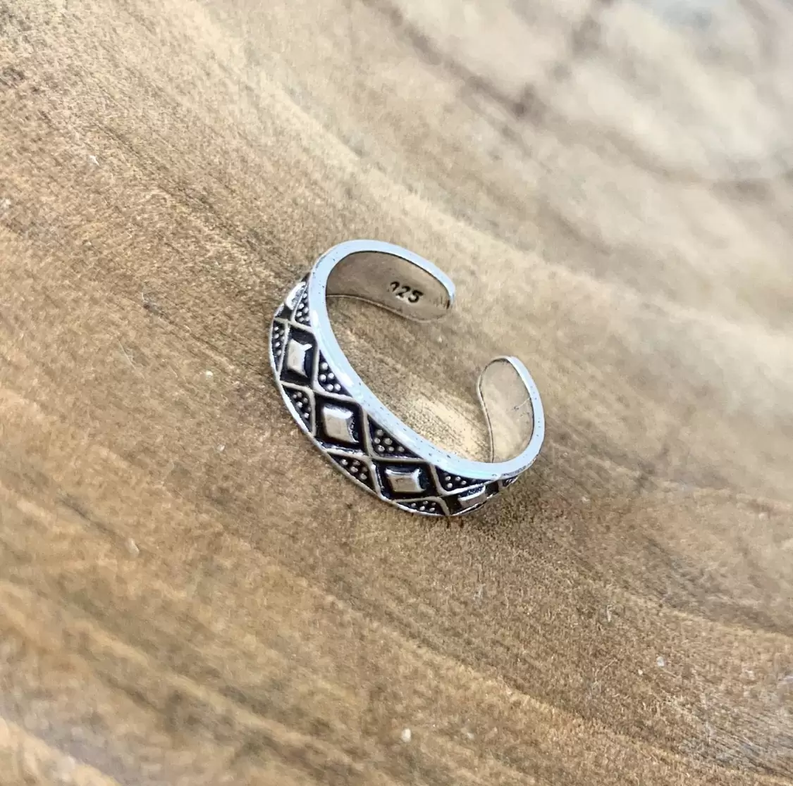 Anel Falange ou anel de pé Losango em Prata 925 Escurecida