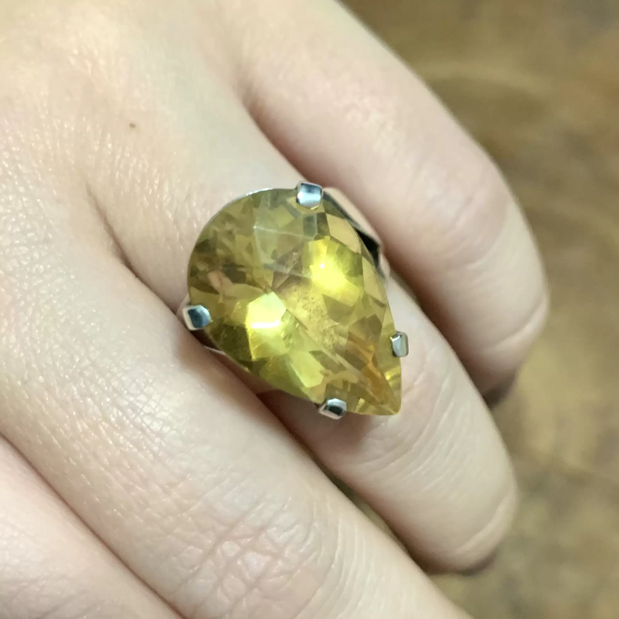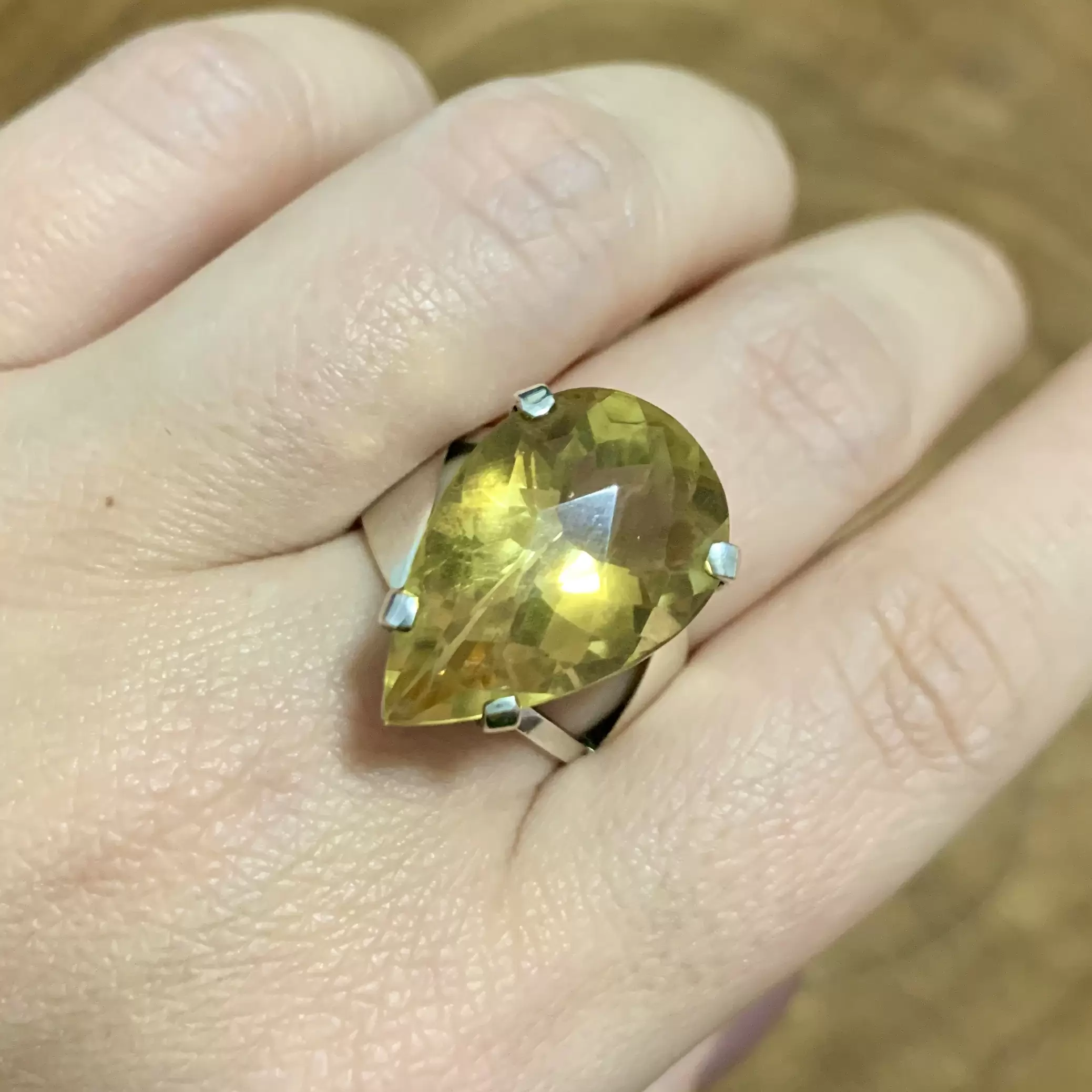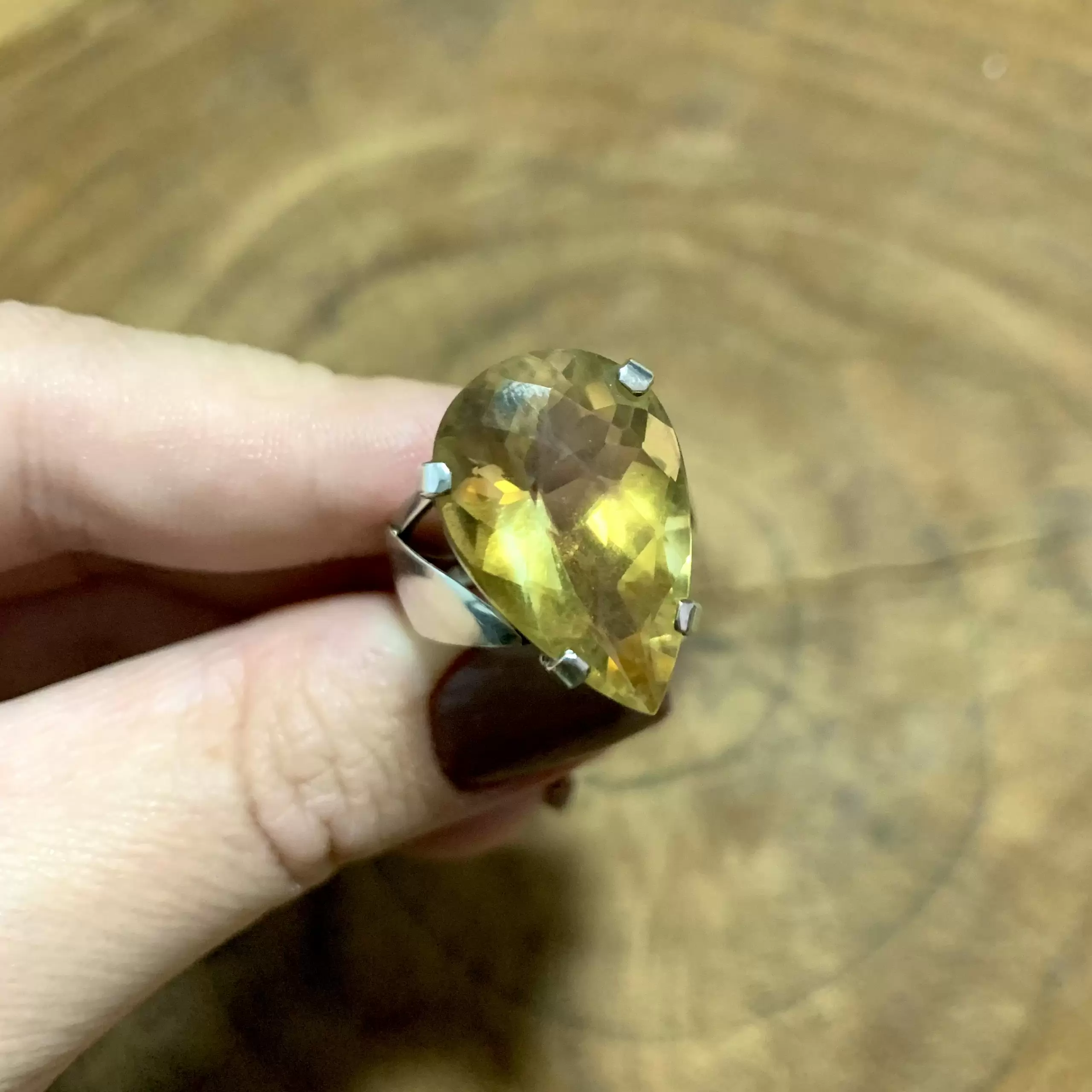 Anel Gota de Citrino e Prata 925