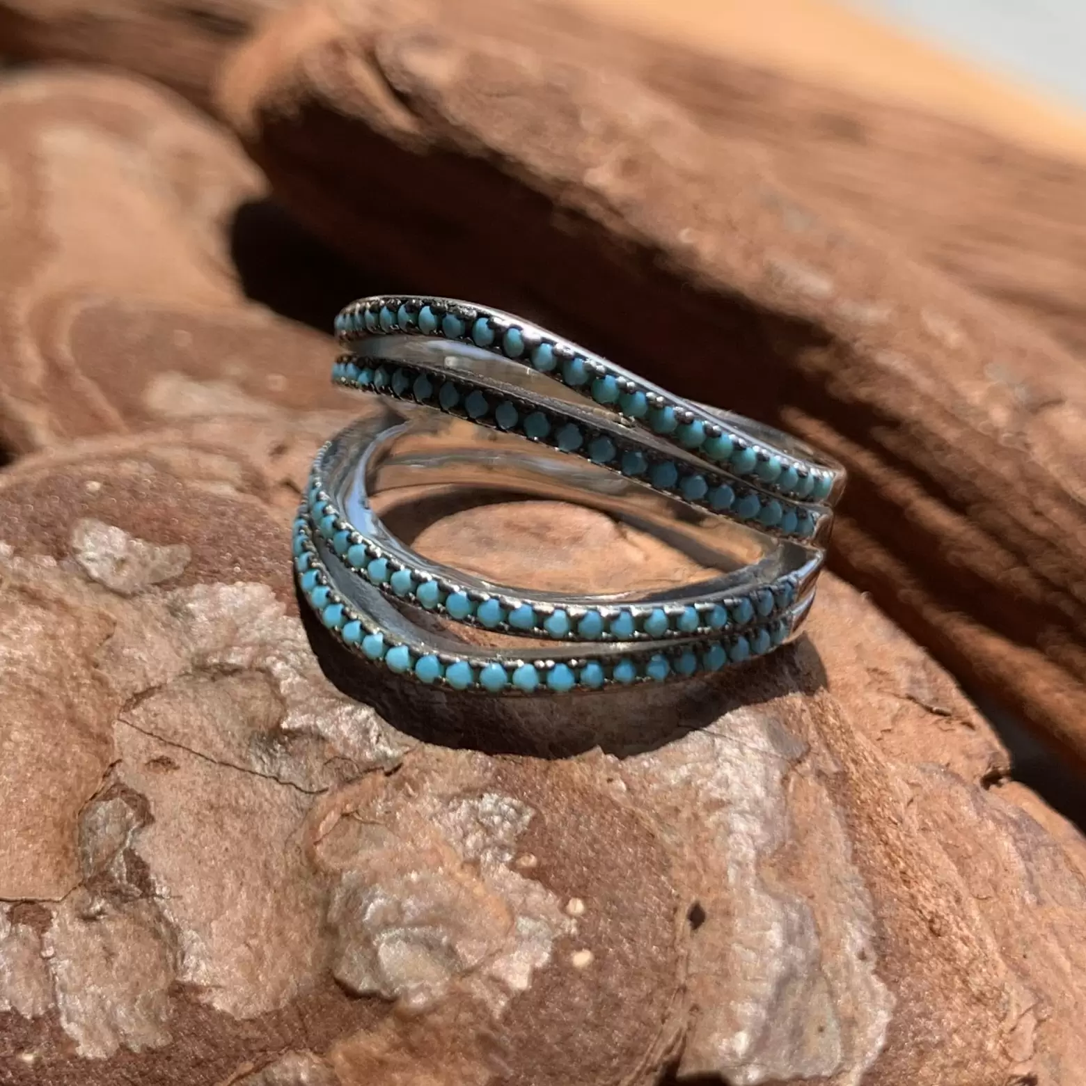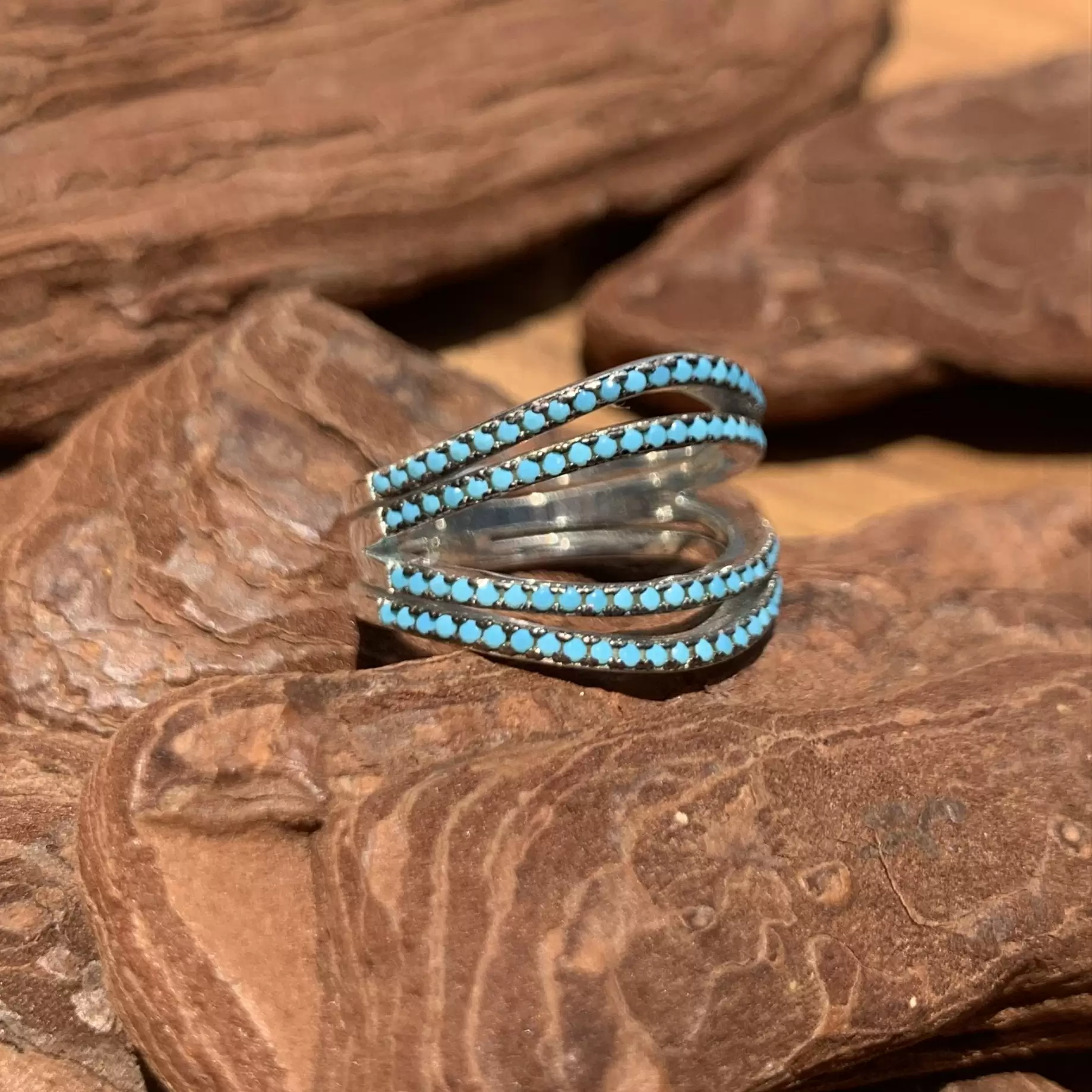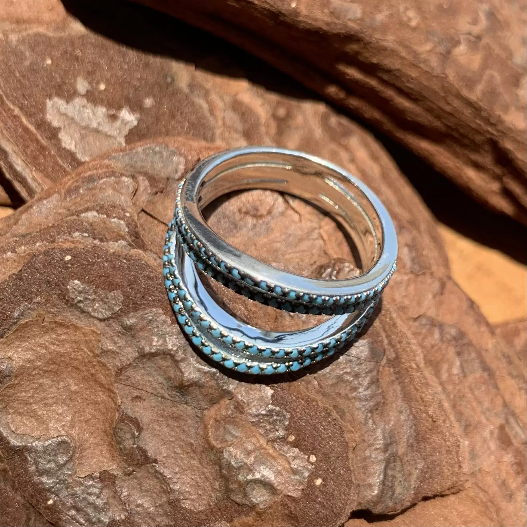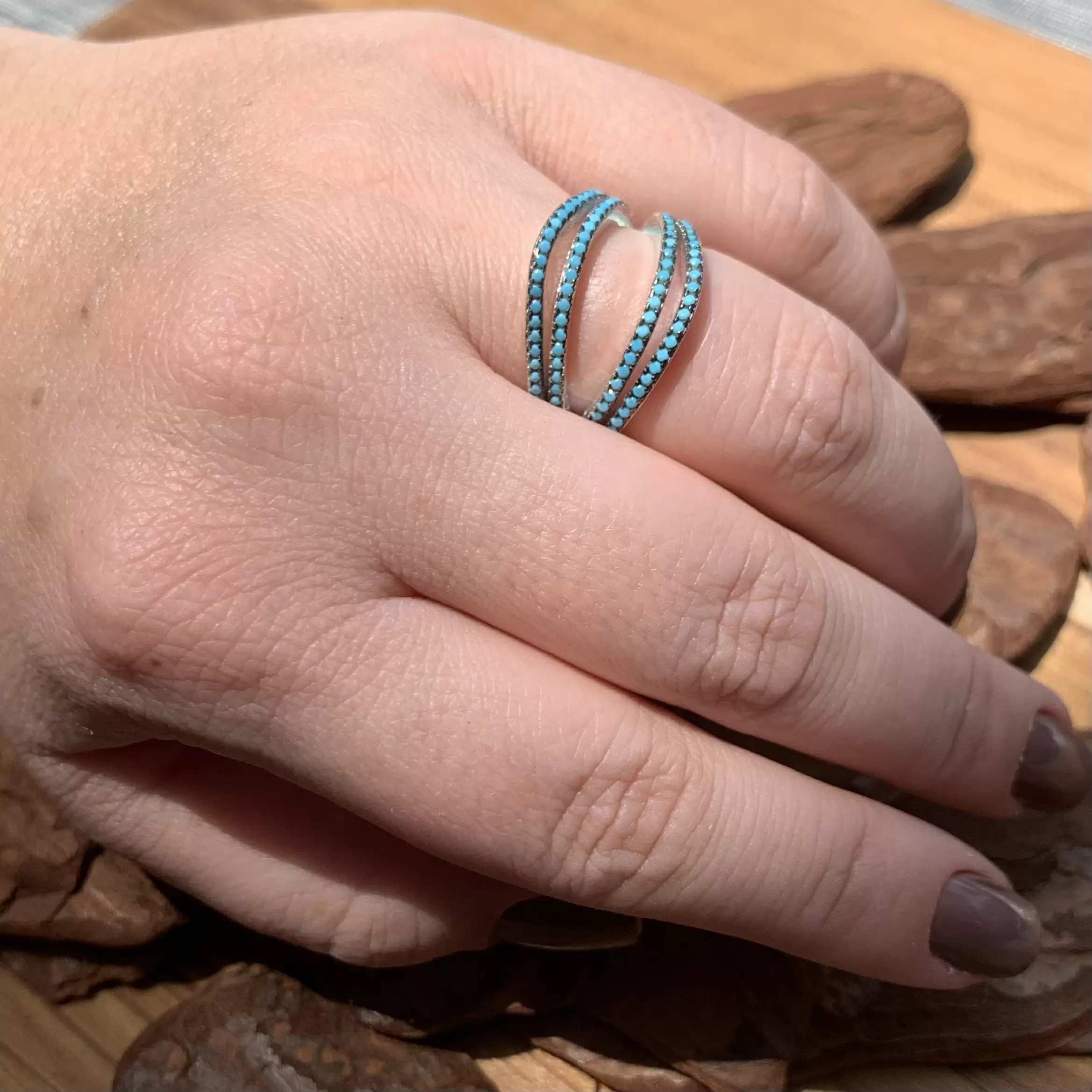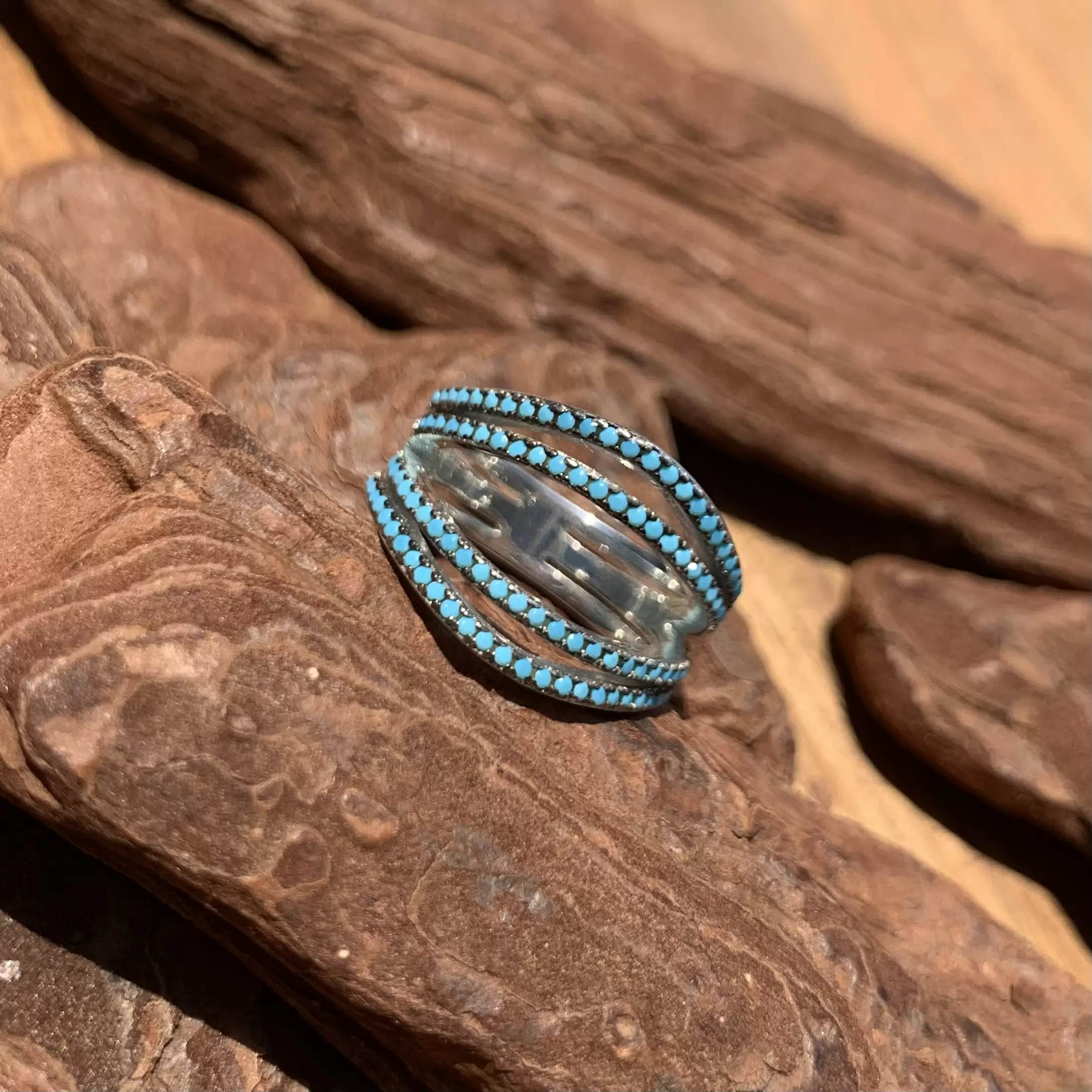 Anel com nano turquesa feito em prata 925 com banho de ródio.