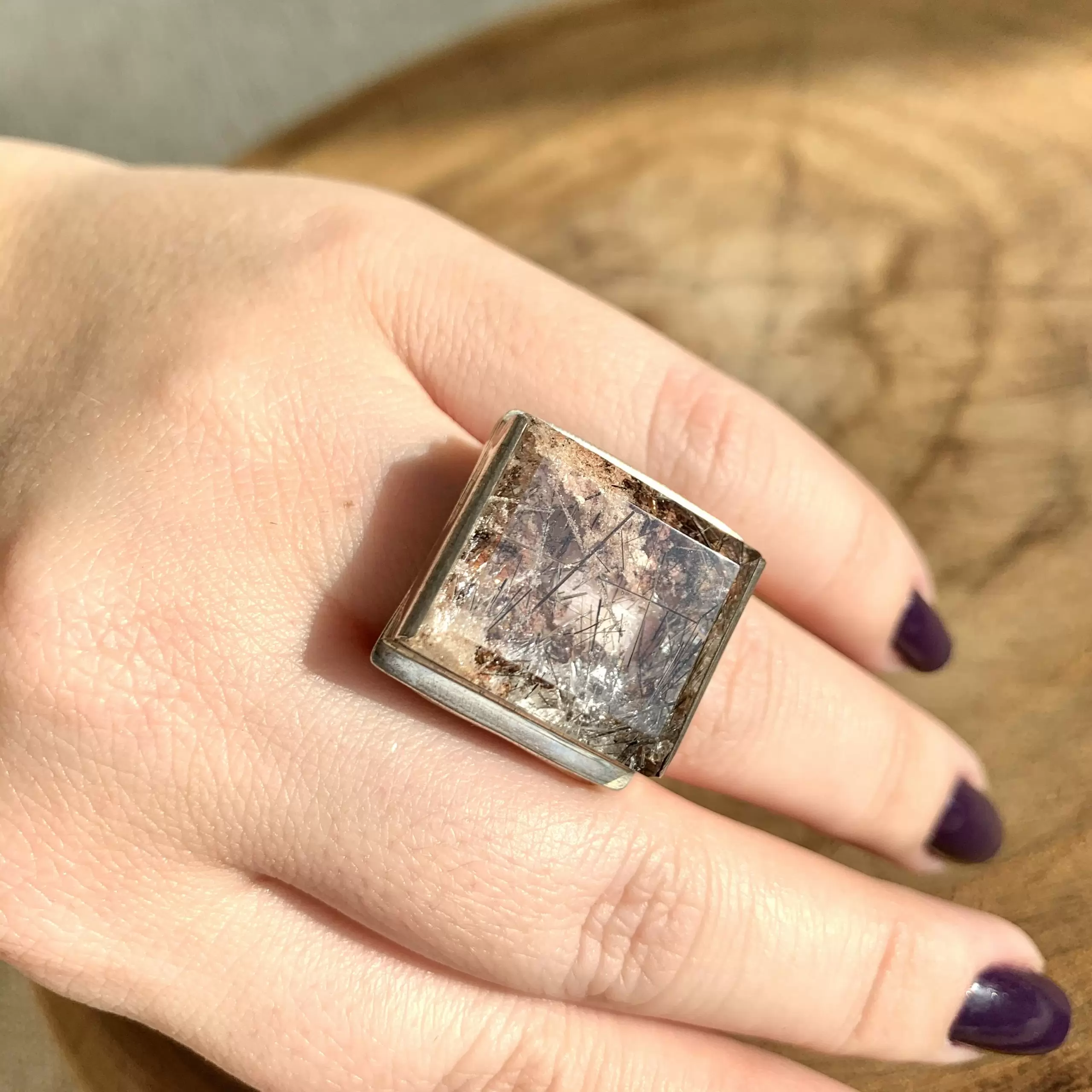 Anel Lodolita com Rutilo em Prata 925