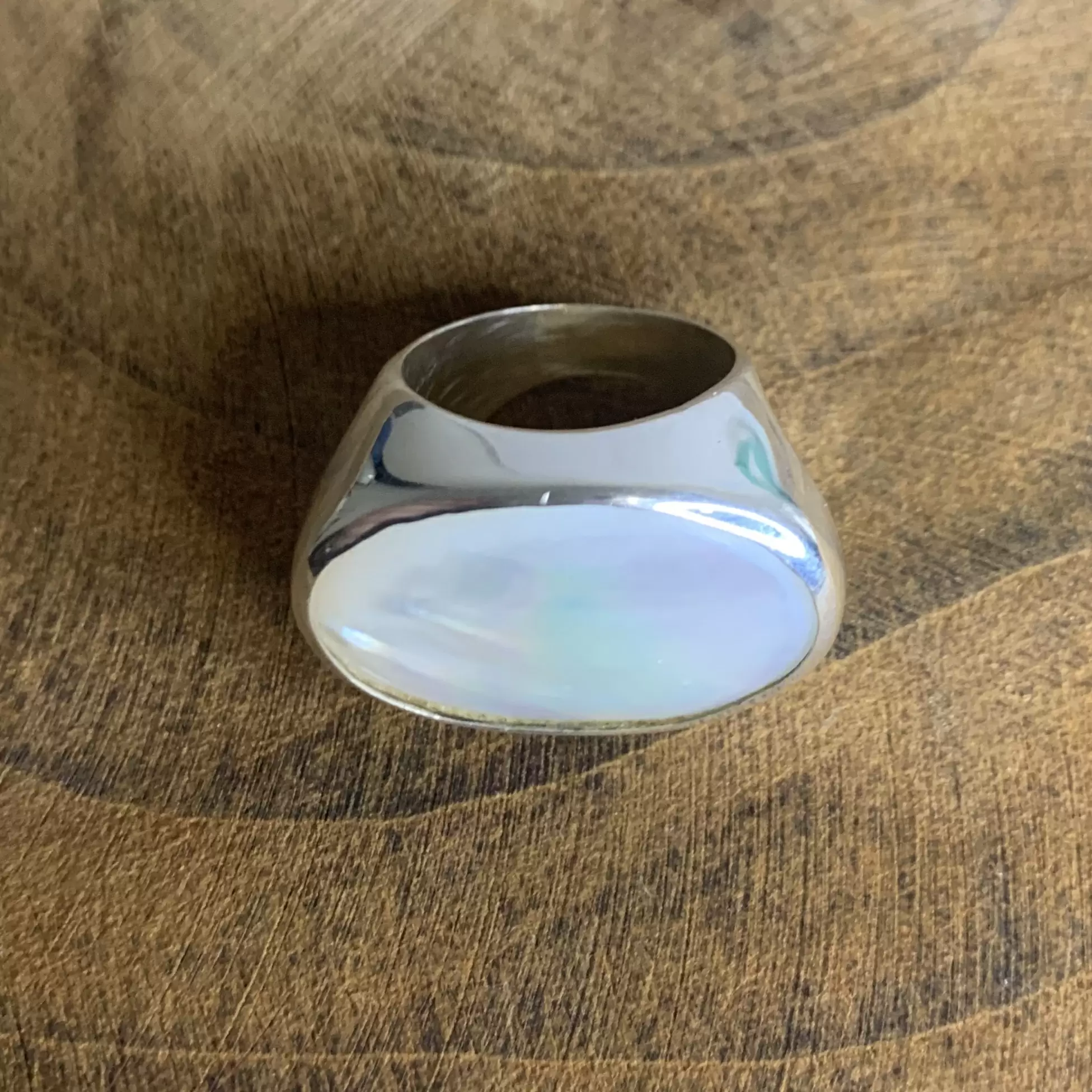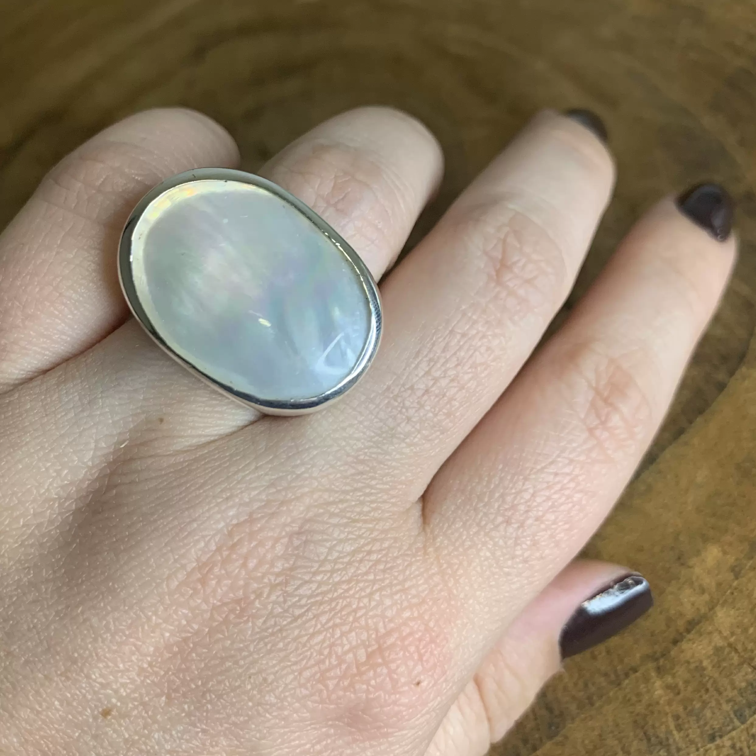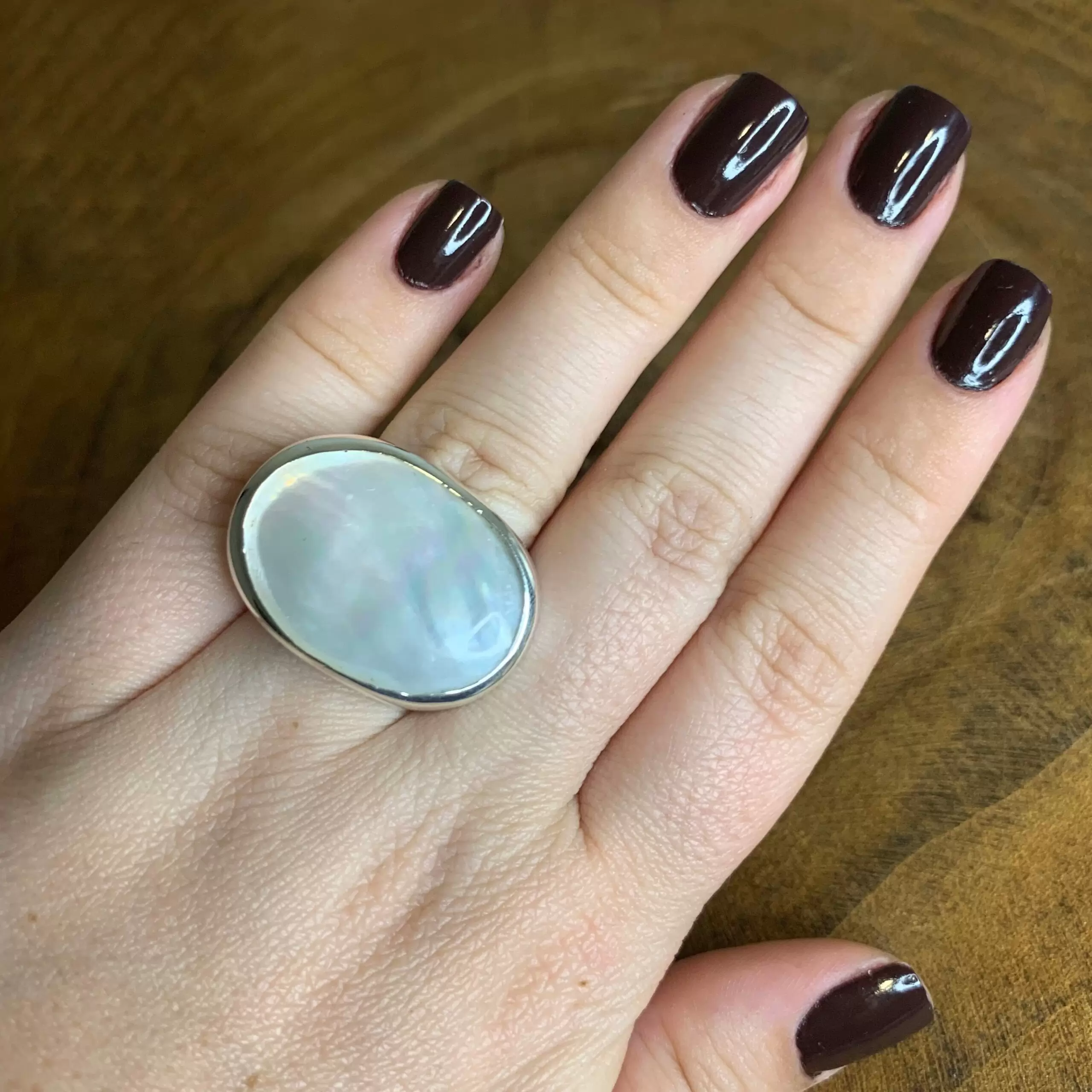 Início Promoção Anel Madrepérola Oval Deitada em Prata 925