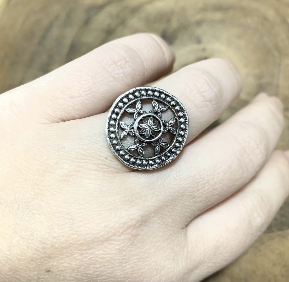 Anel Mandala Médio em Prata 925 Escurecida