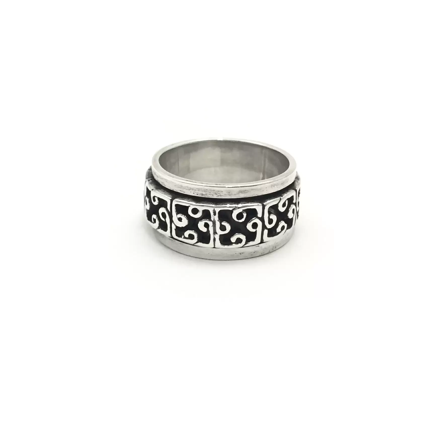 Anel Masculino Giratório, estampa escurecida, em Prata 95.