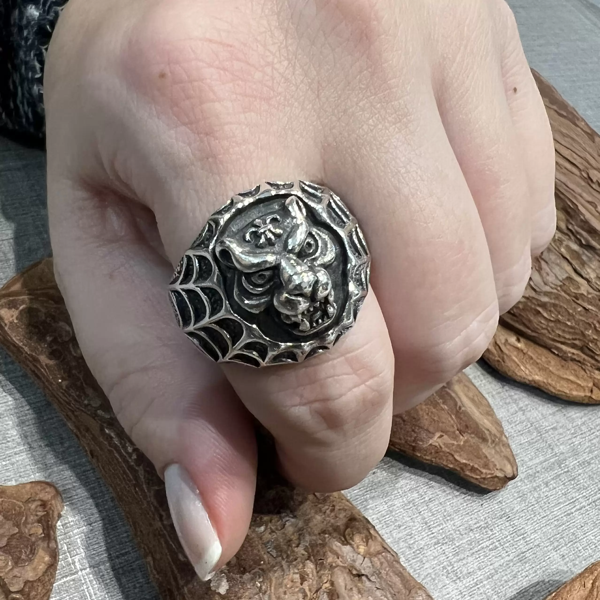 Masculino, Anel, Prata Escurecida (Anel Masculino), Religioso