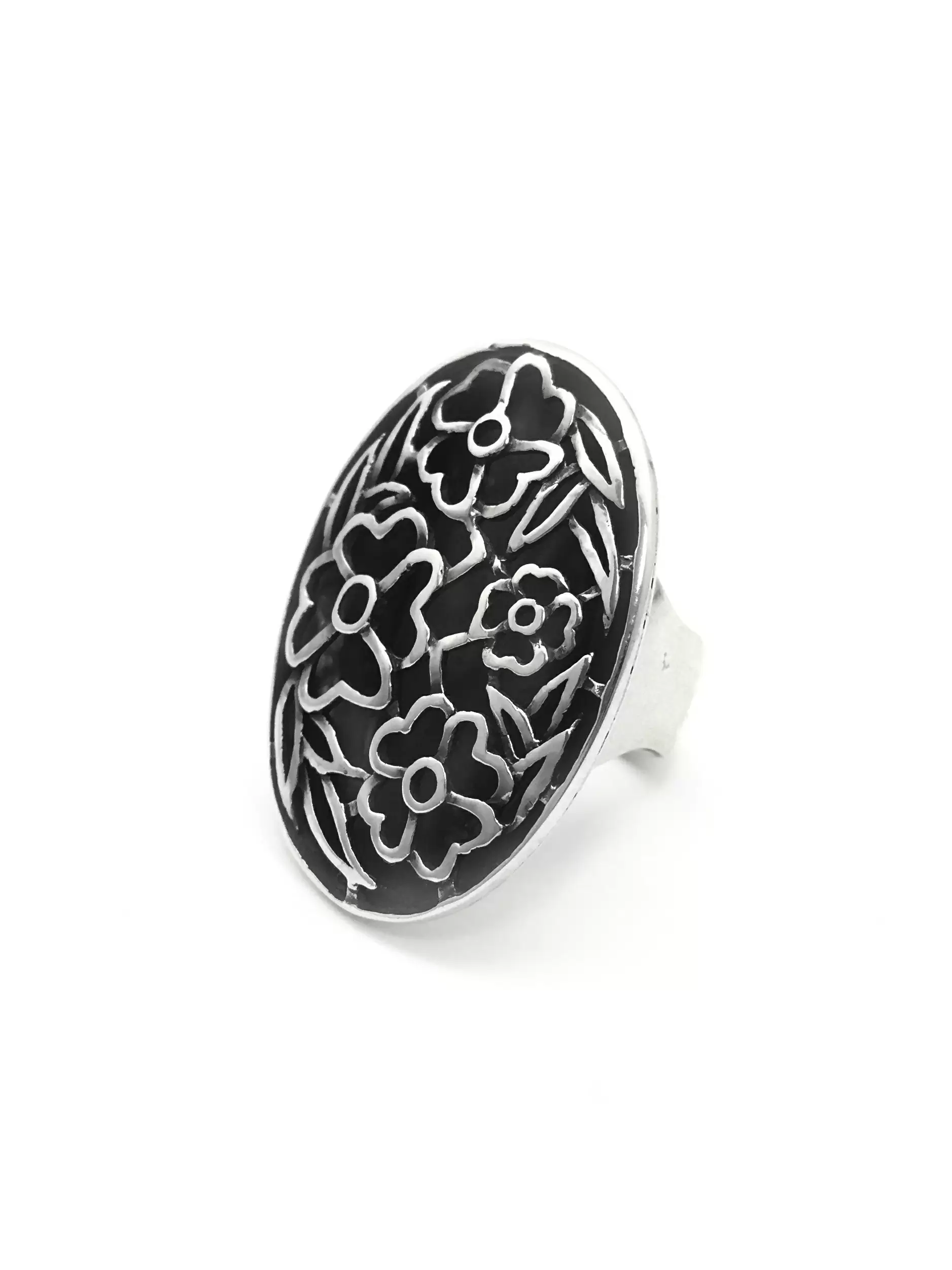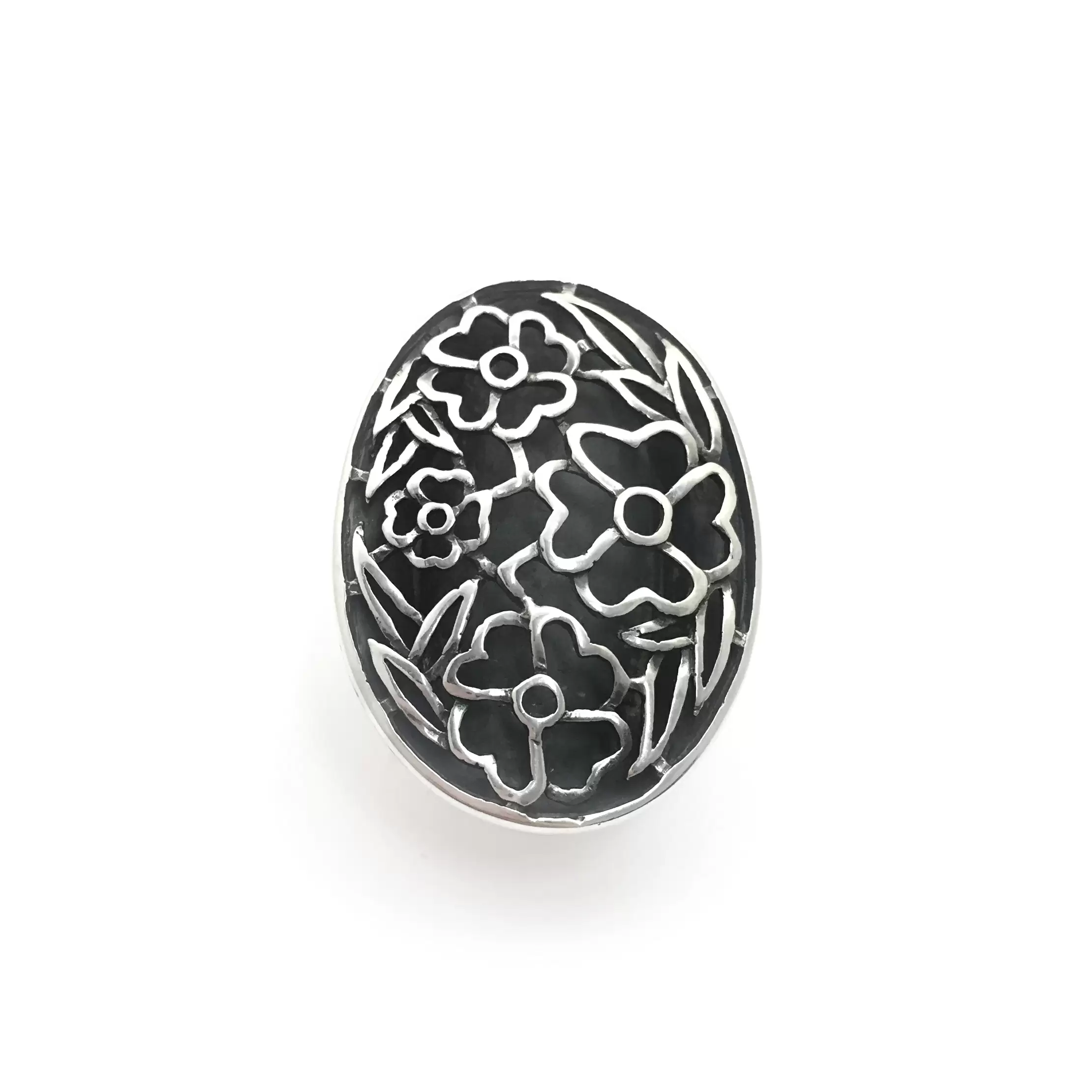 Anel Primavera Oval Grande em Prata 925 com Fundo Escurecido.