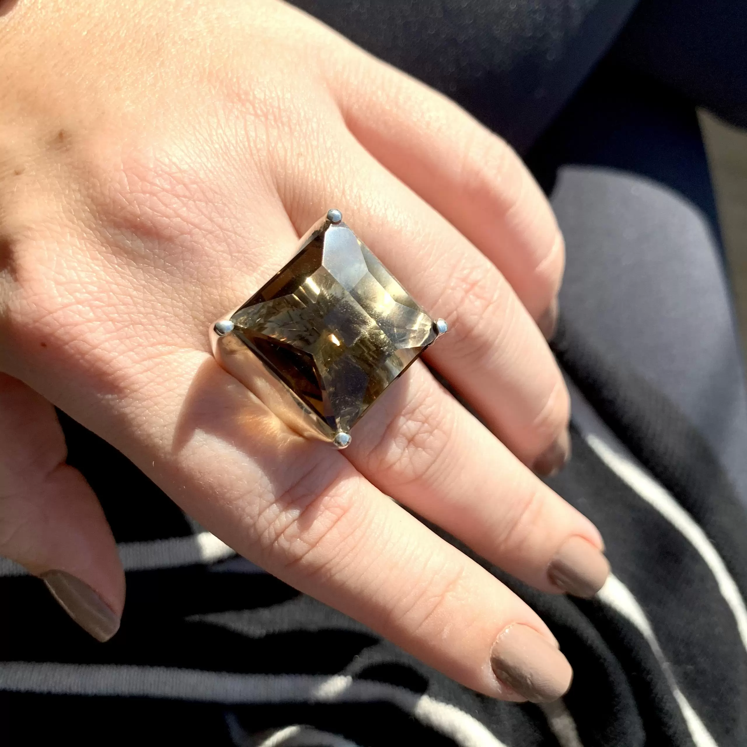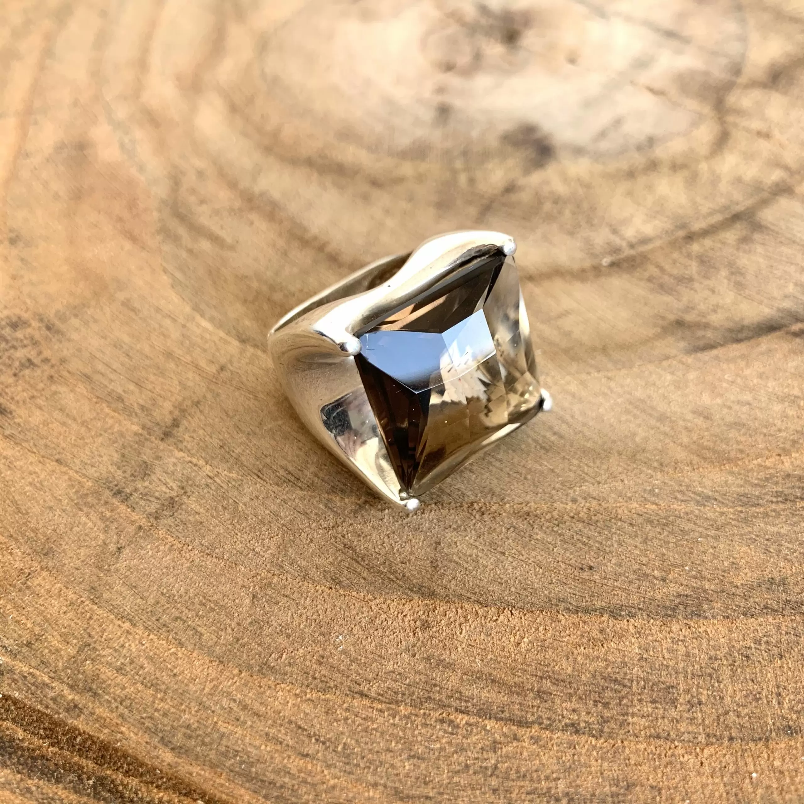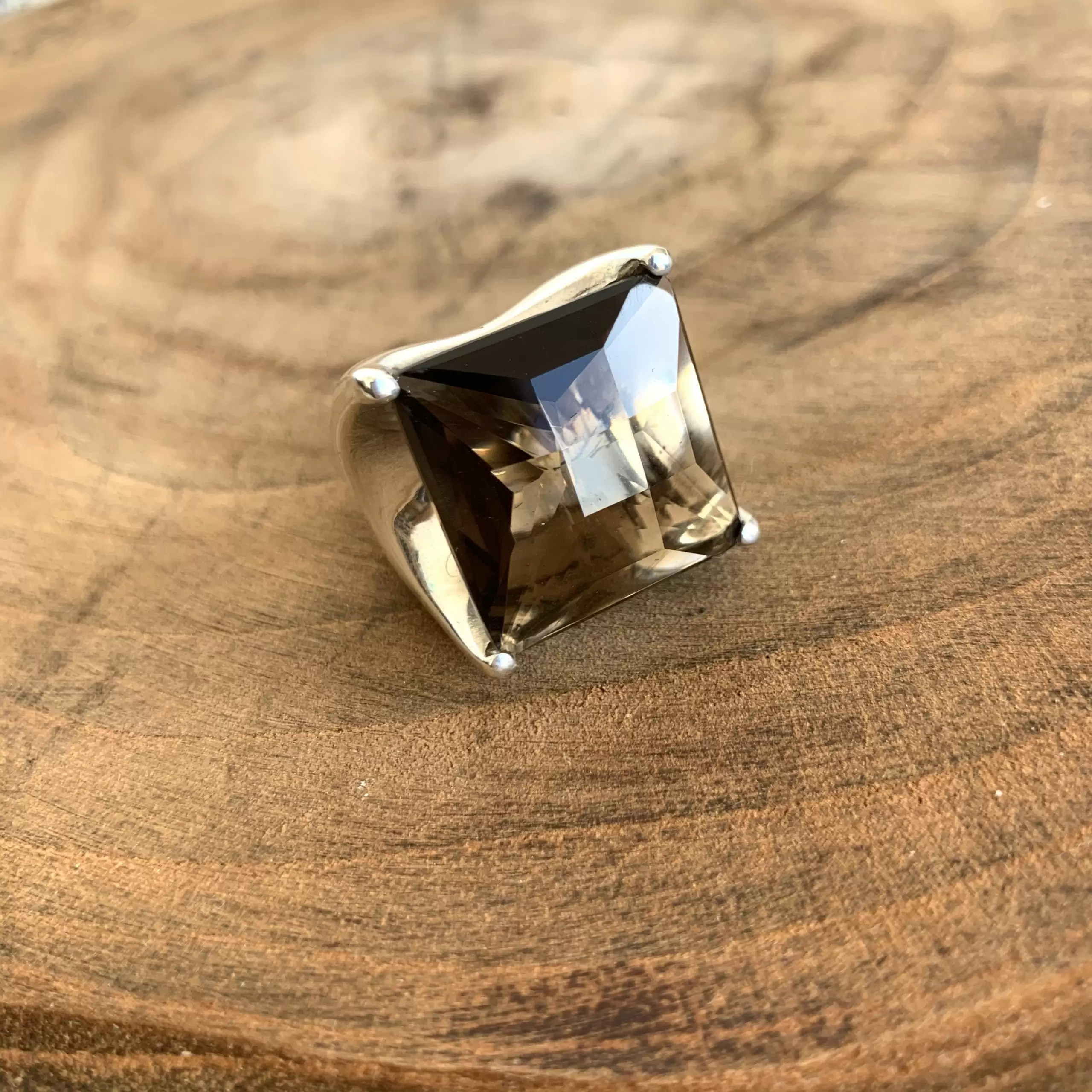 Anel Quartzo Fumê Facetado em Prata 925