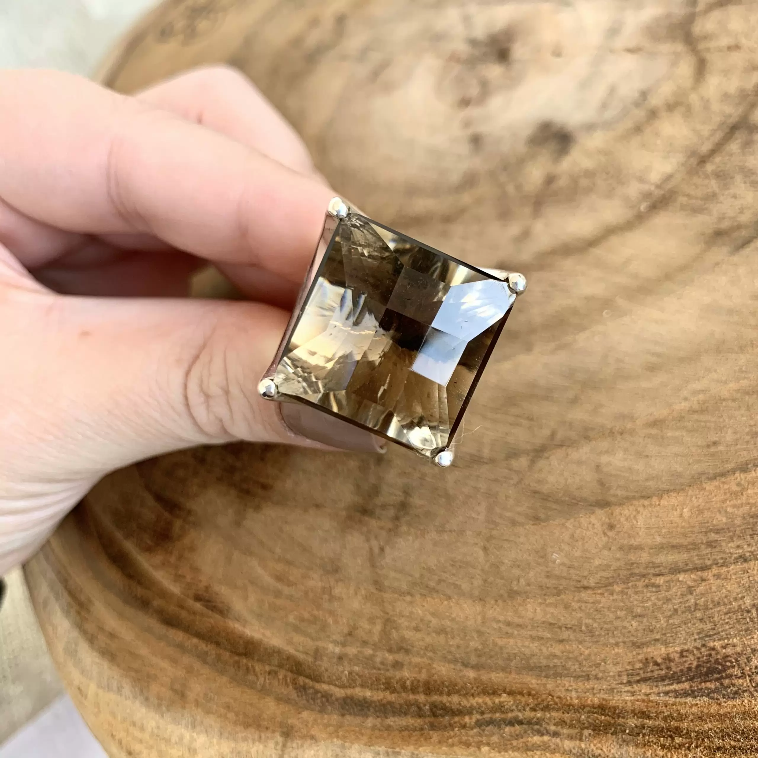 Anel Quartzo Fume Facetado em Prata 925