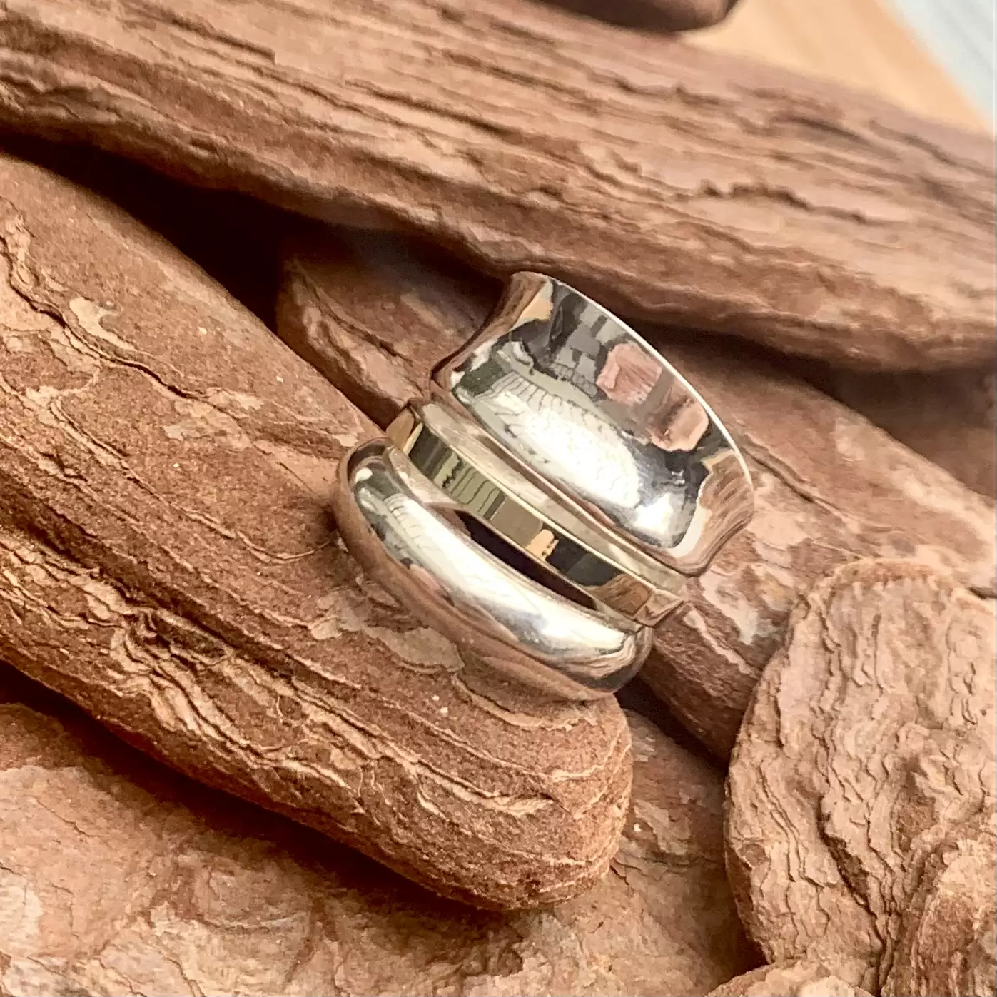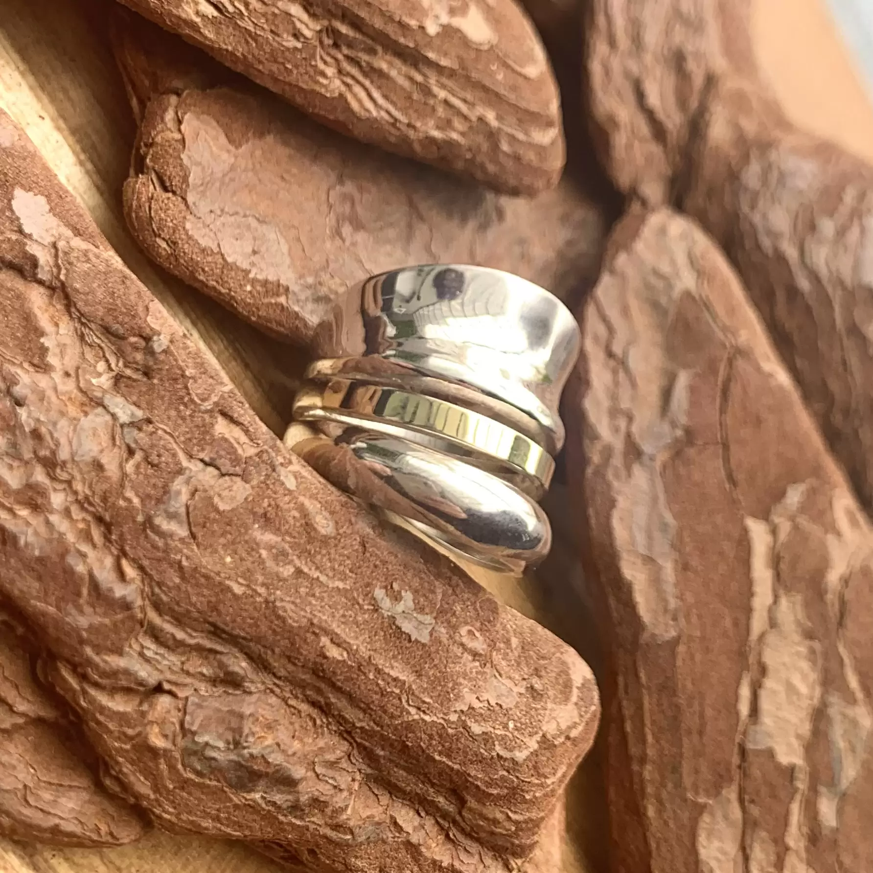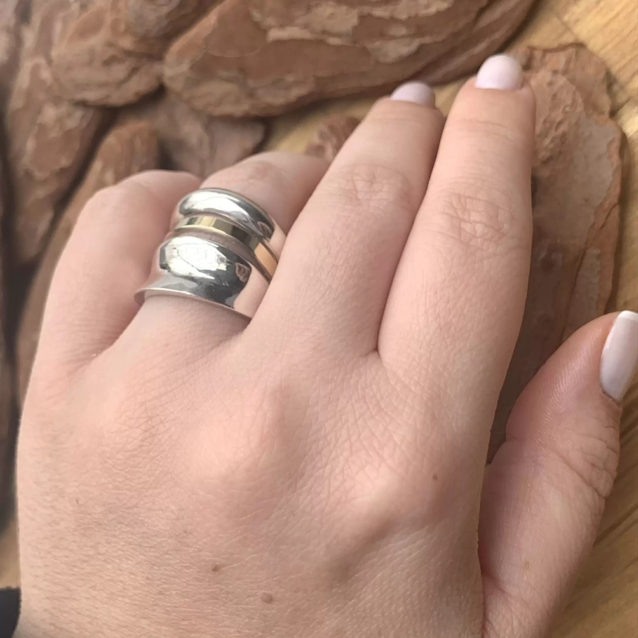 Anel Ondas 3 fios em Prata com Aplique em Ouro