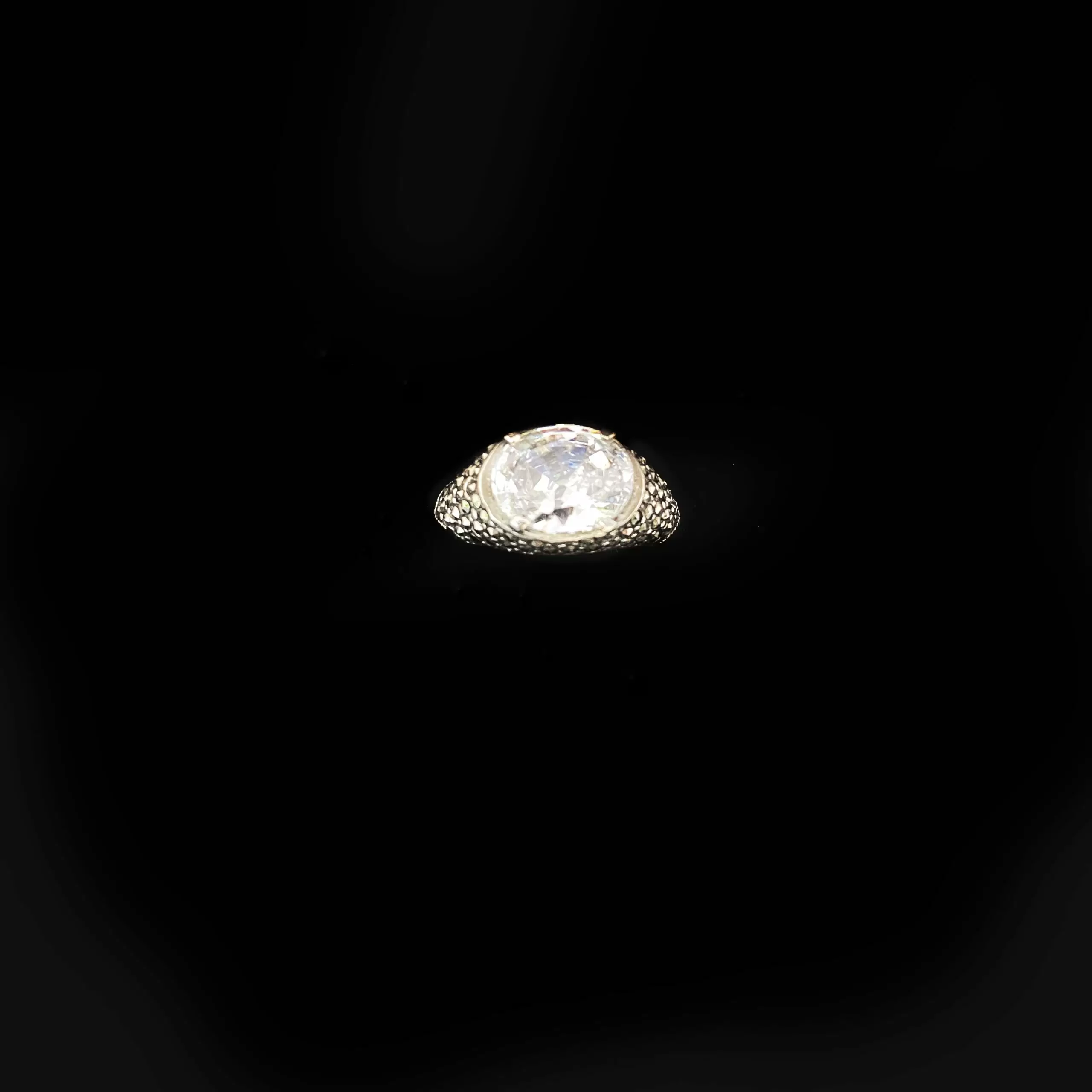 Anel Solitário Oval Deitado com Marcassitas em Prata 925