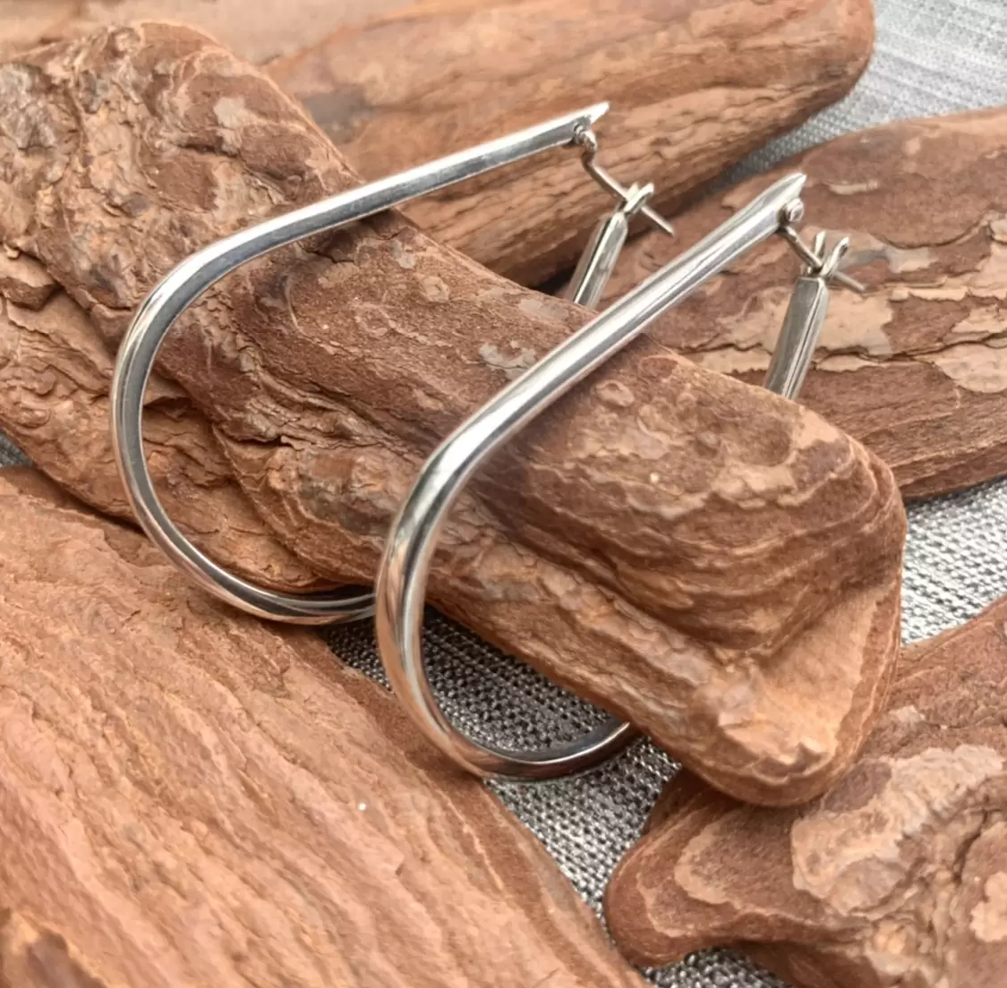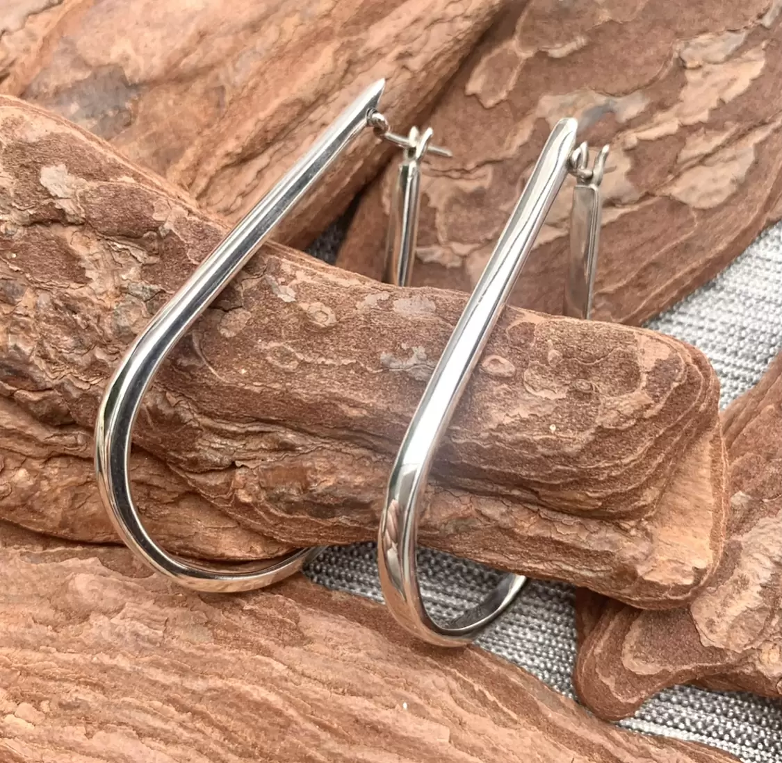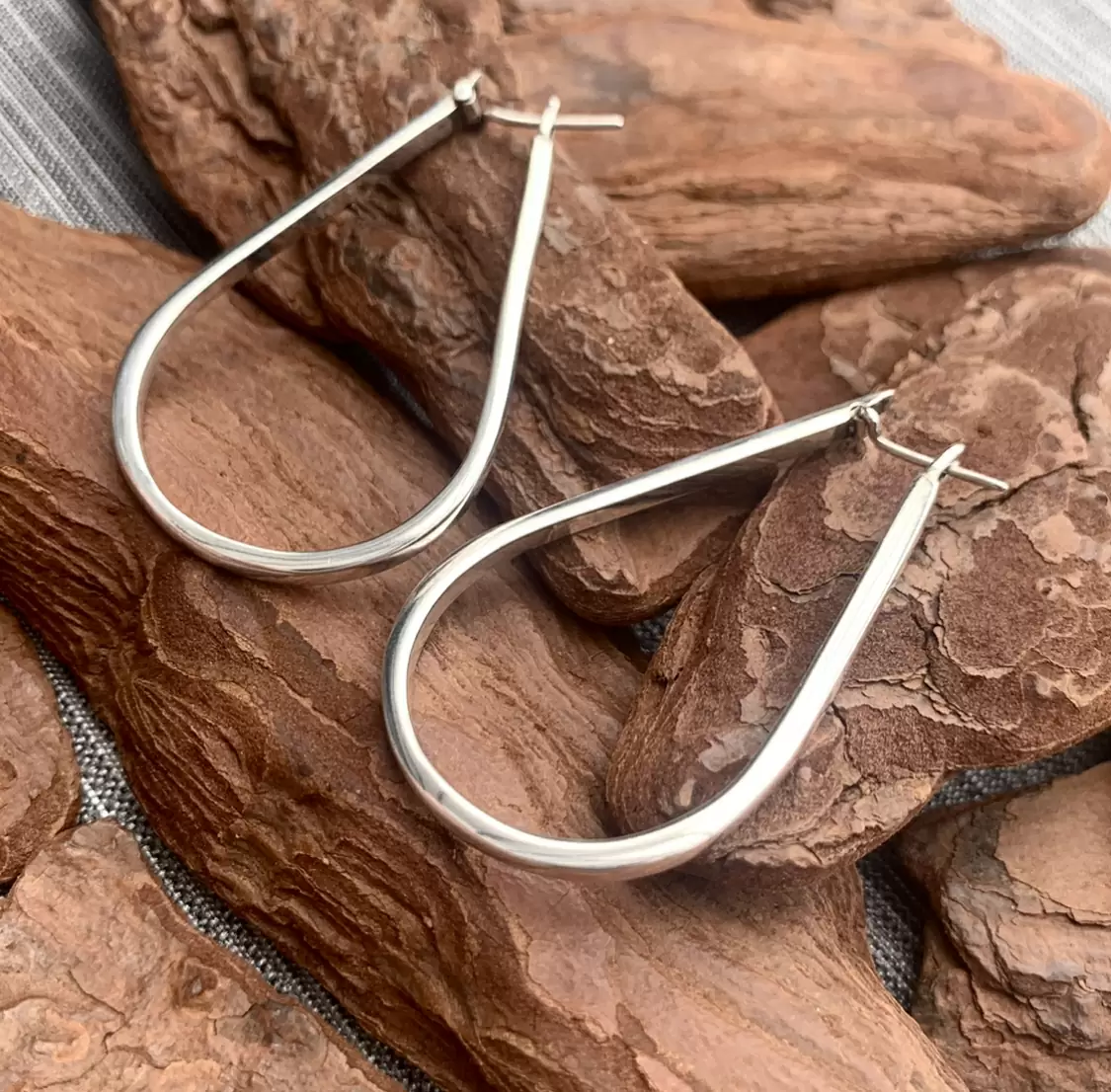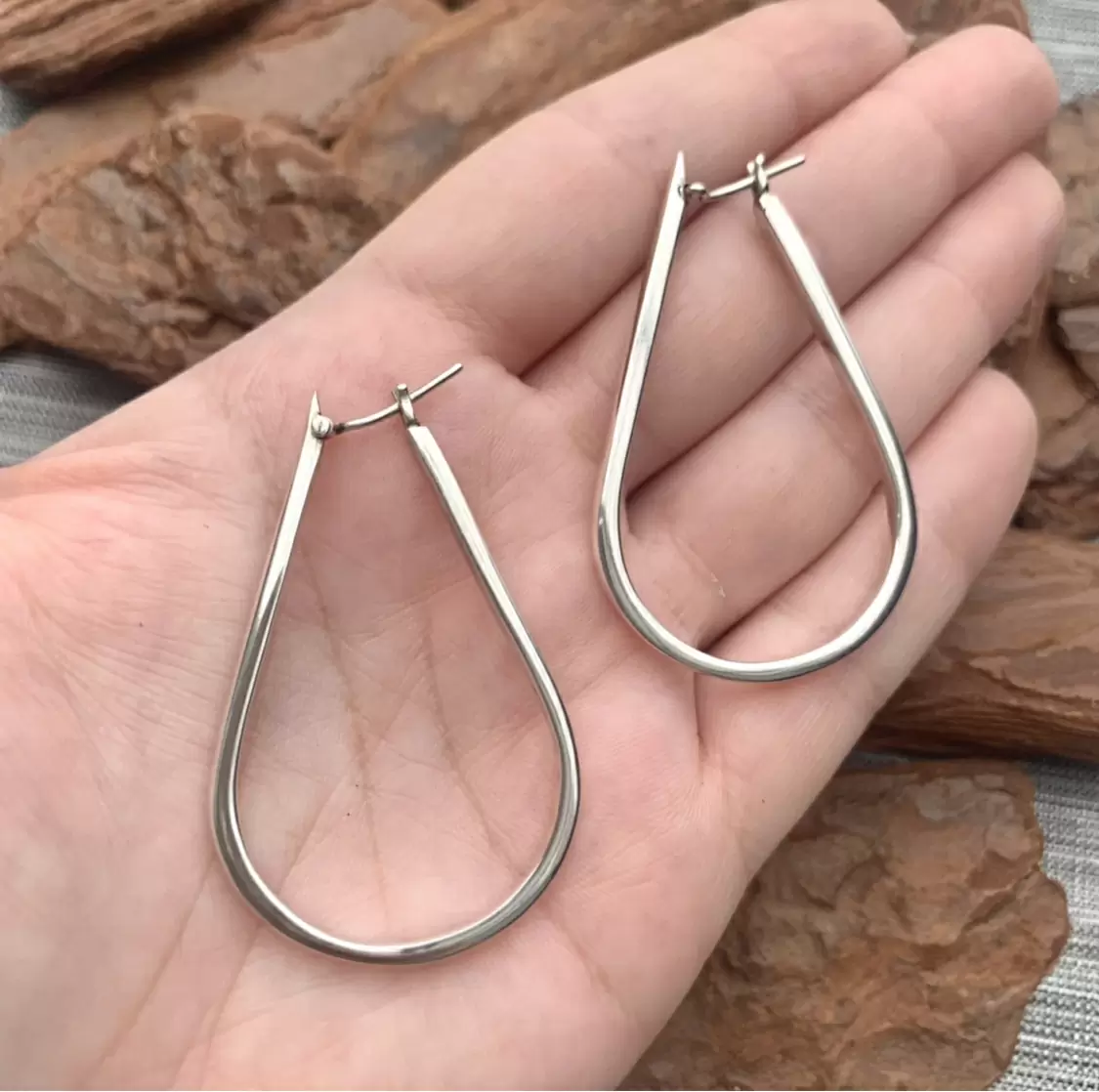 Argola com formato de gota toda feita em Prata 925.