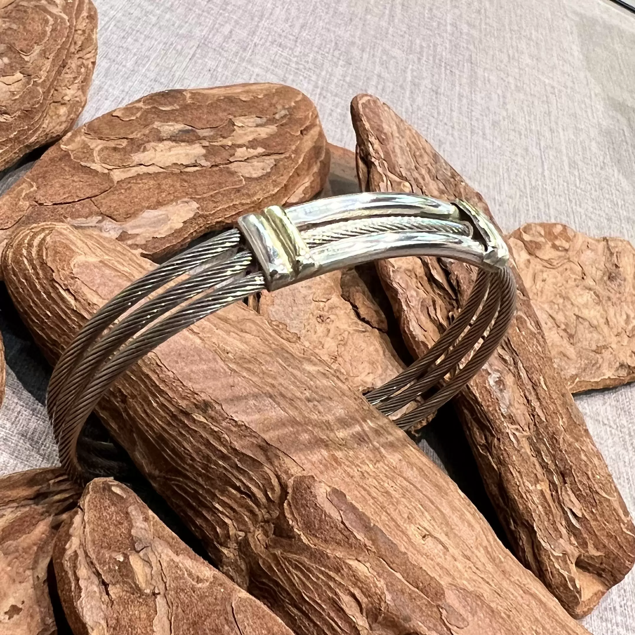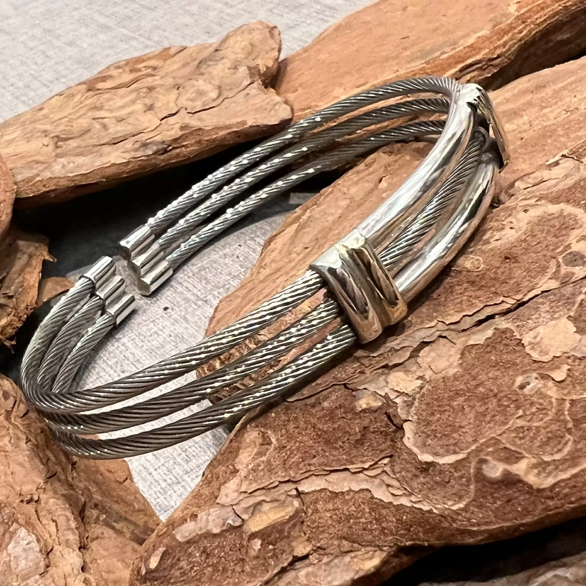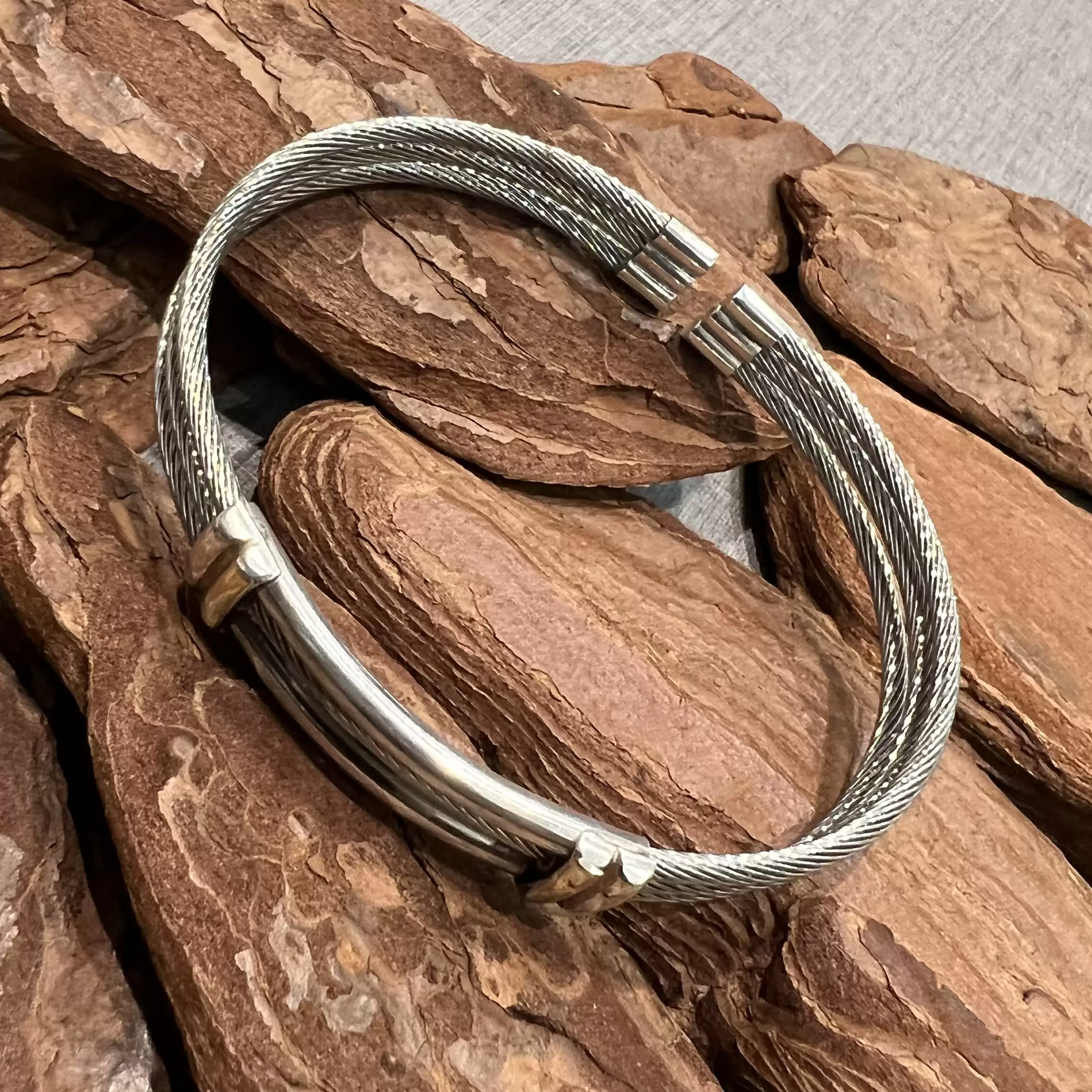 Bracelete Unissex de Cabo Náutico com Prata 925 e Aplique em Ouro.