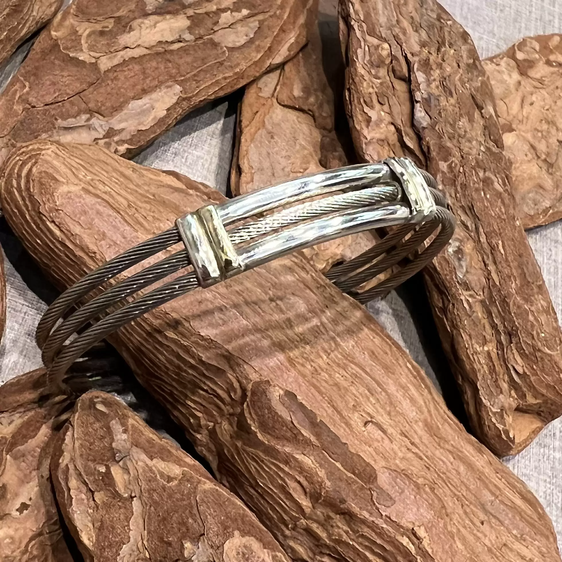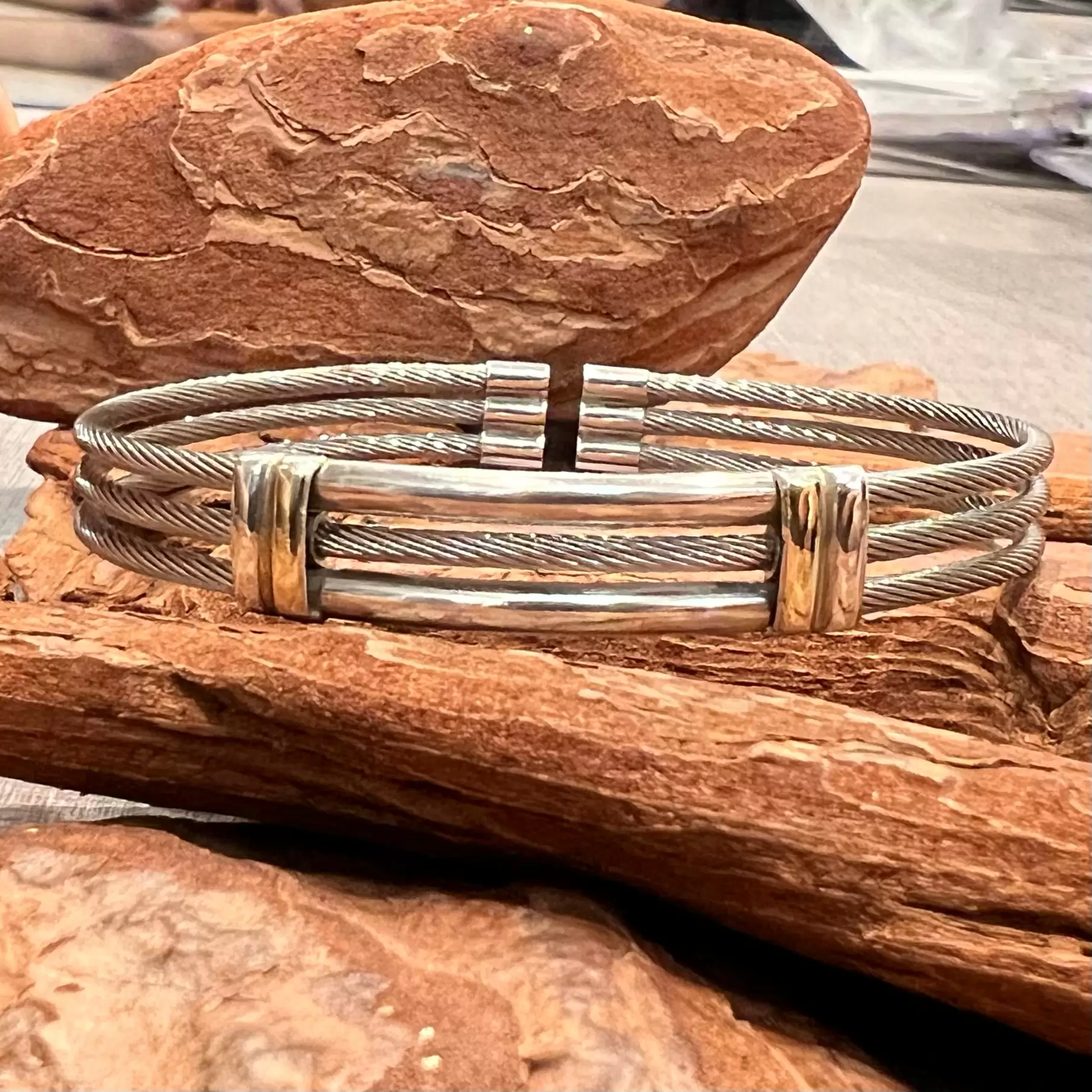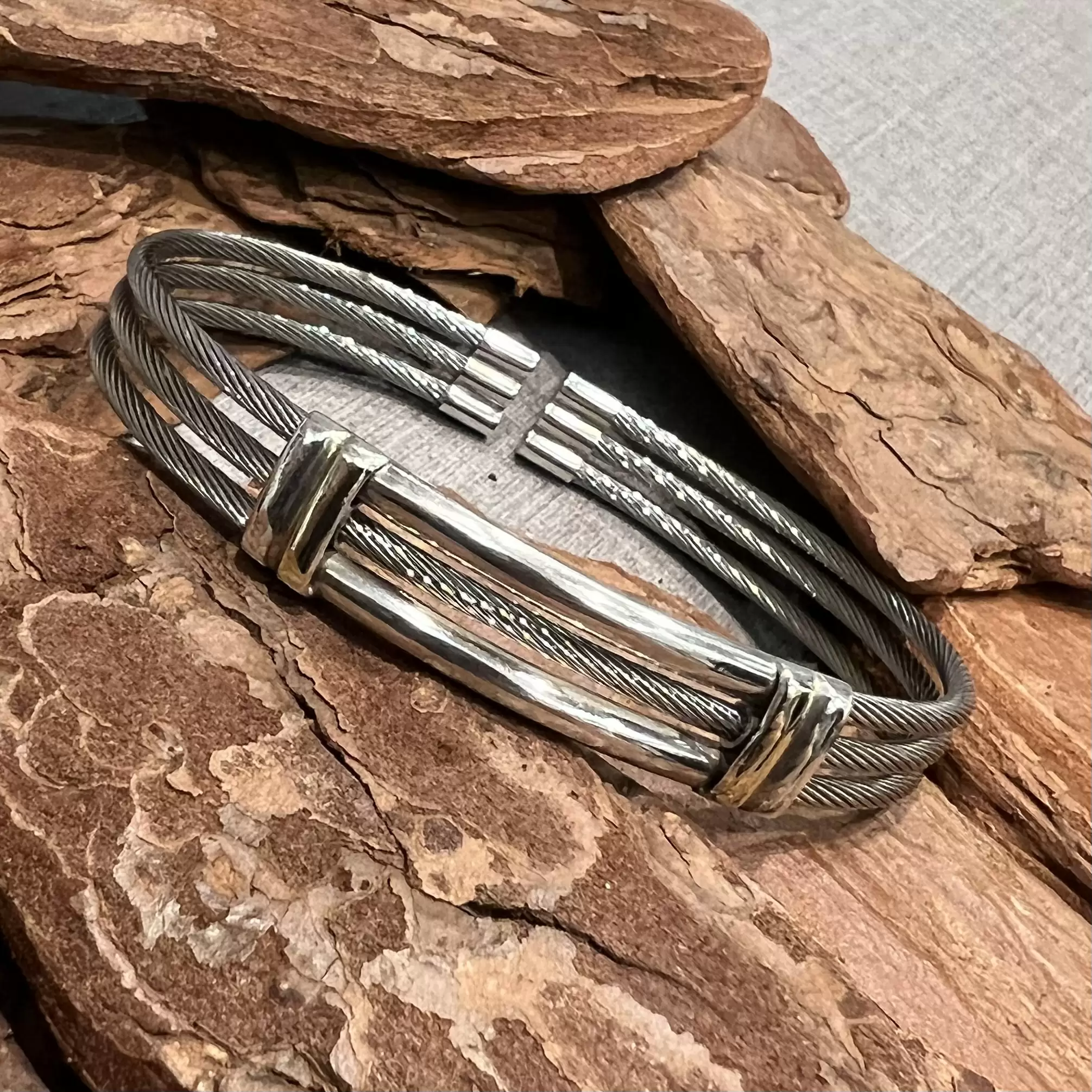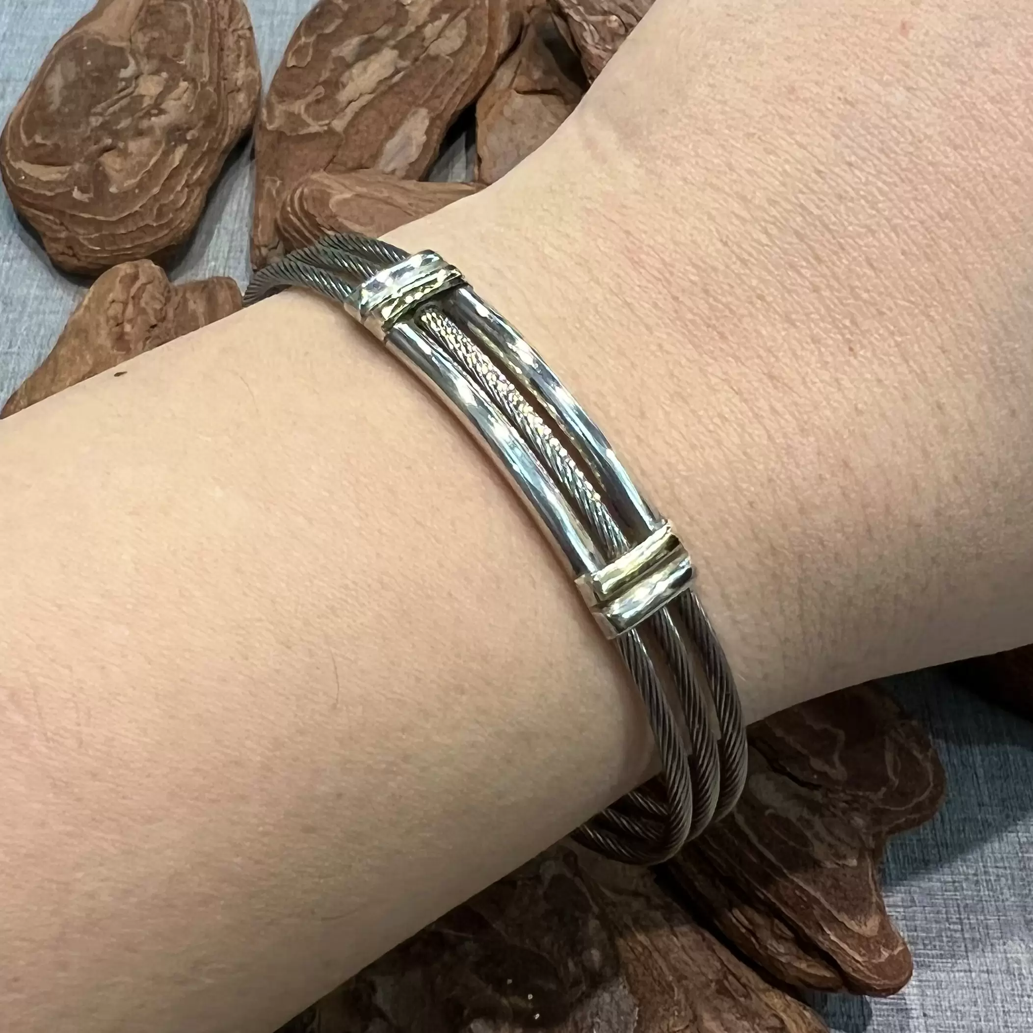 Bracelete Unissex de Cabo Náutico com Prata 925 e Aplique em Ouro.