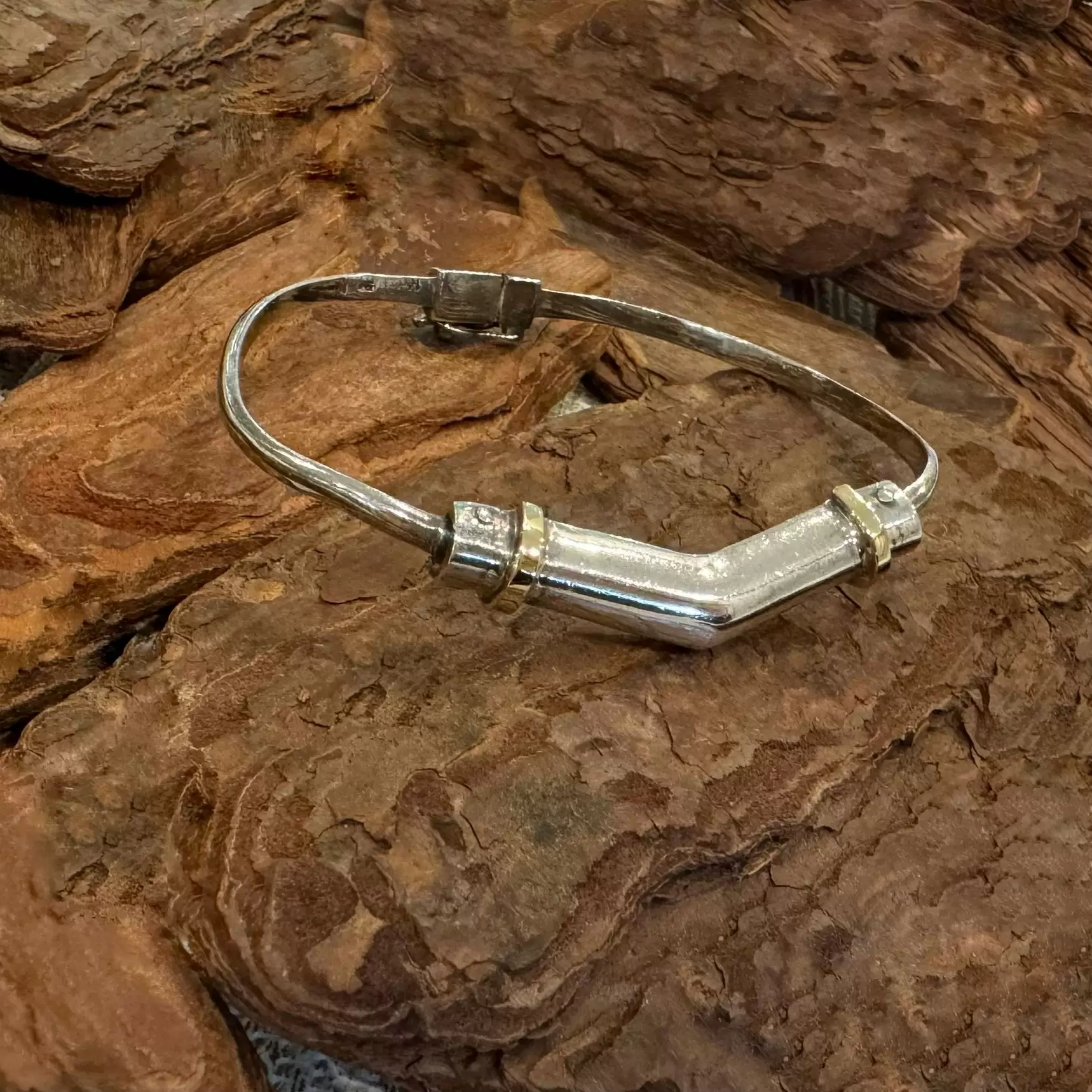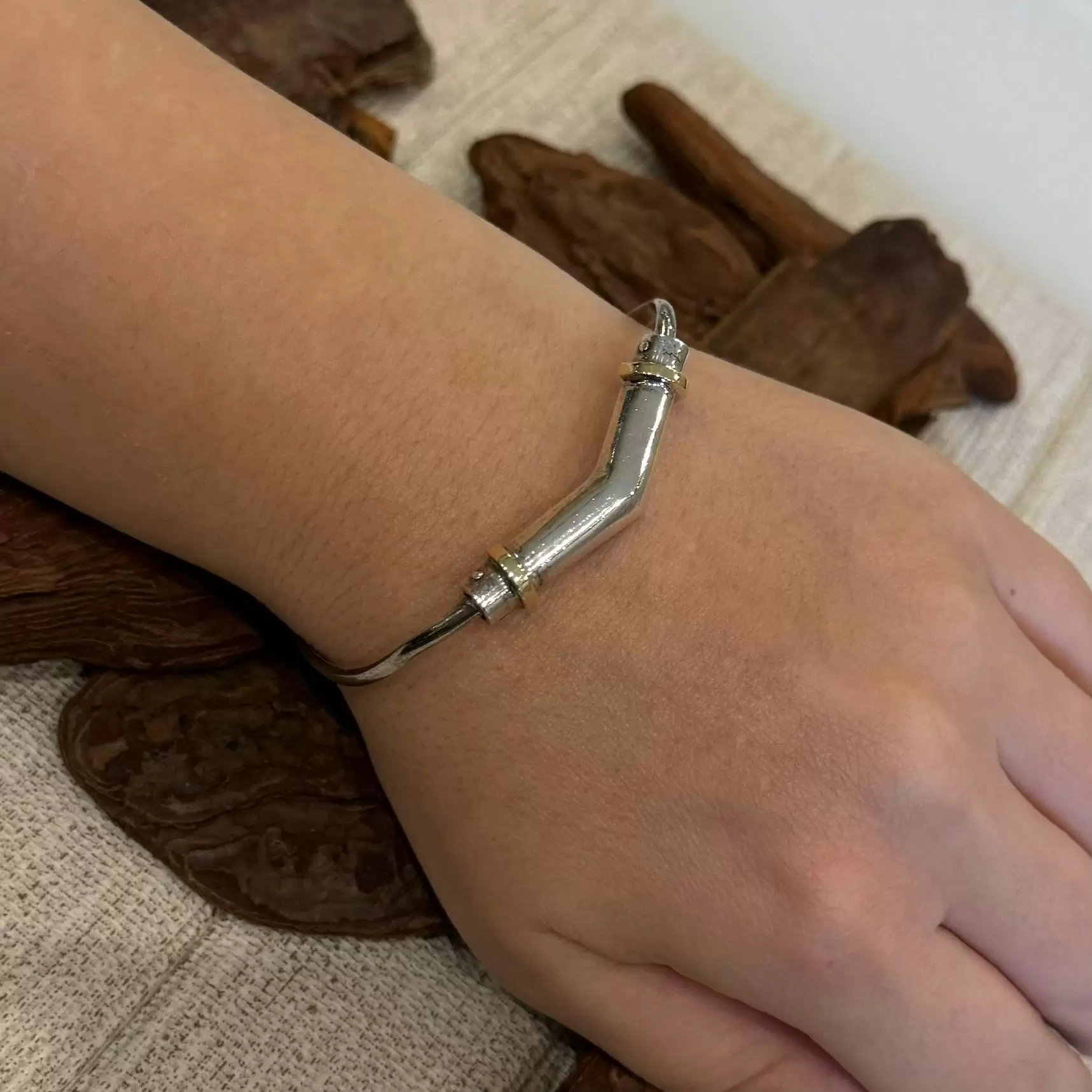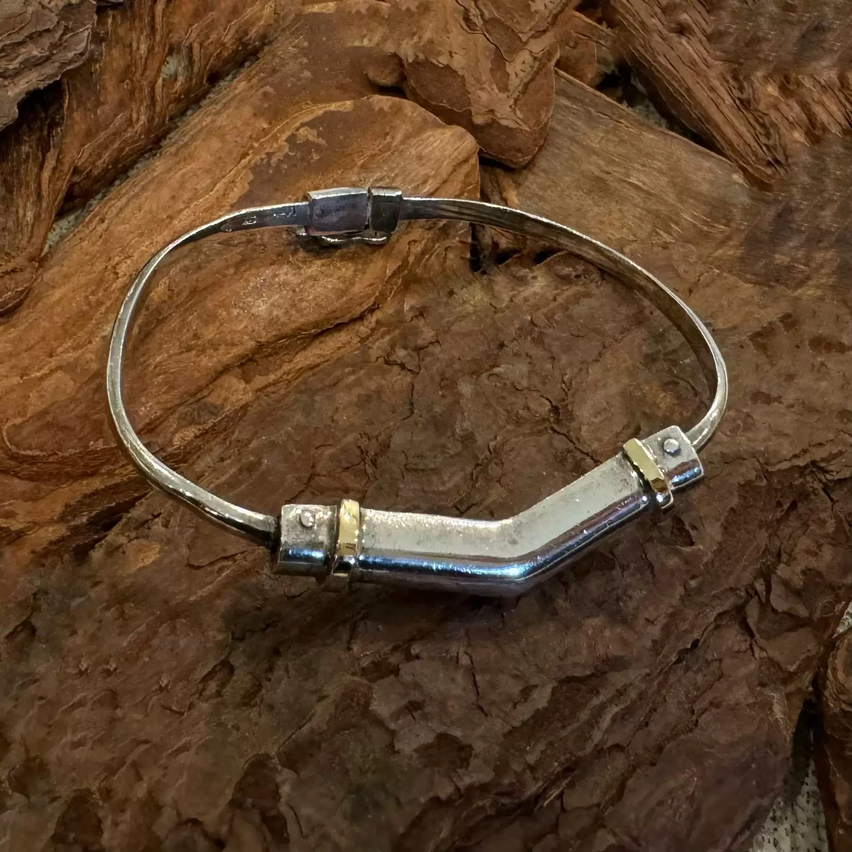 Bracelete de Prata 925 com Aplique em Ouro.