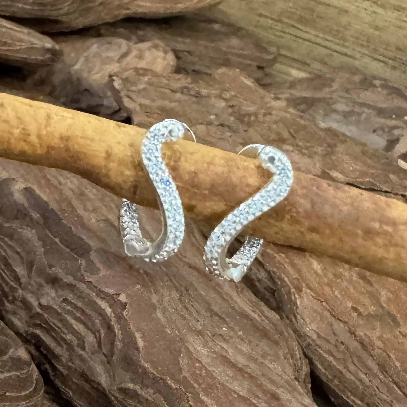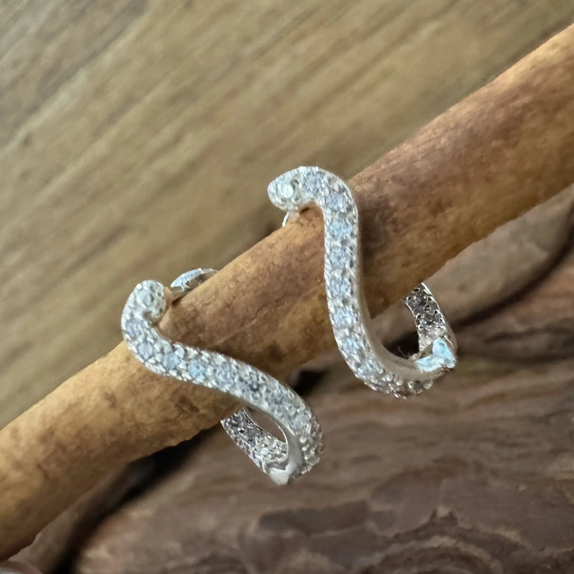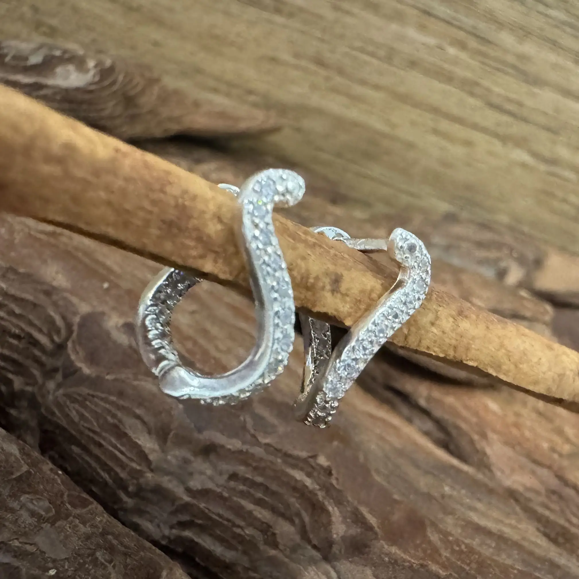 Brinco Argola click Snake cravejado com Zircônias em Prata 925.