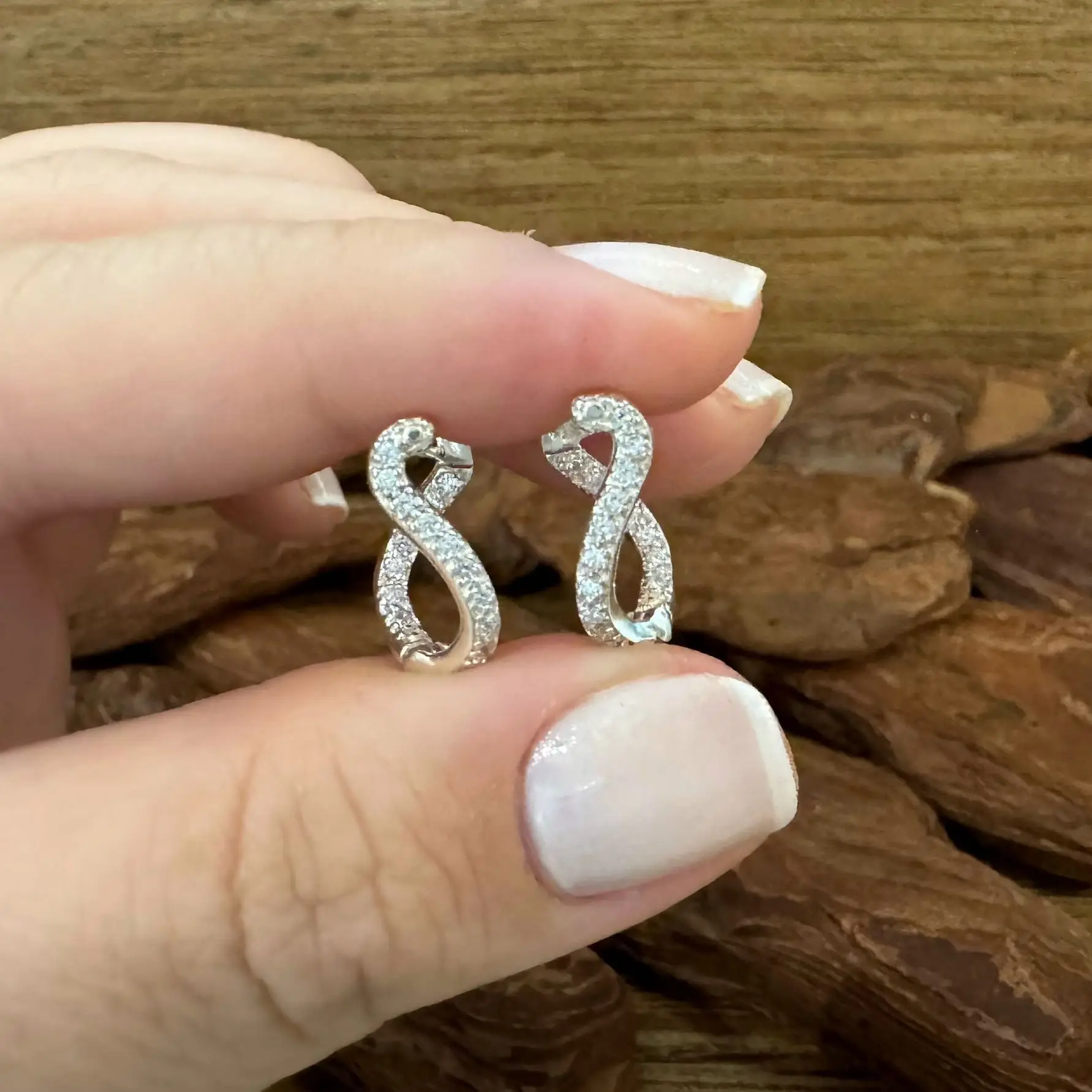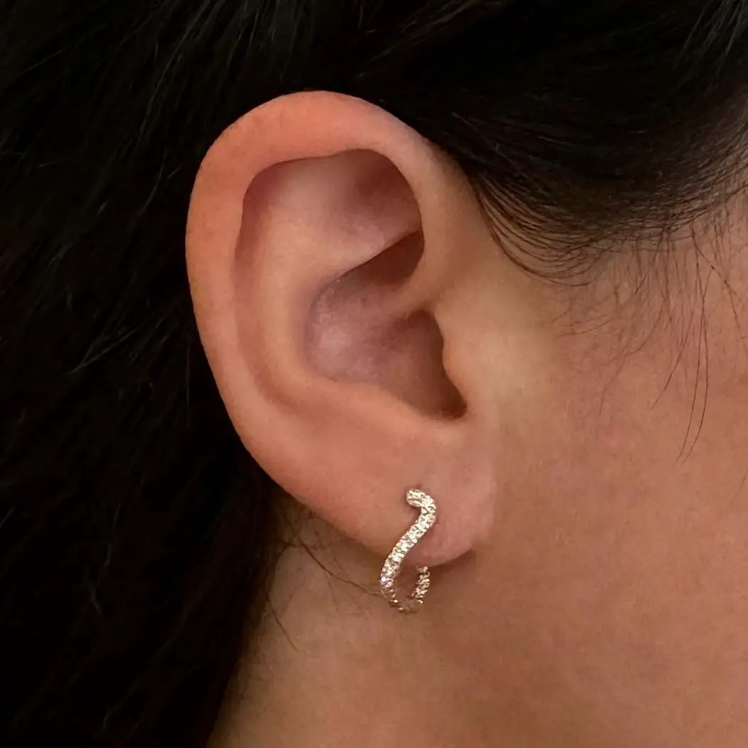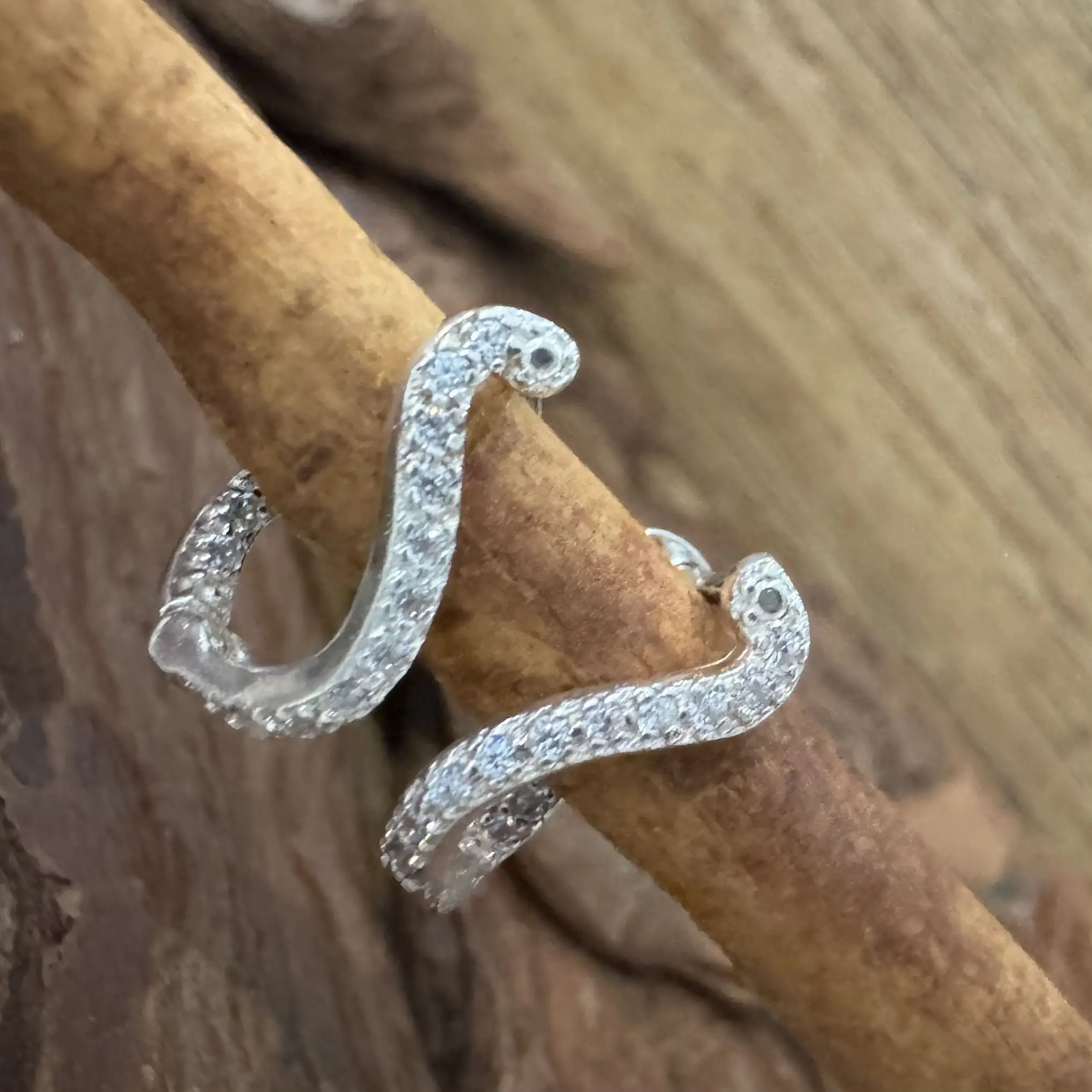 Brinco Argola click Snake cravejado com Zircônias em Prata 925.