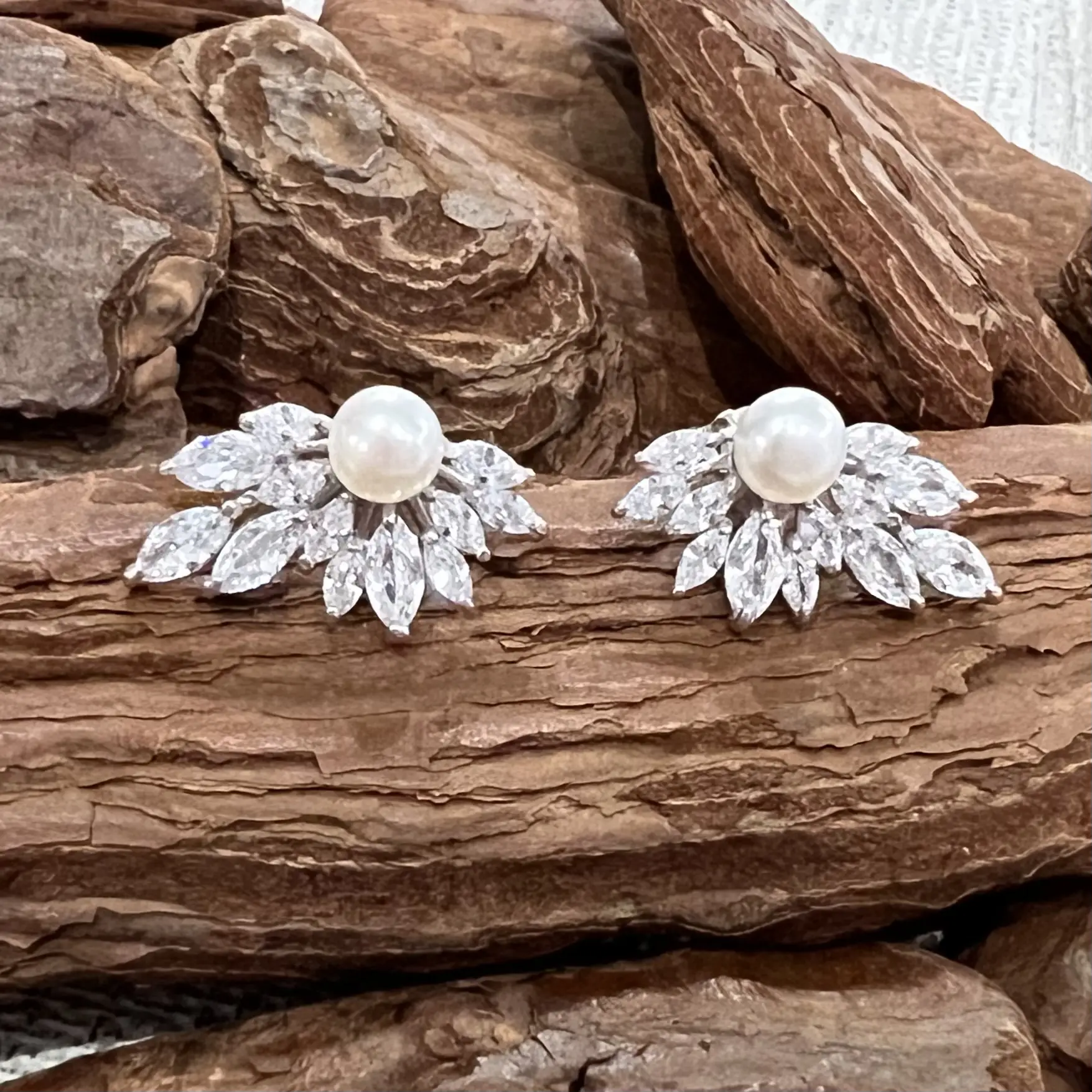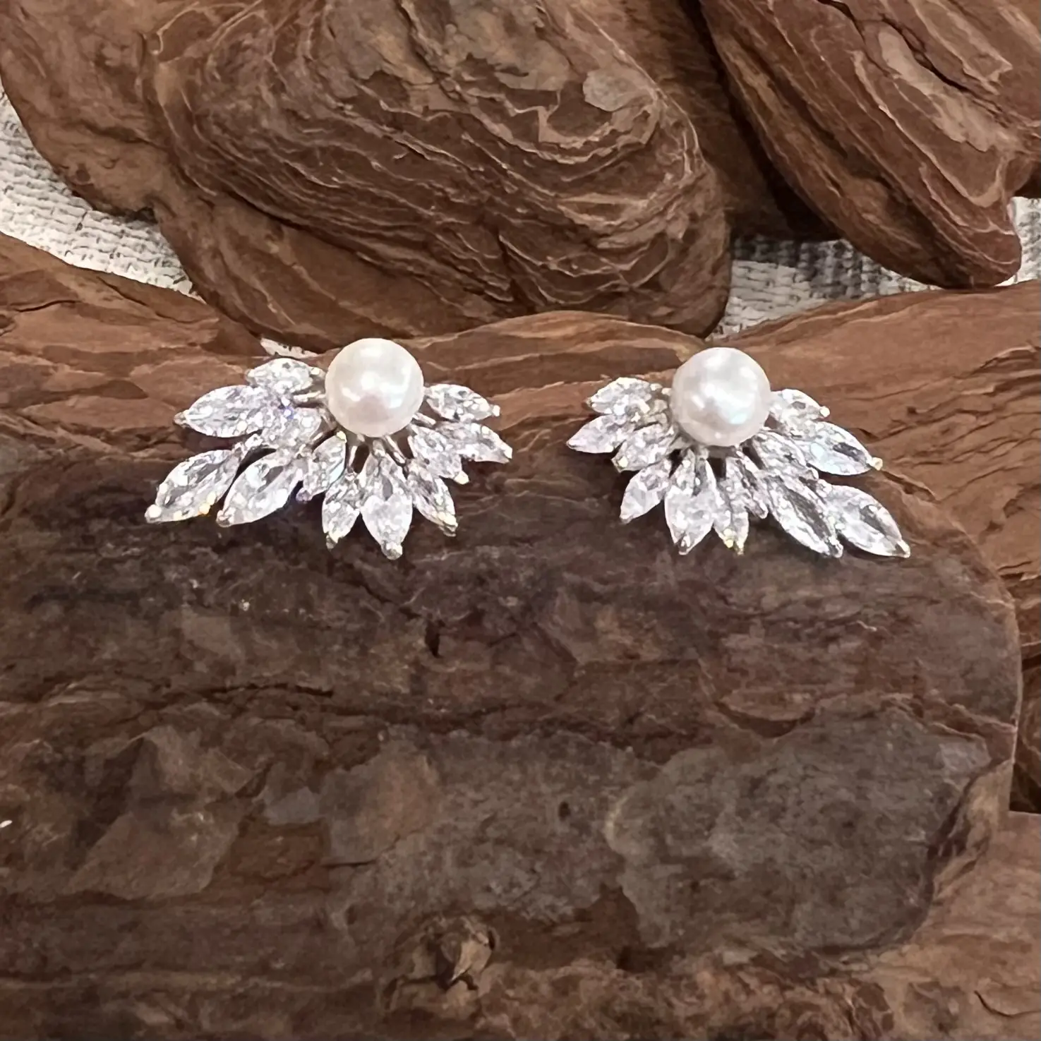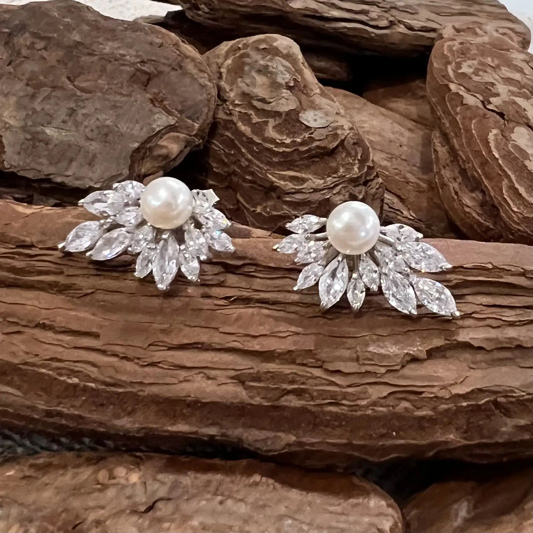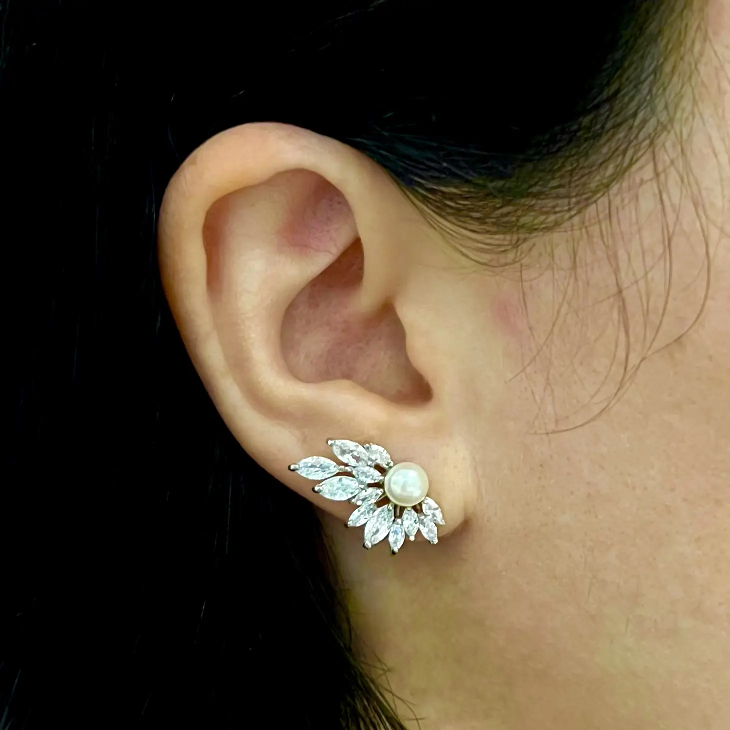 Brinco Earcuff de Pérola Natural com Zircônias em Prata 925 com banho de Ródio.