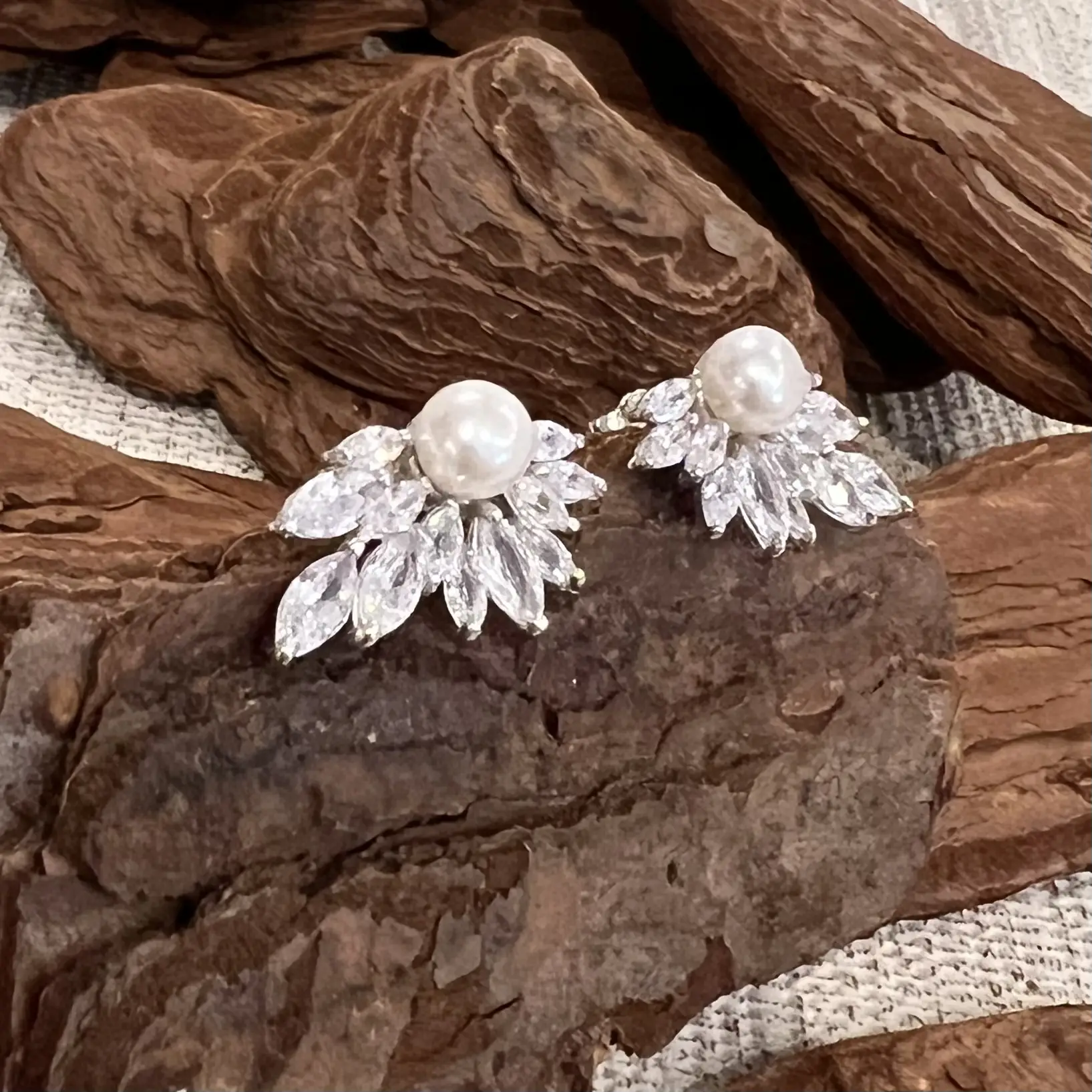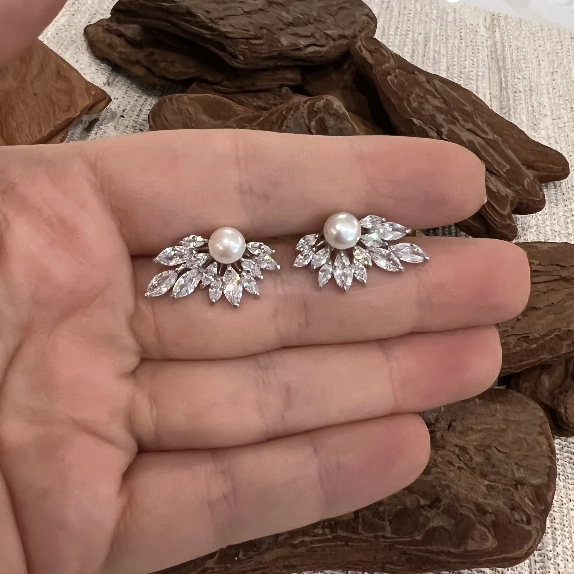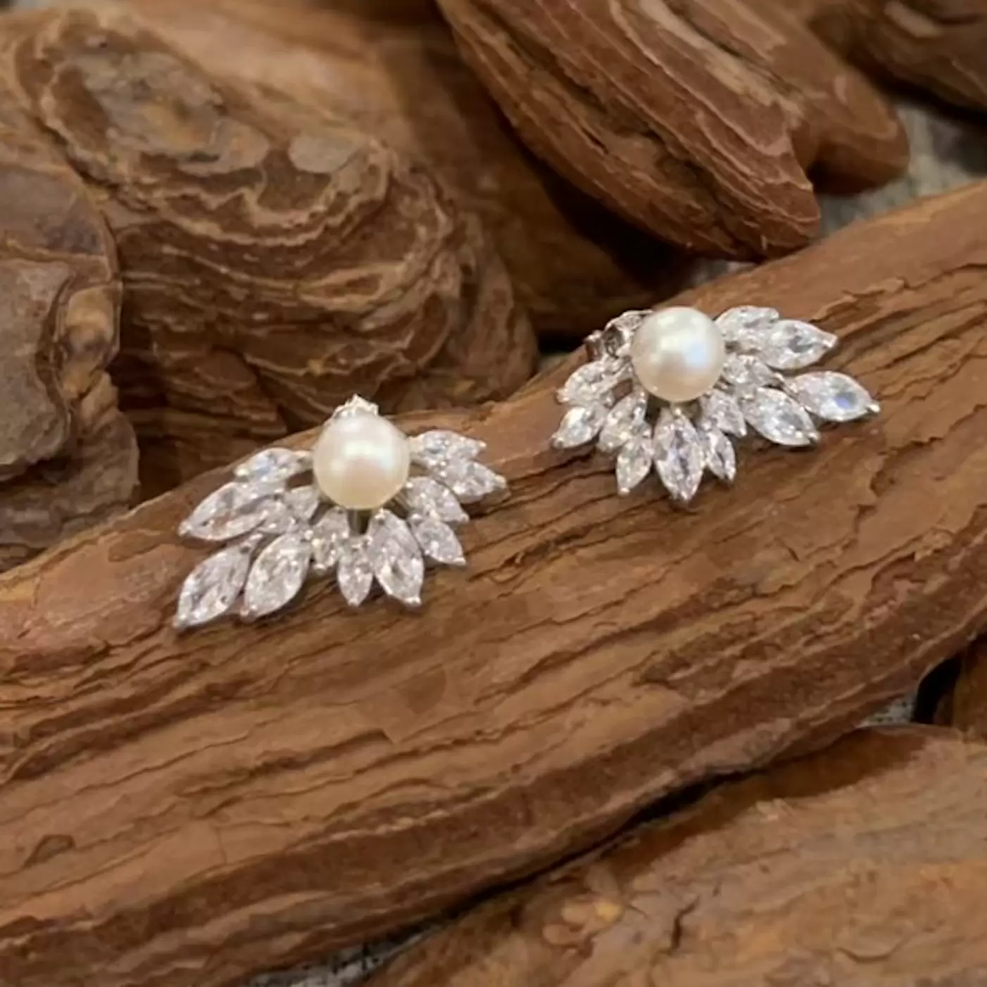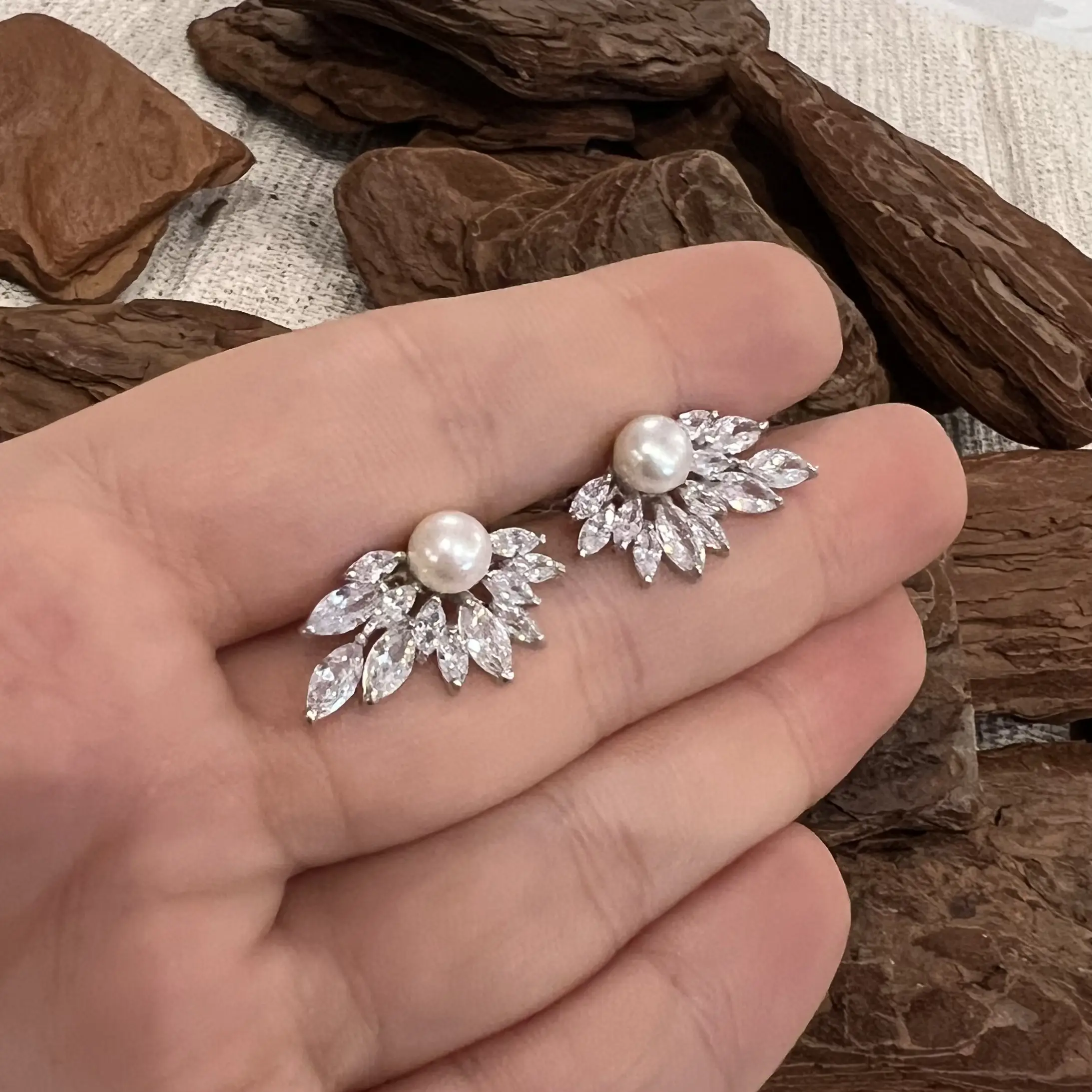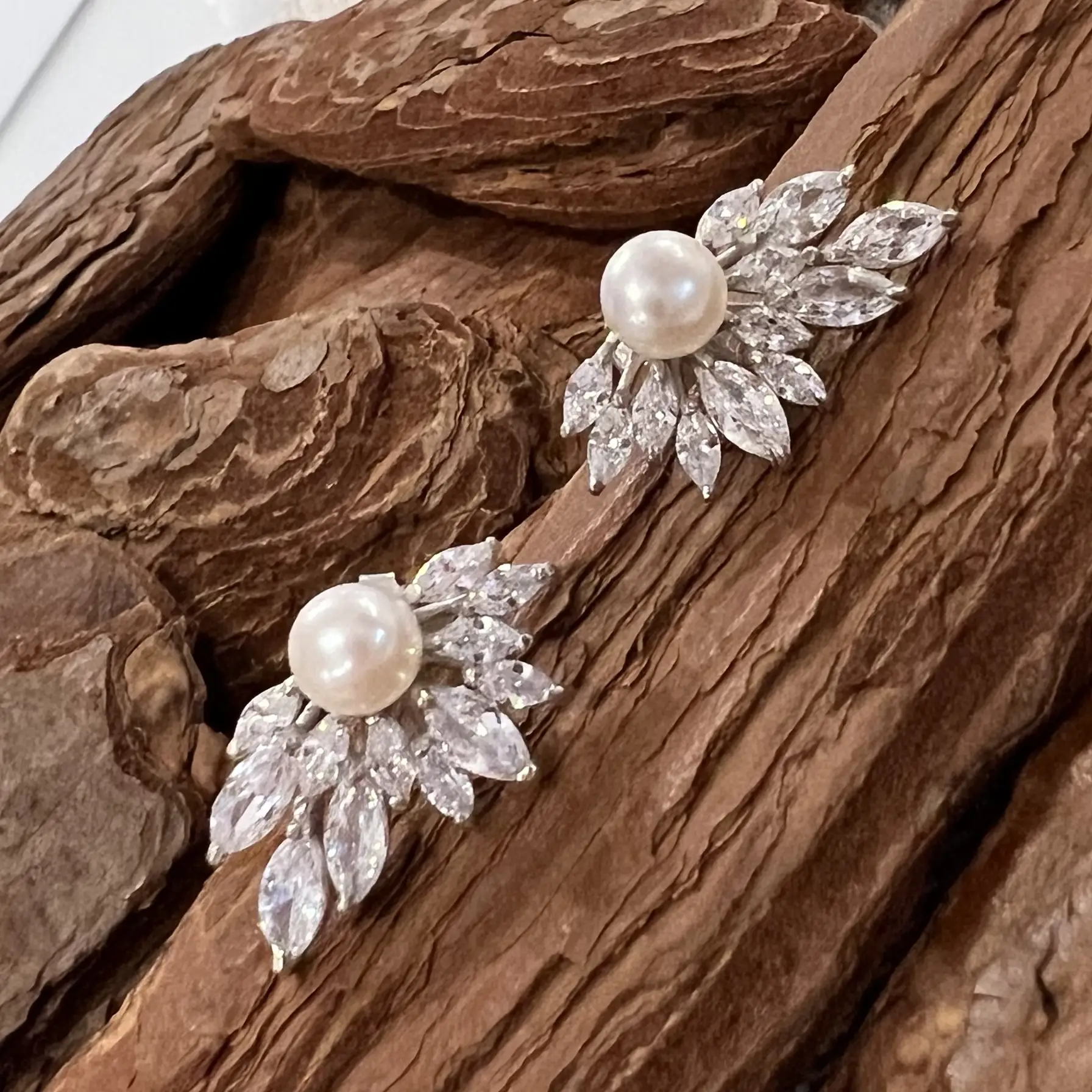 Brinco Earcuff de Pérola Natural com Zircônias em Prata 925 com banho de Ródio.