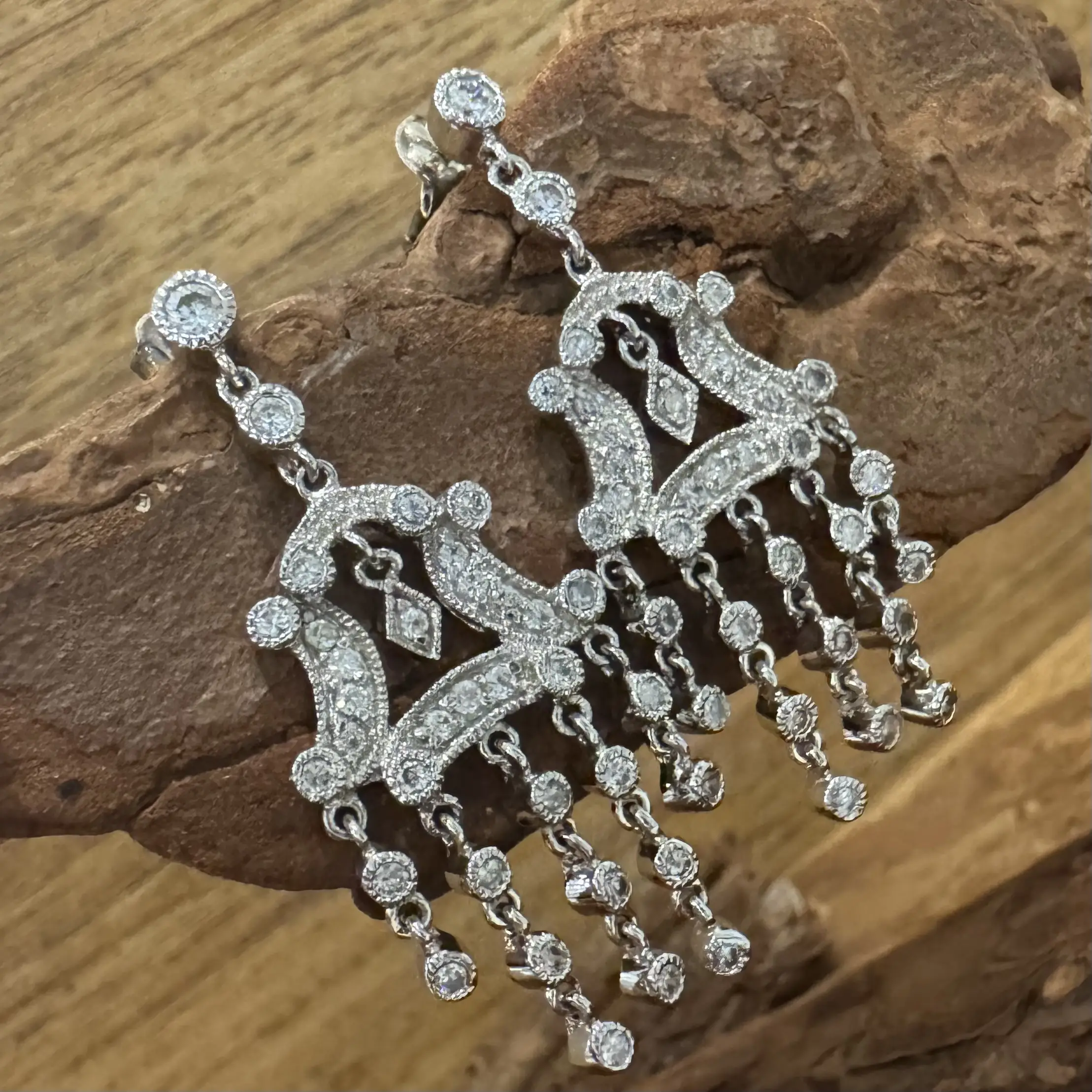 Brinco Festa cravejado com zirconias em Prata 925 com banho de Rodio.