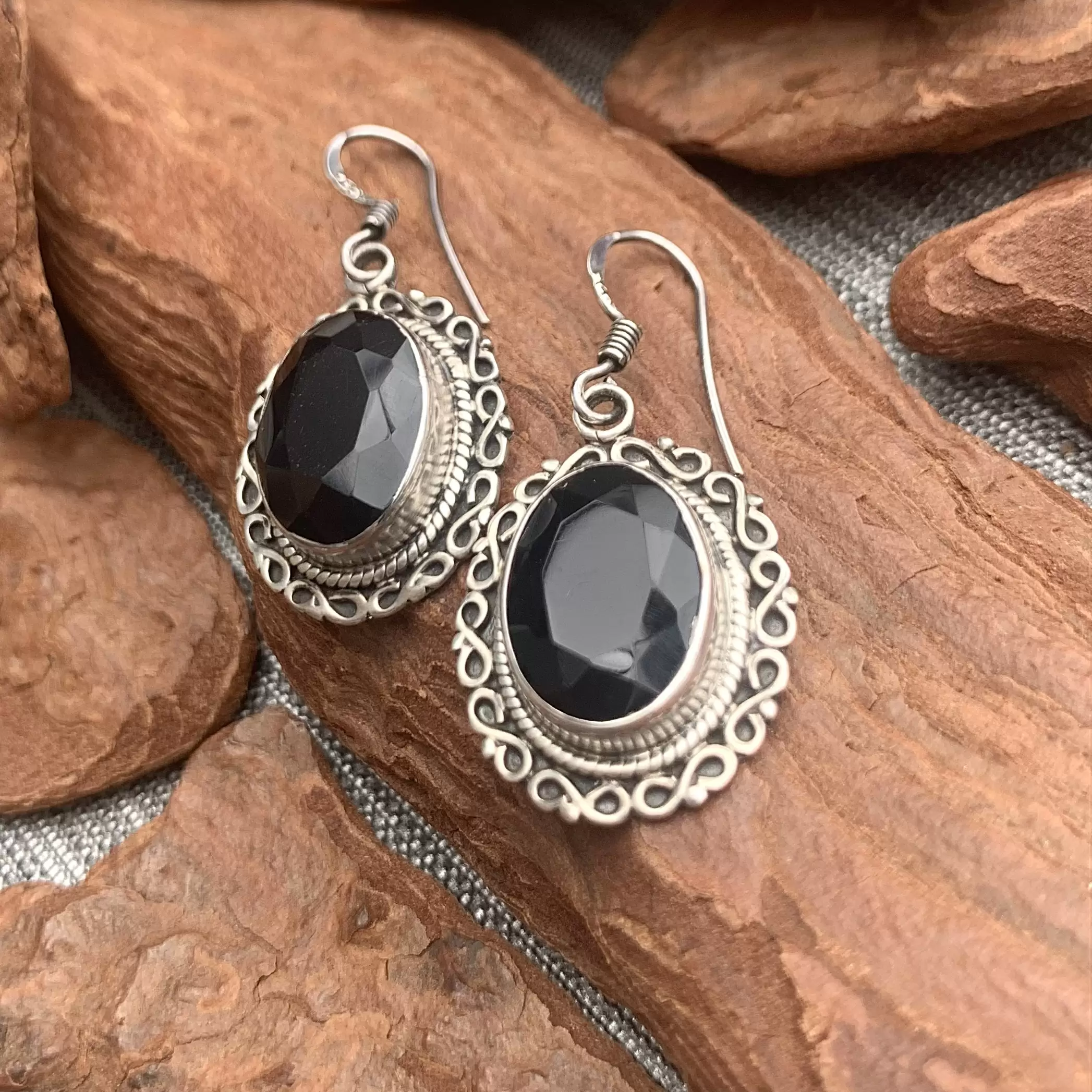 Brindo gancho estilo indiano de ônix feito em prata 925.