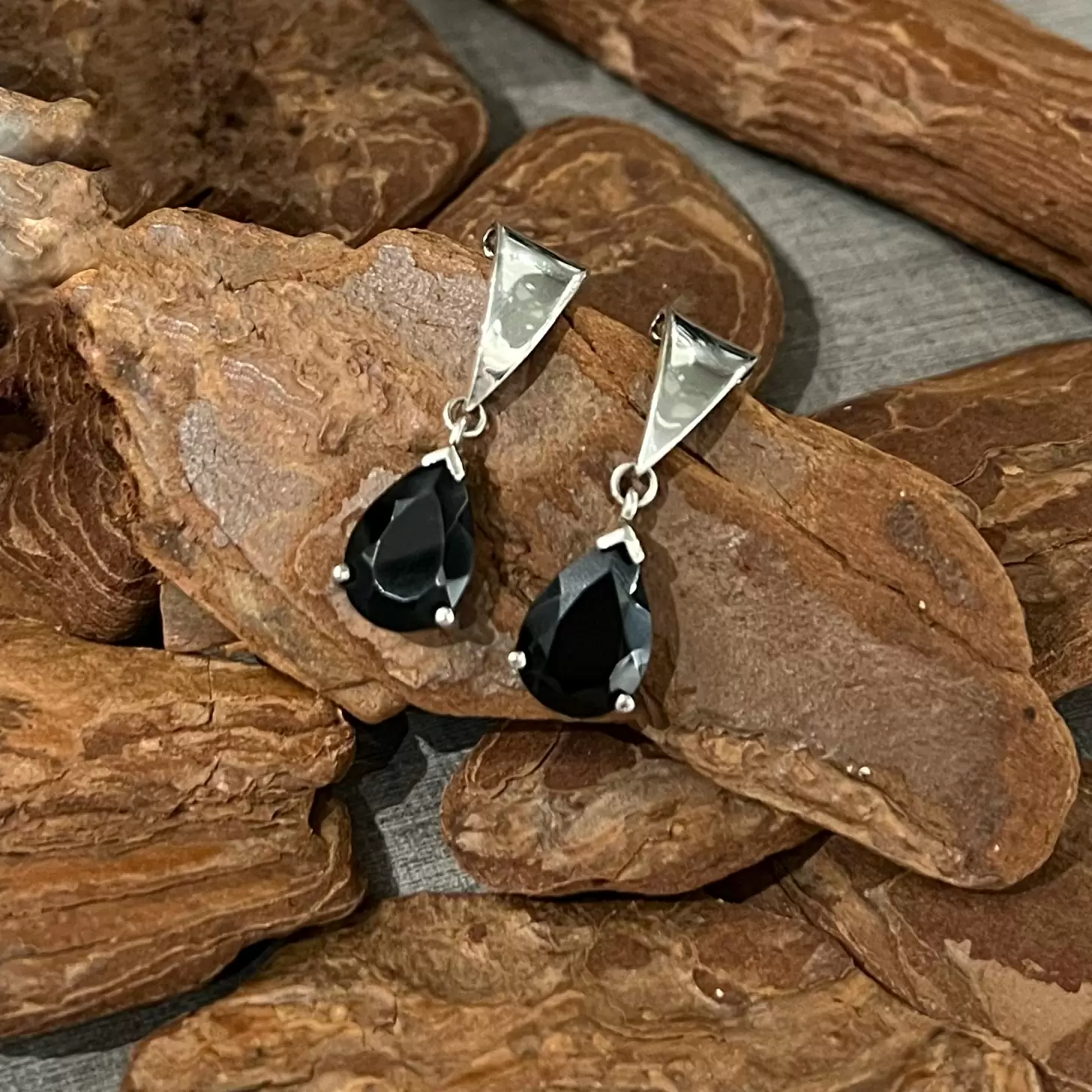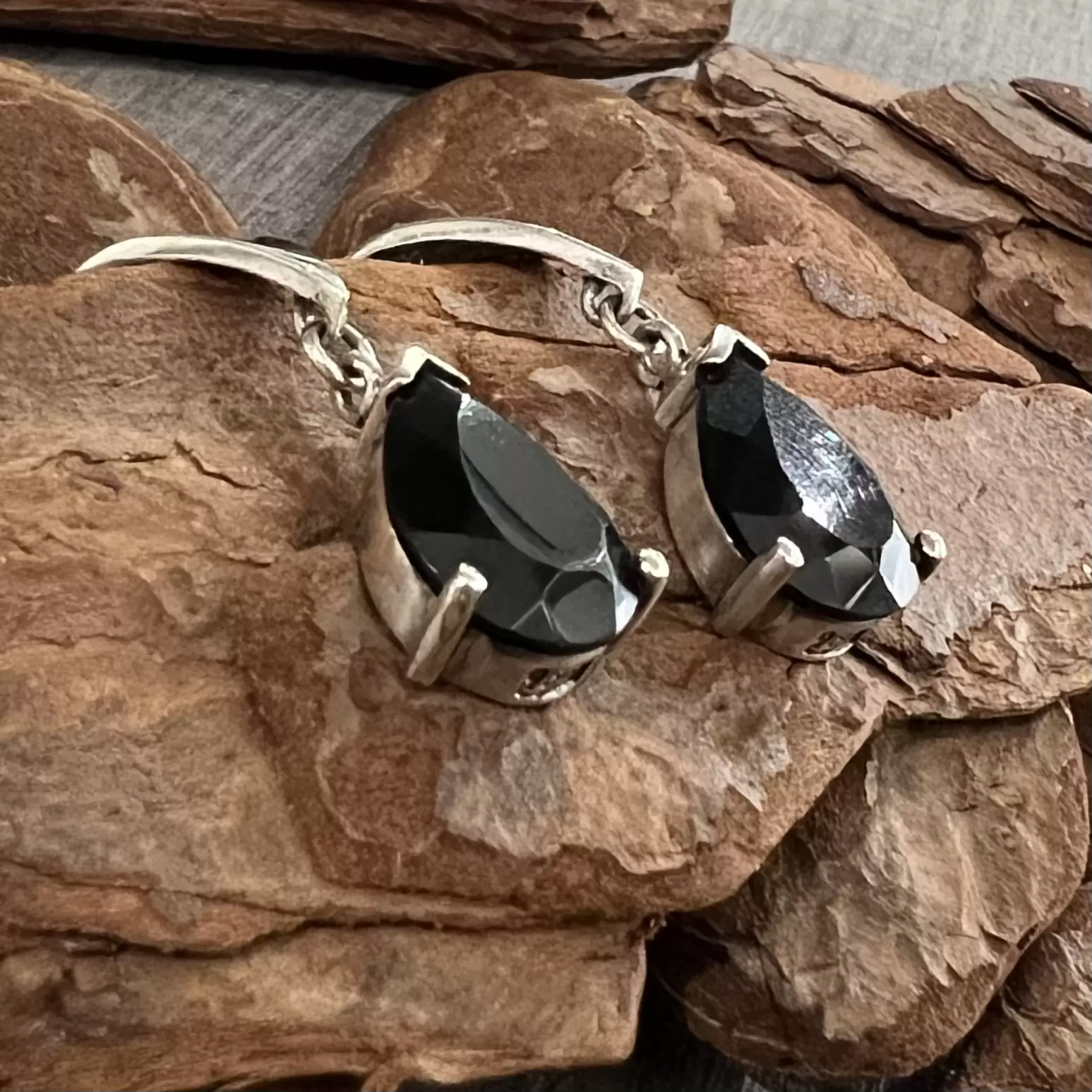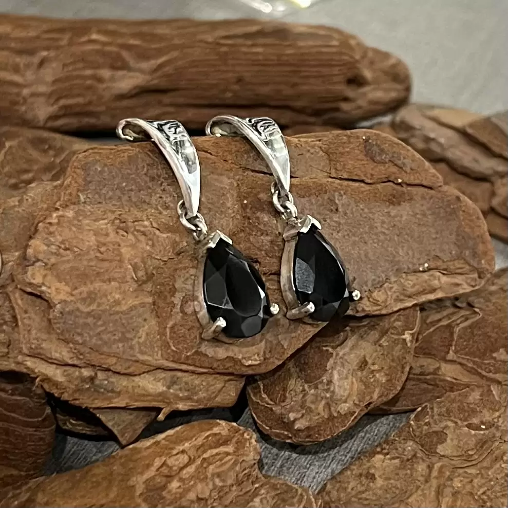 Brinco pendurado com uma gota de ônix em prata 925.