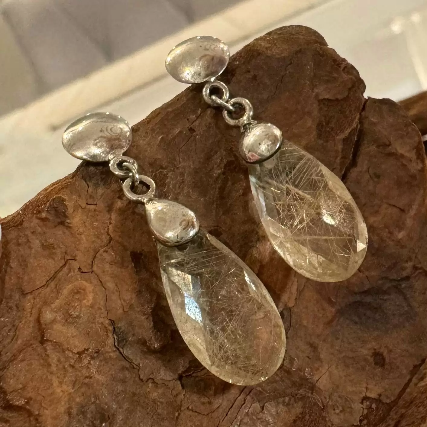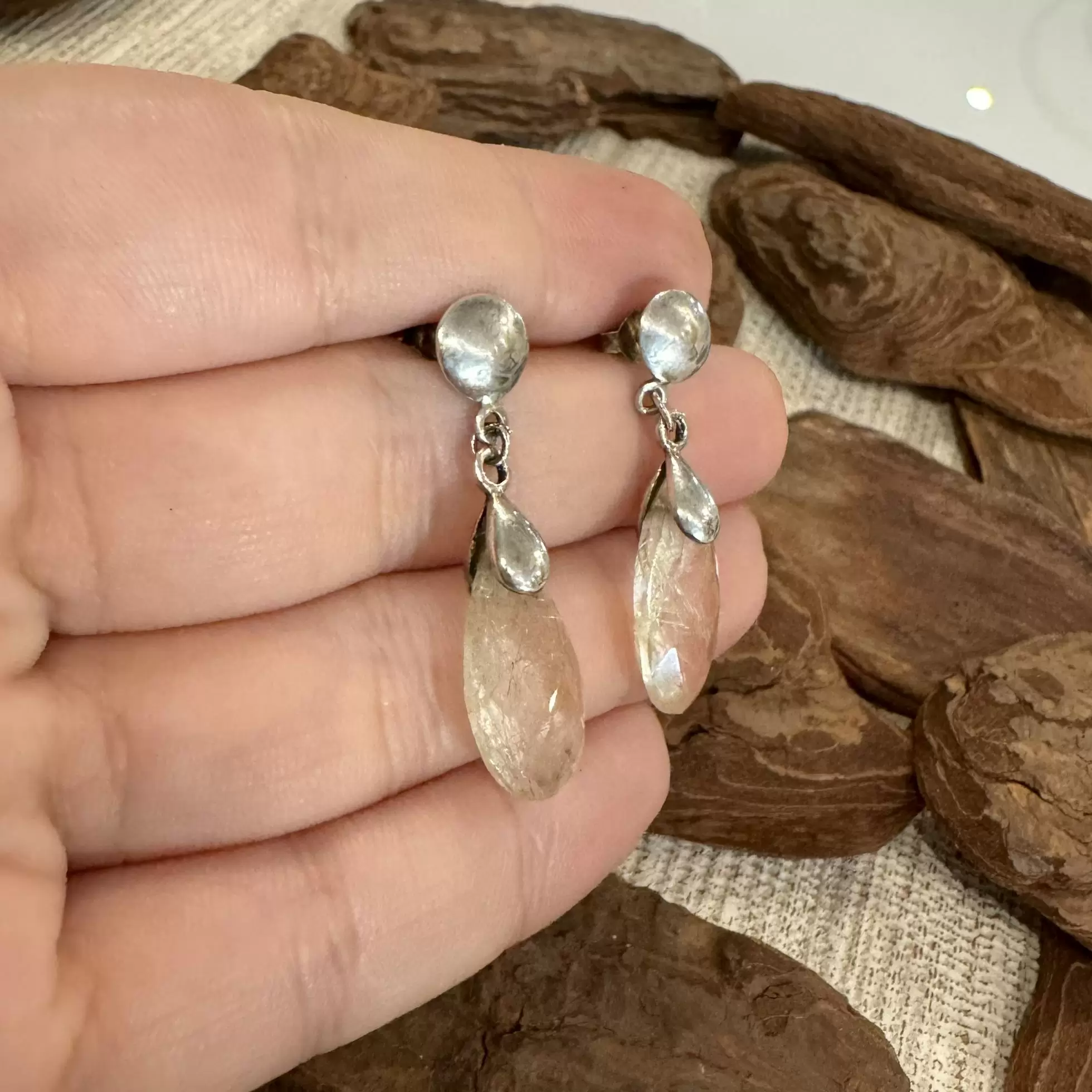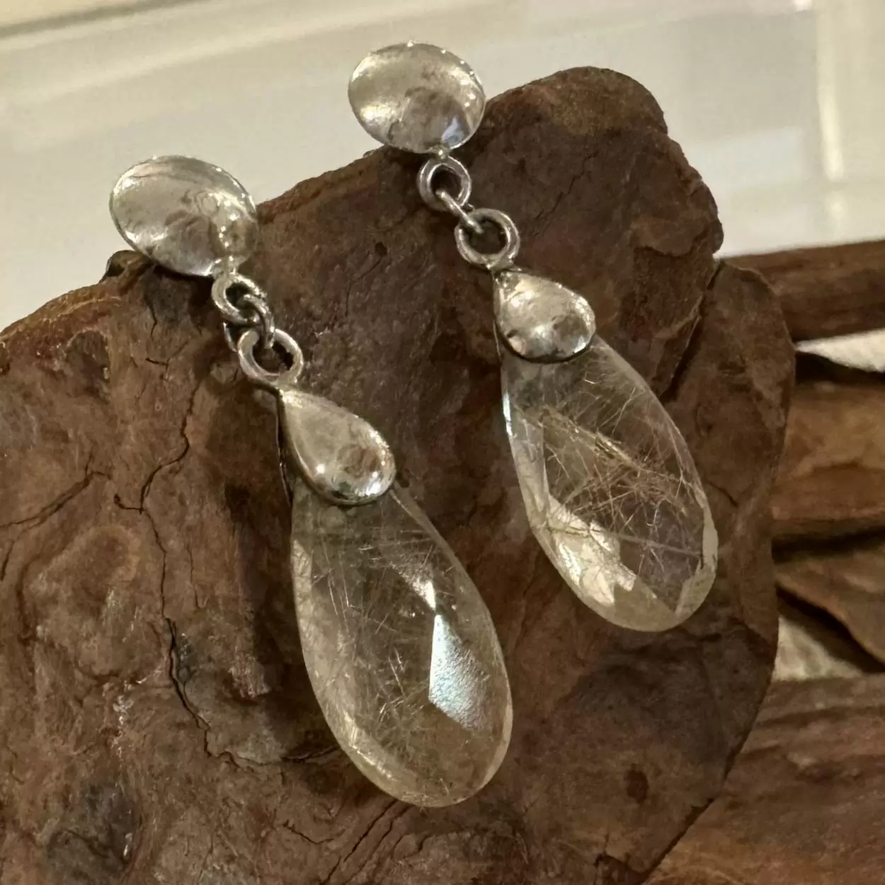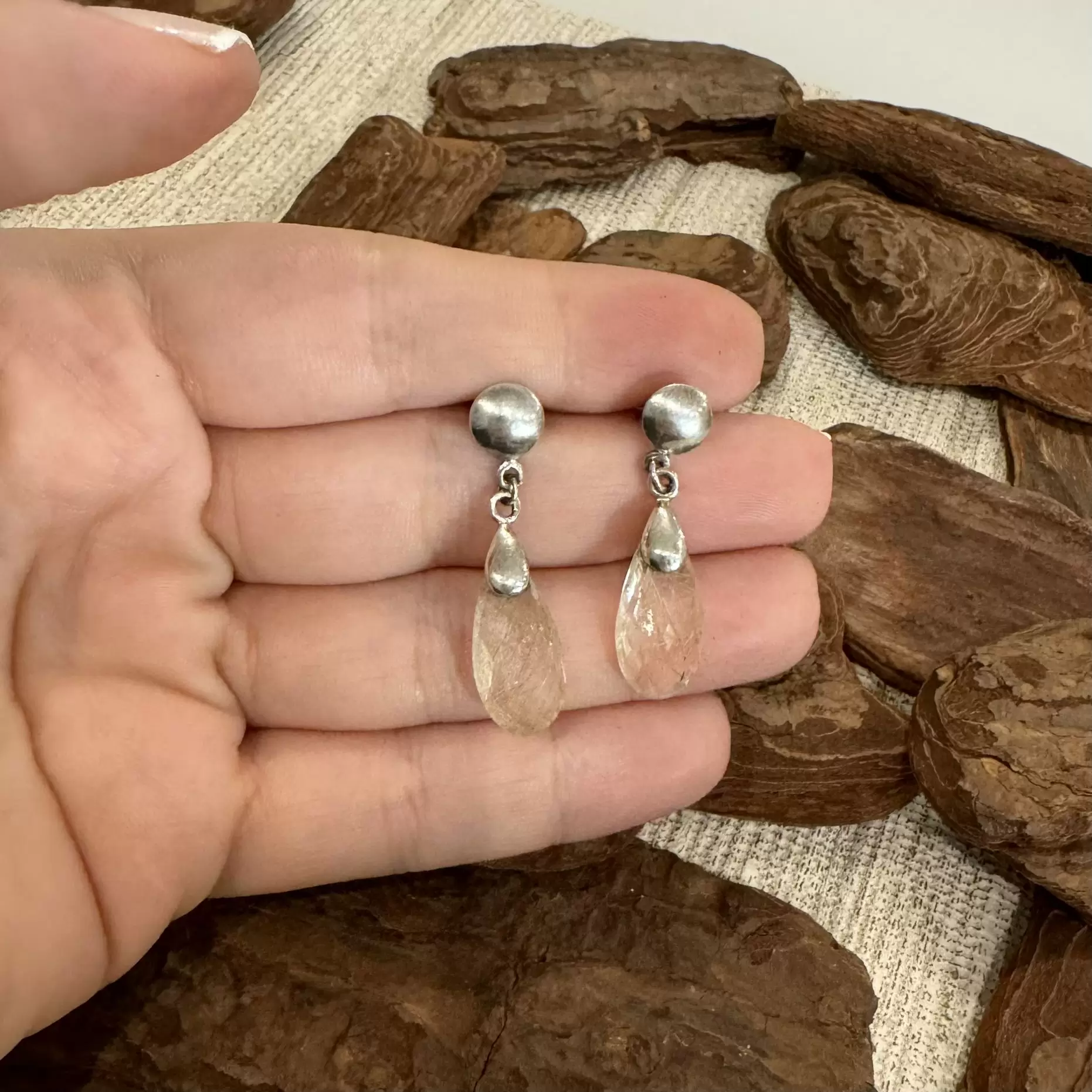 Brinco Gota de Quartzo Rutilado em Prata 925.