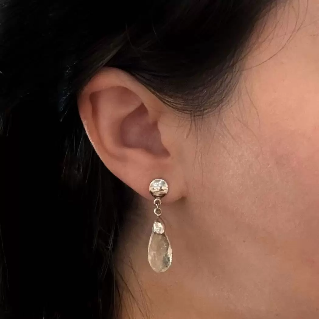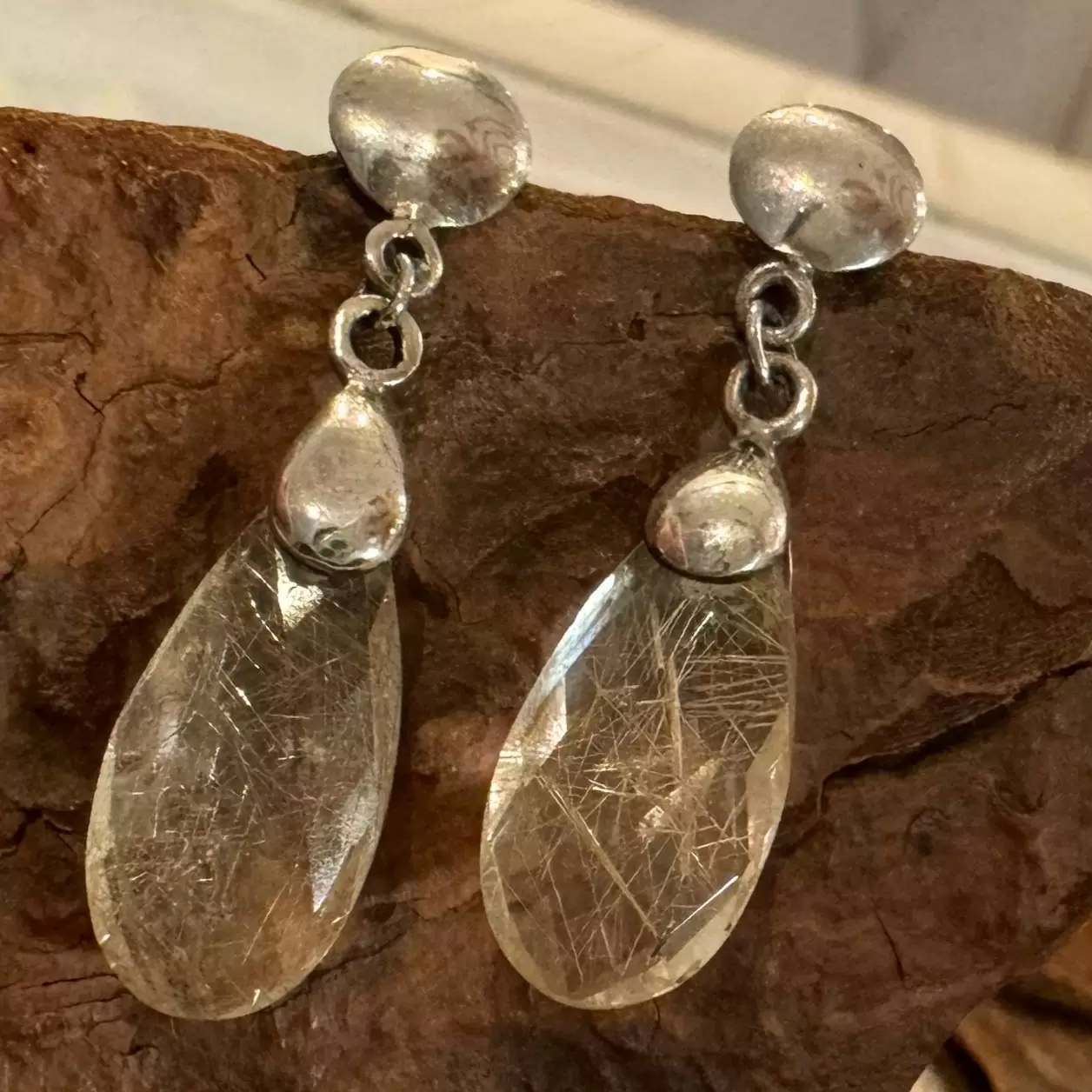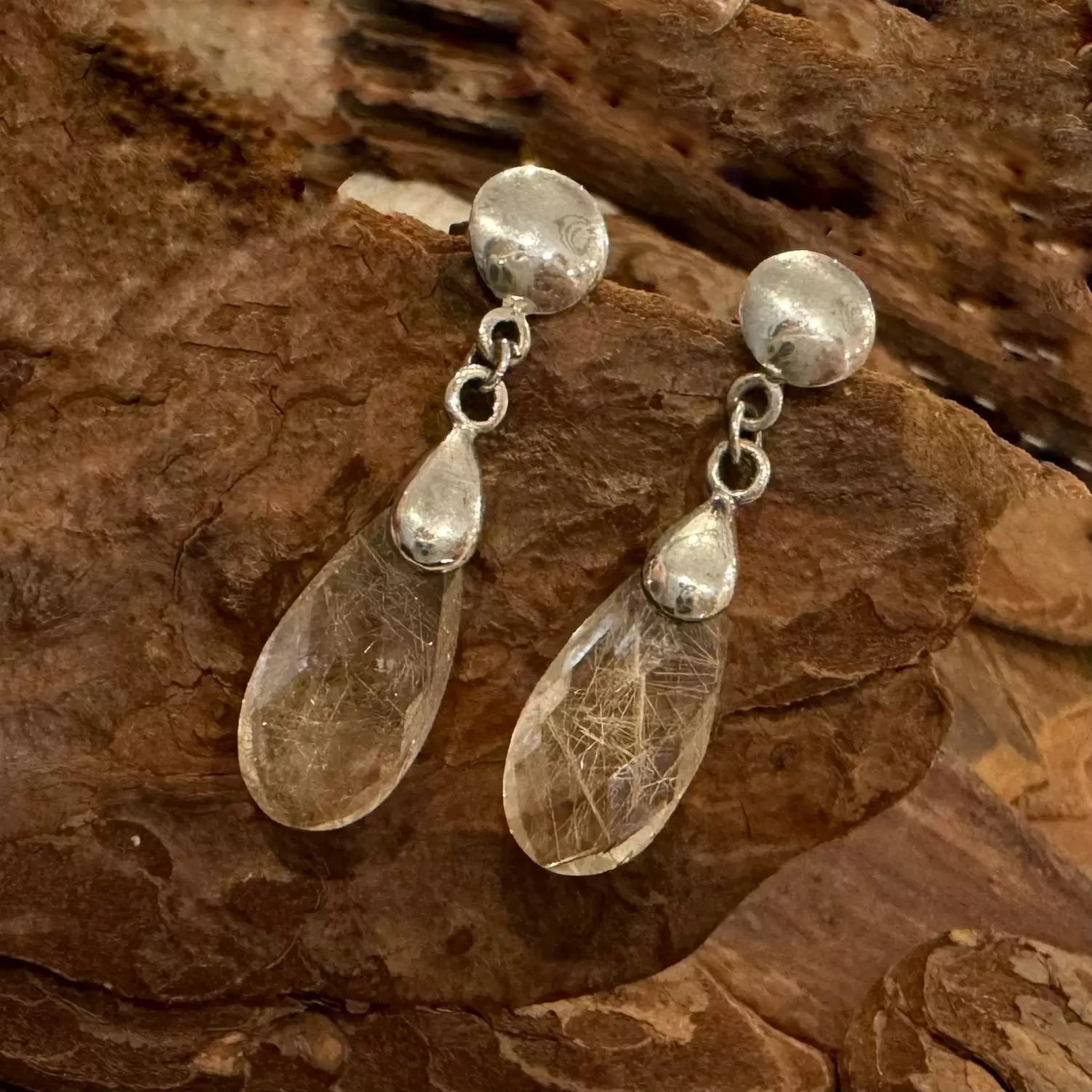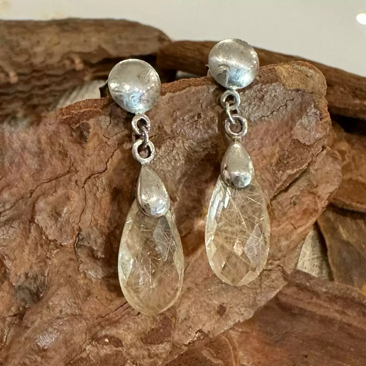 Brinco Gota de Quartzo Rutilado em Prata 925.