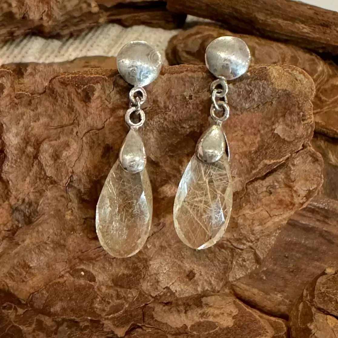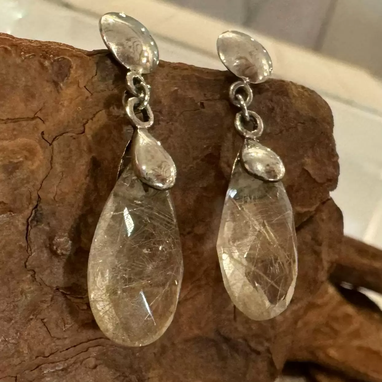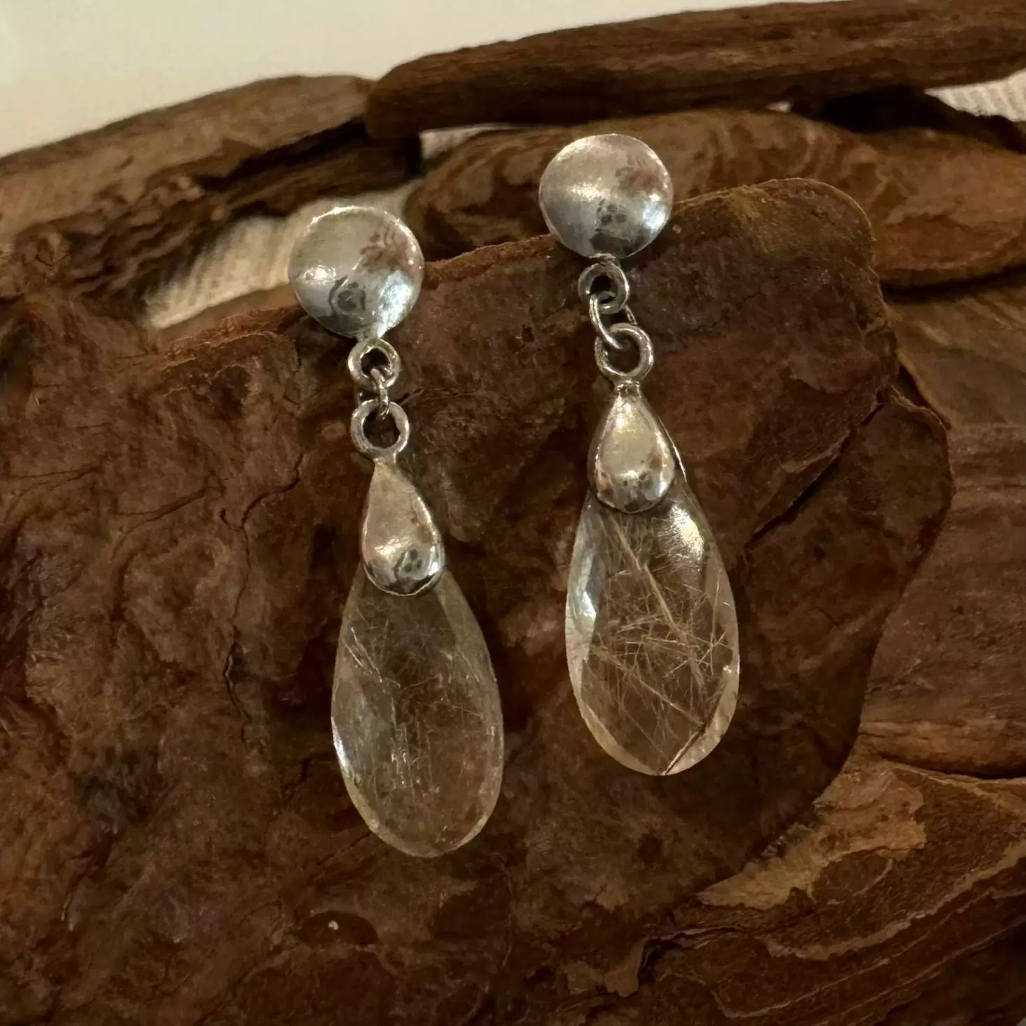 Brinco Gota de Quartzo Rutilado em Prata 925