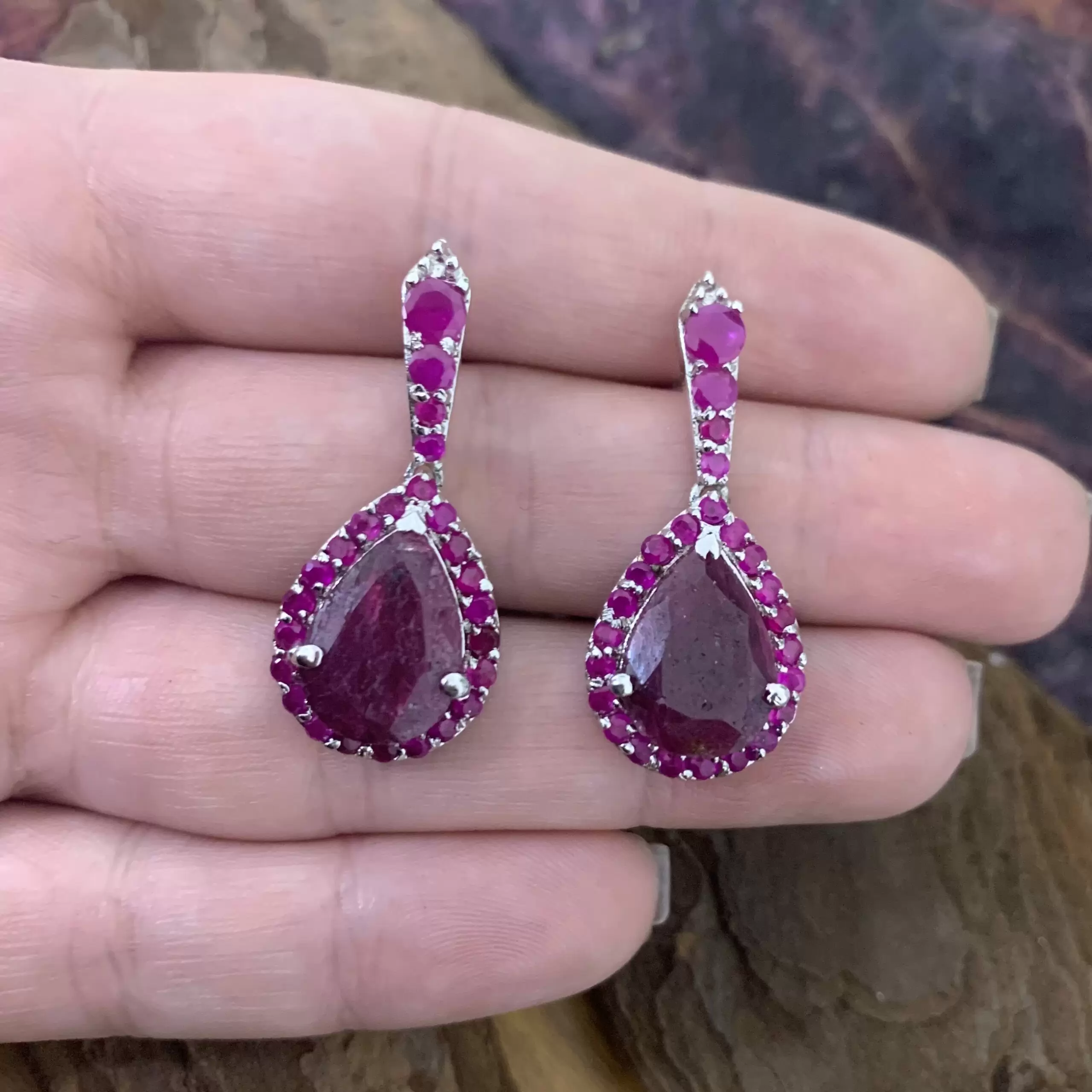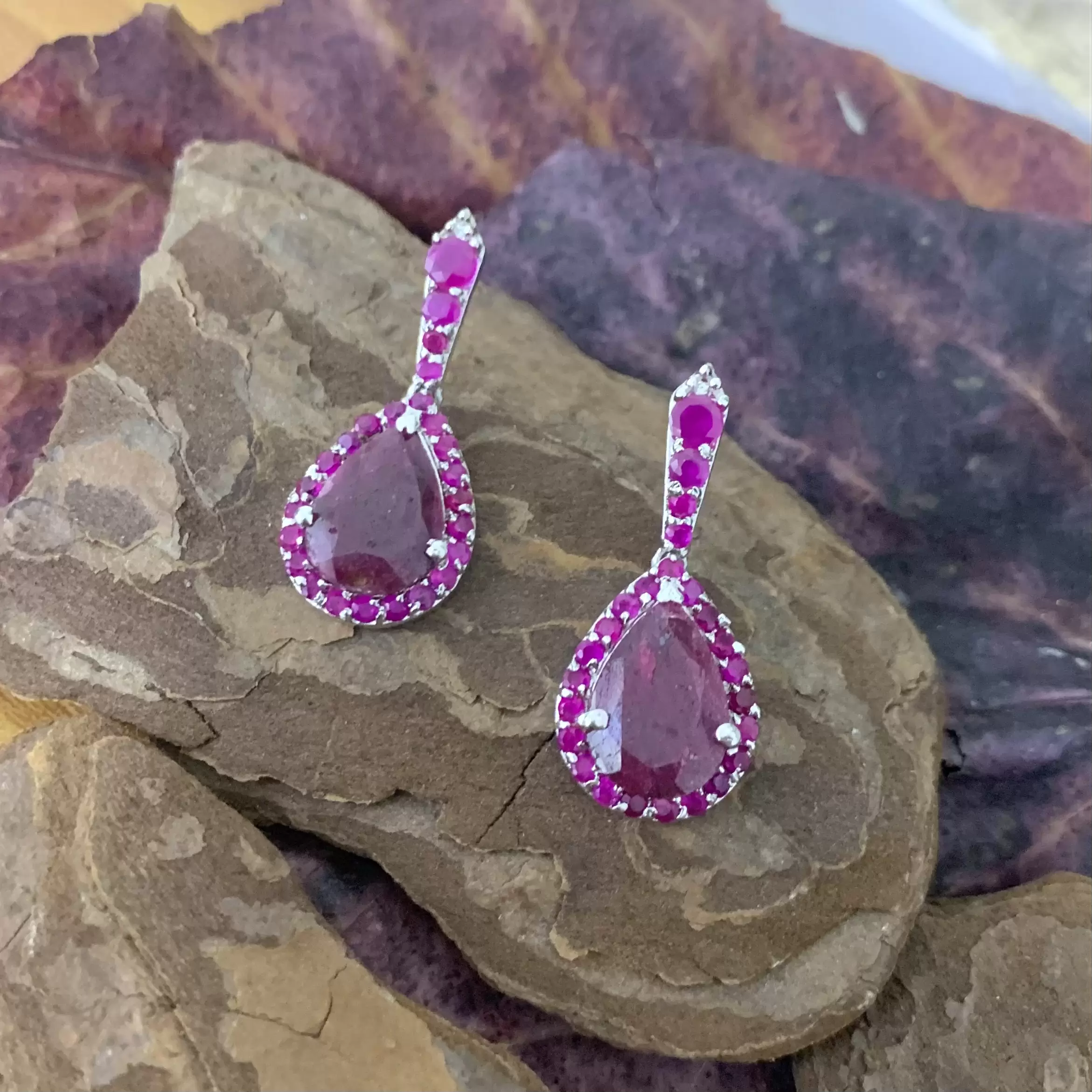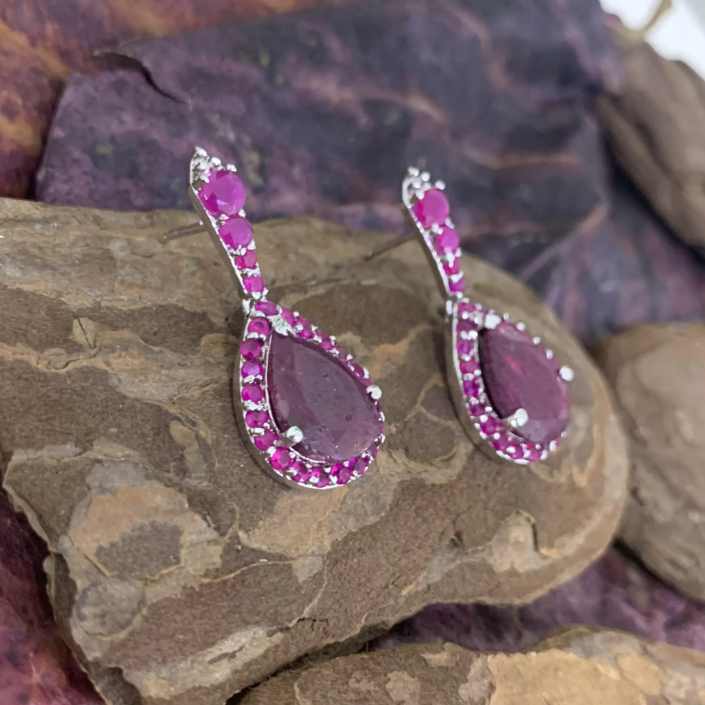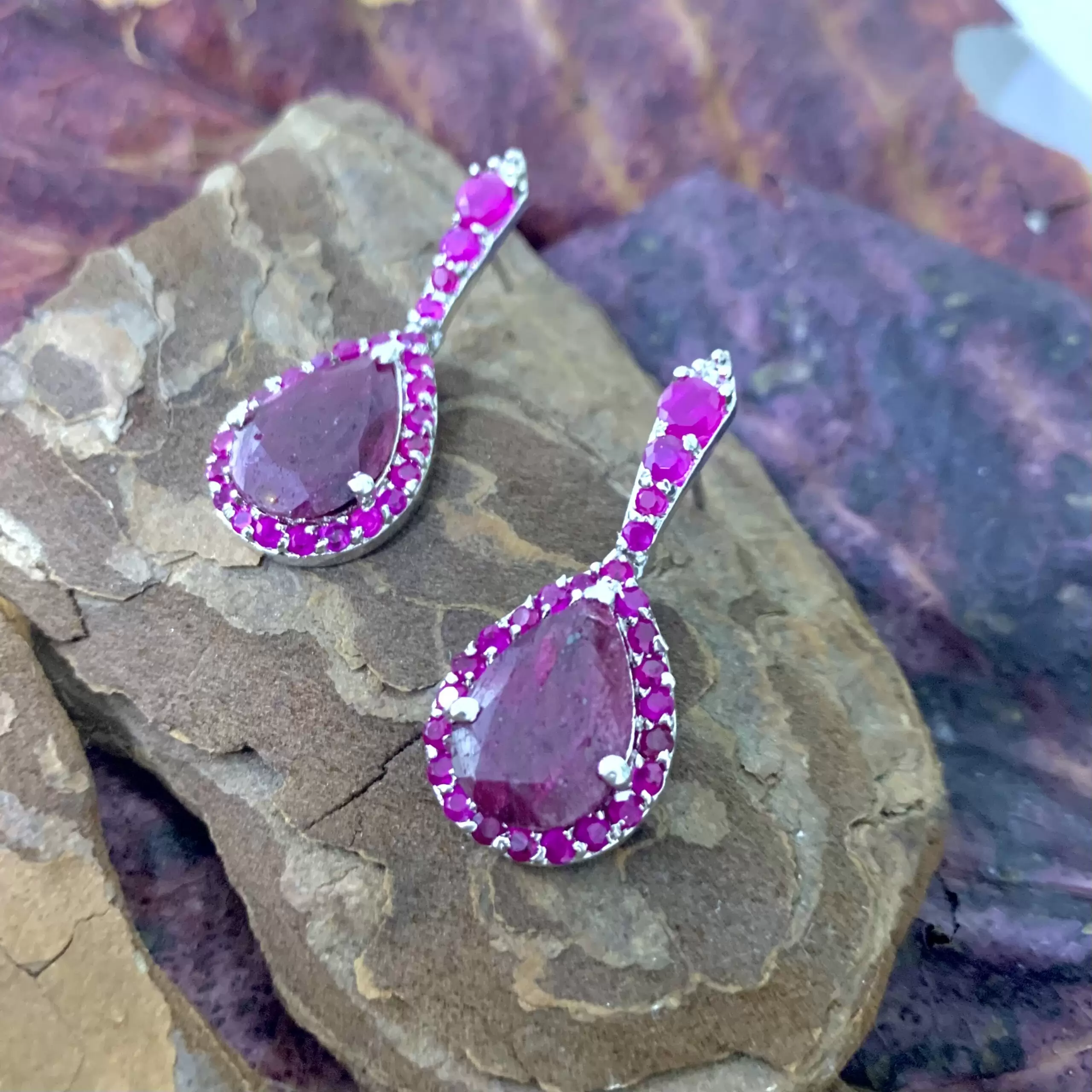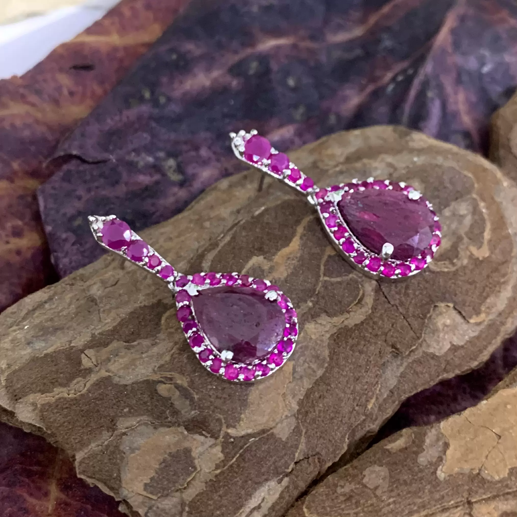 Brinco articulado de gota em Rubi Indiano feito em prata com banho de ródio.