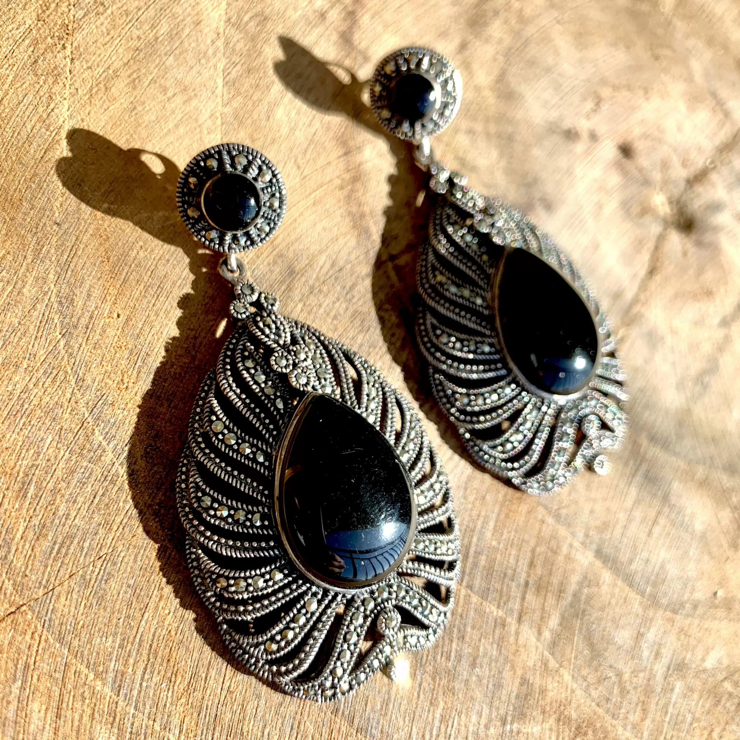 Brinco Pendurado Marcassita em Prata 925