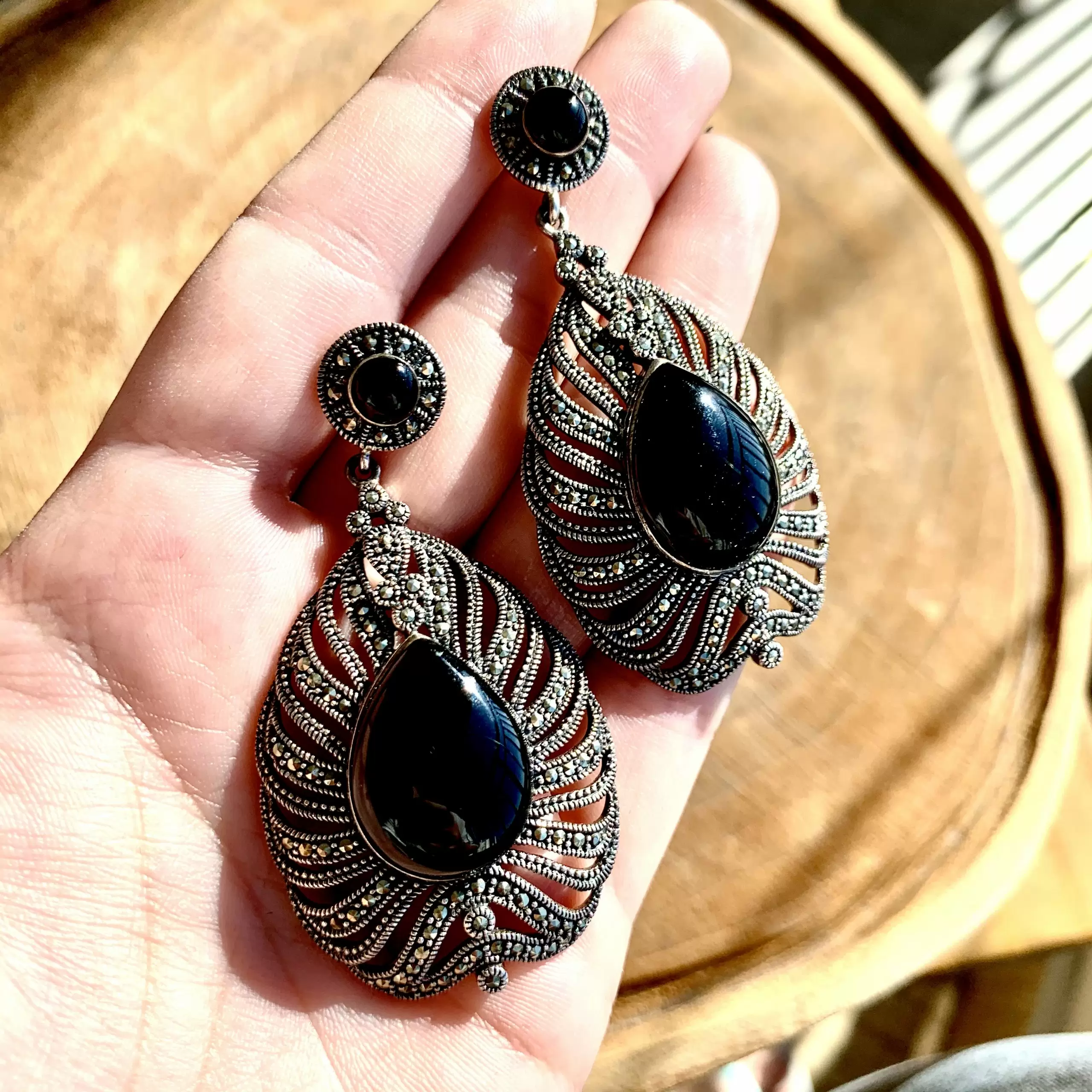 Brinco Grande Vazado em Marcassita e Prata 925