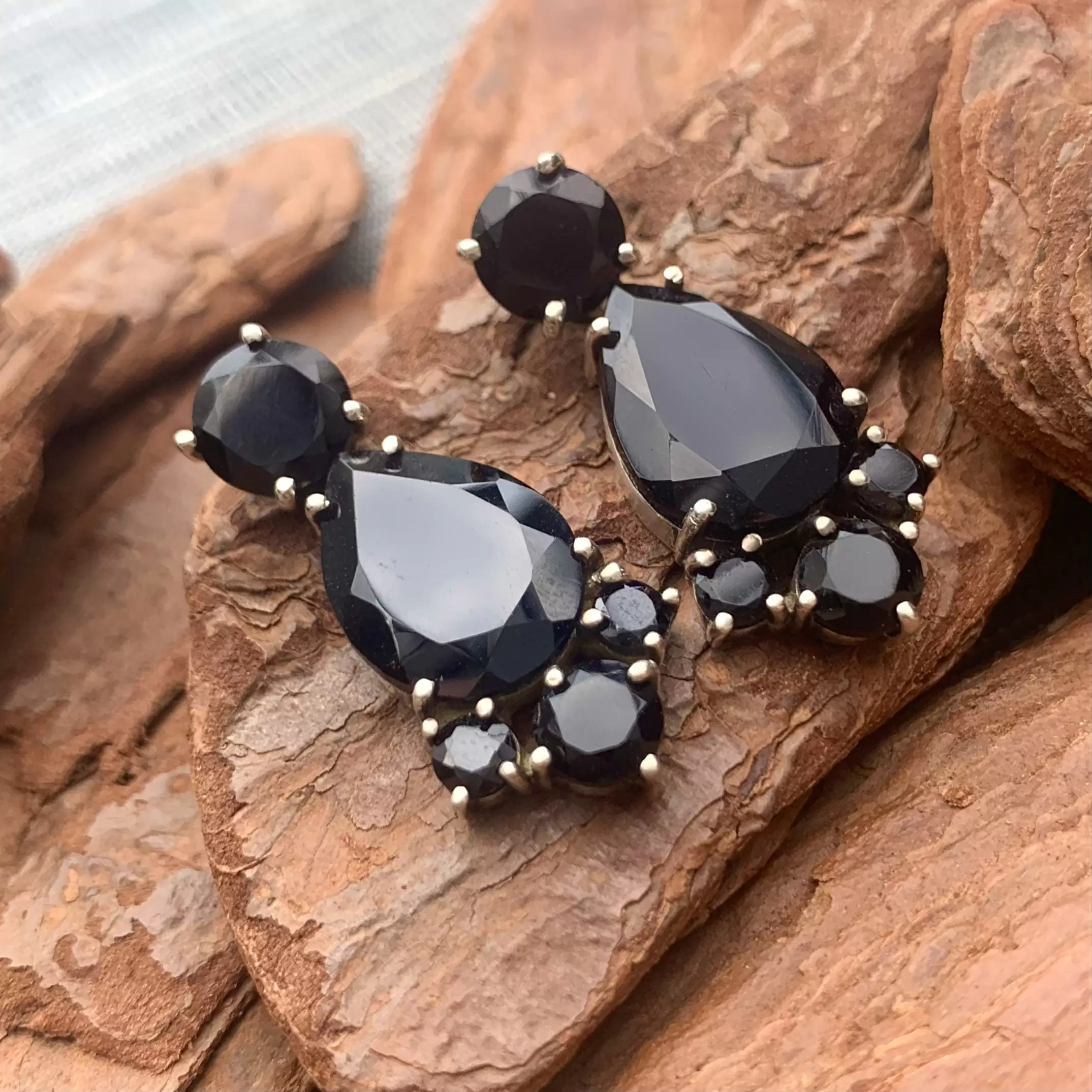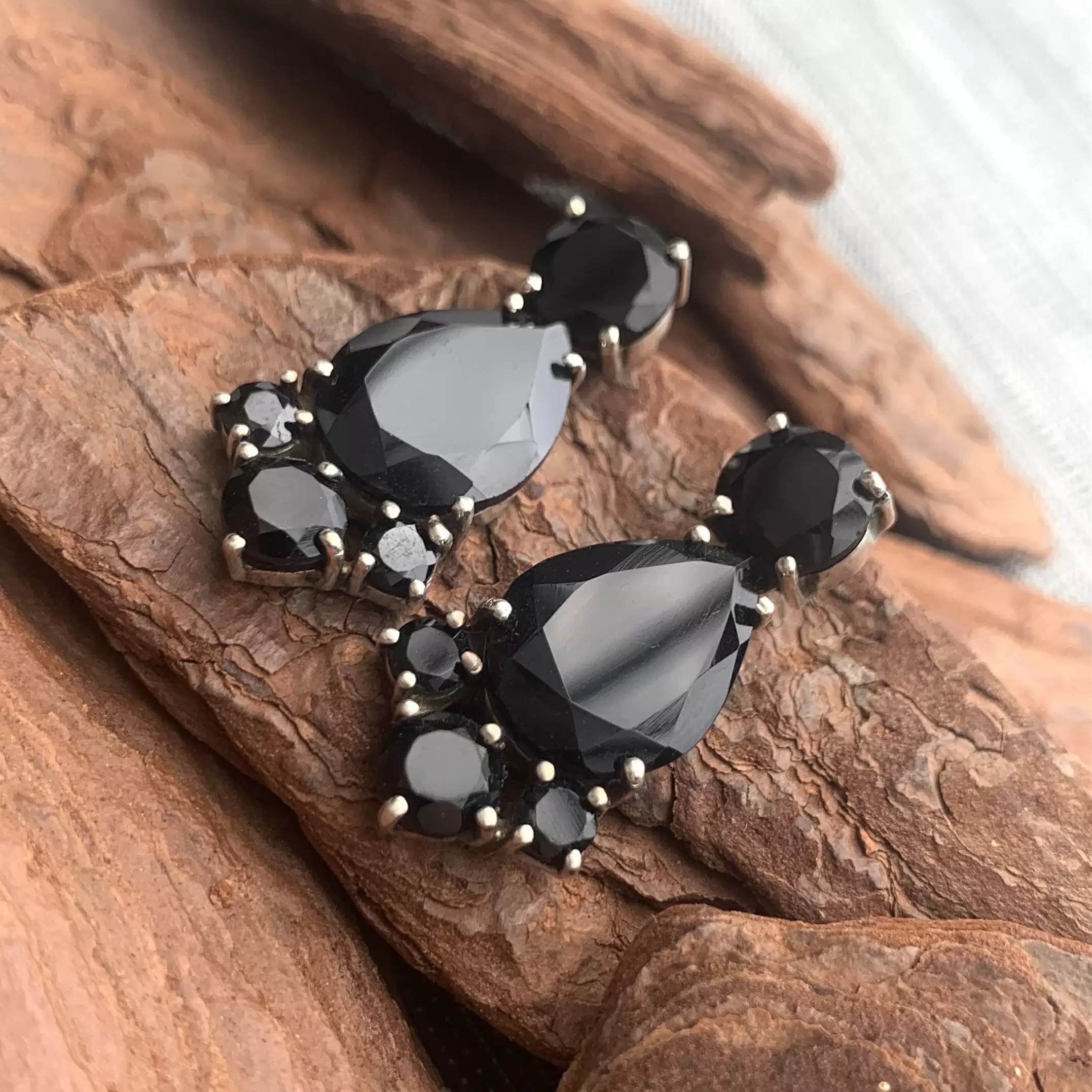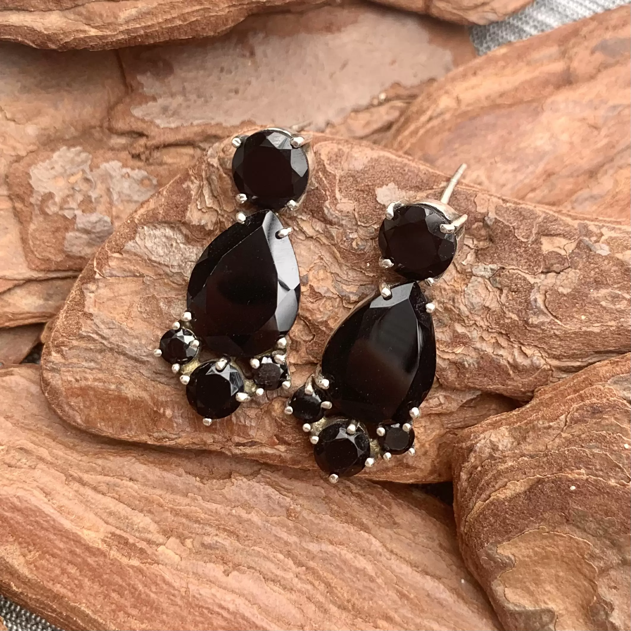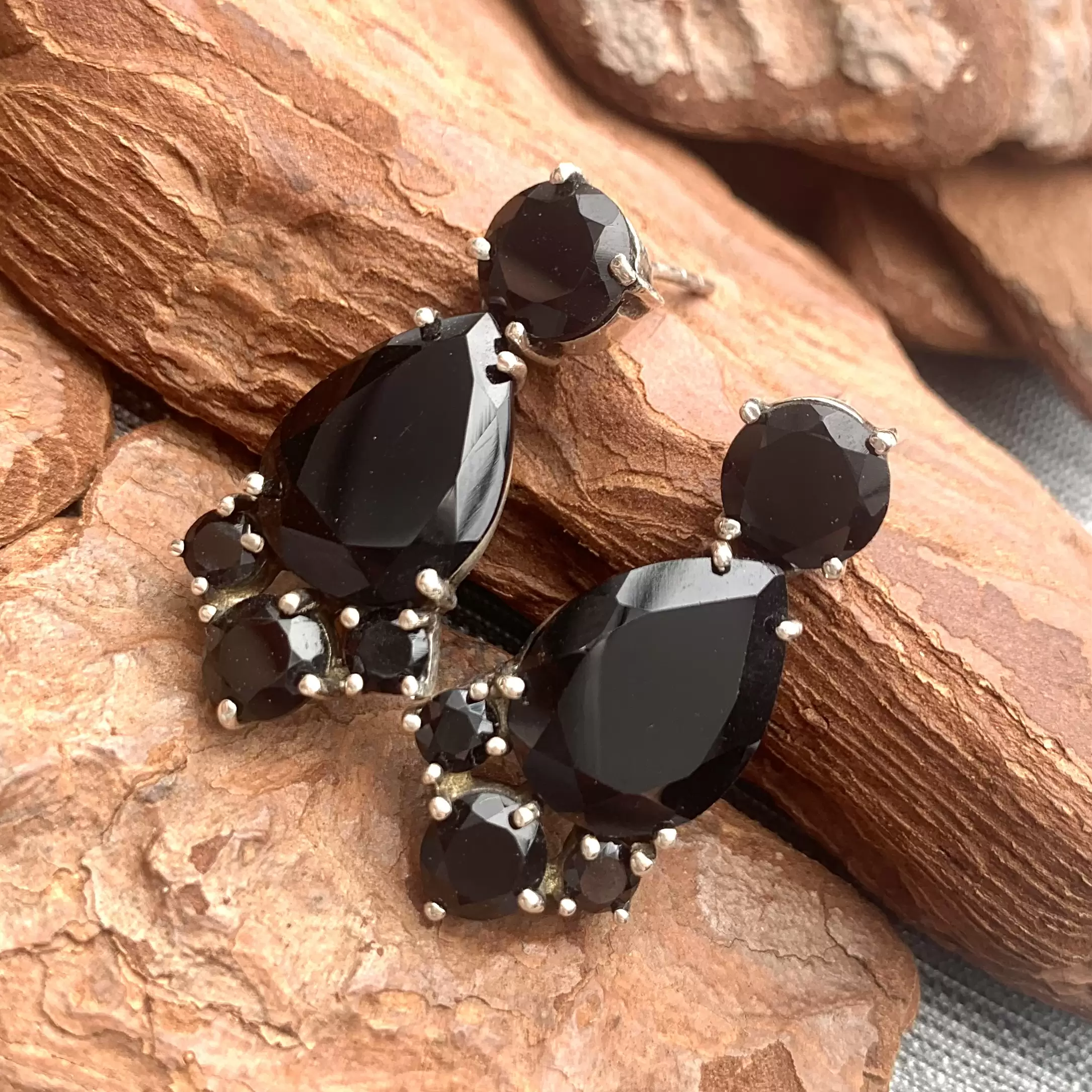 Brinco de Ônix em Prata 925.