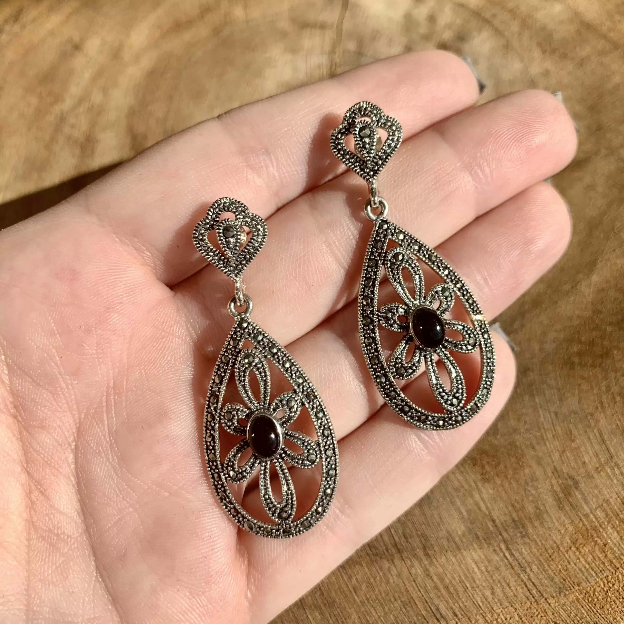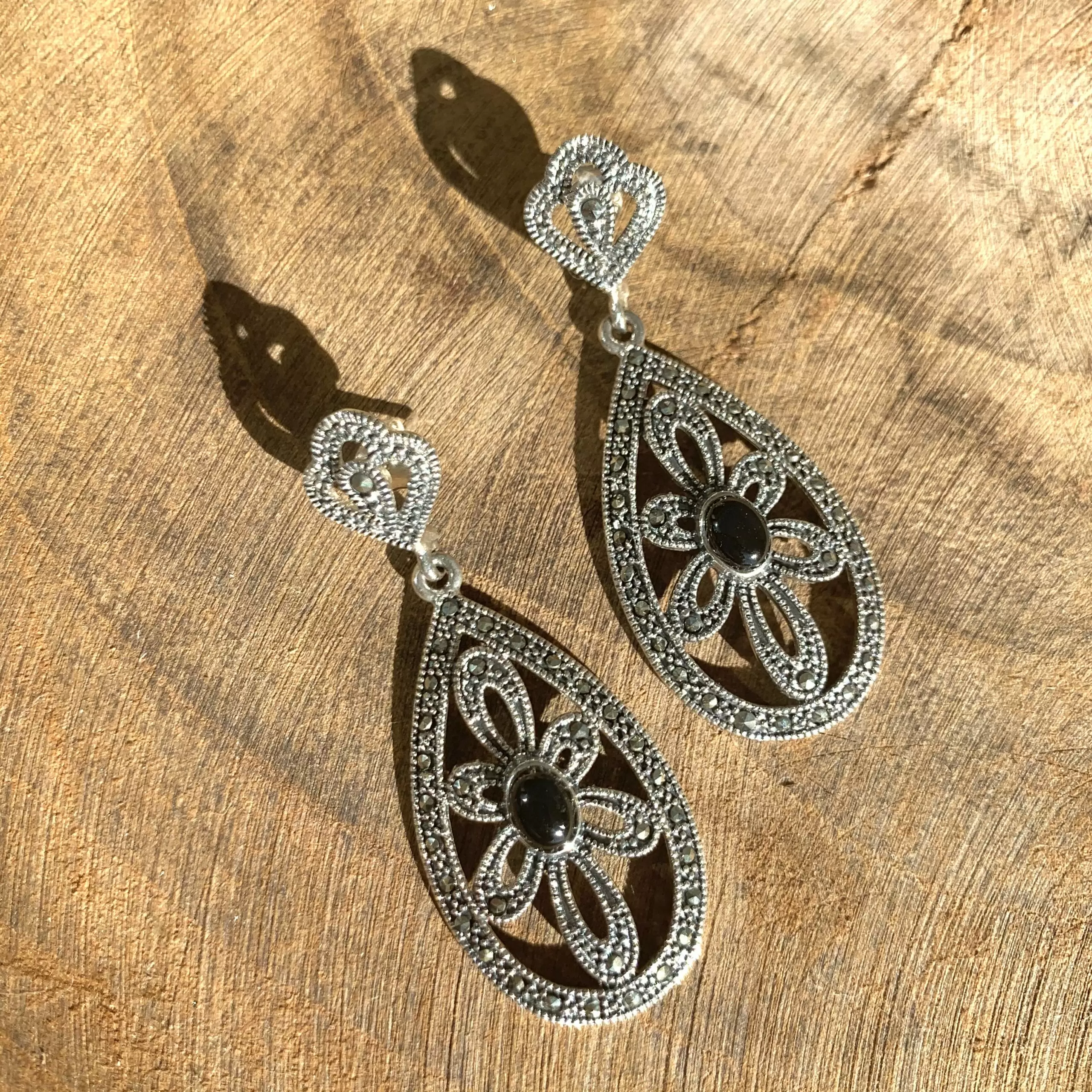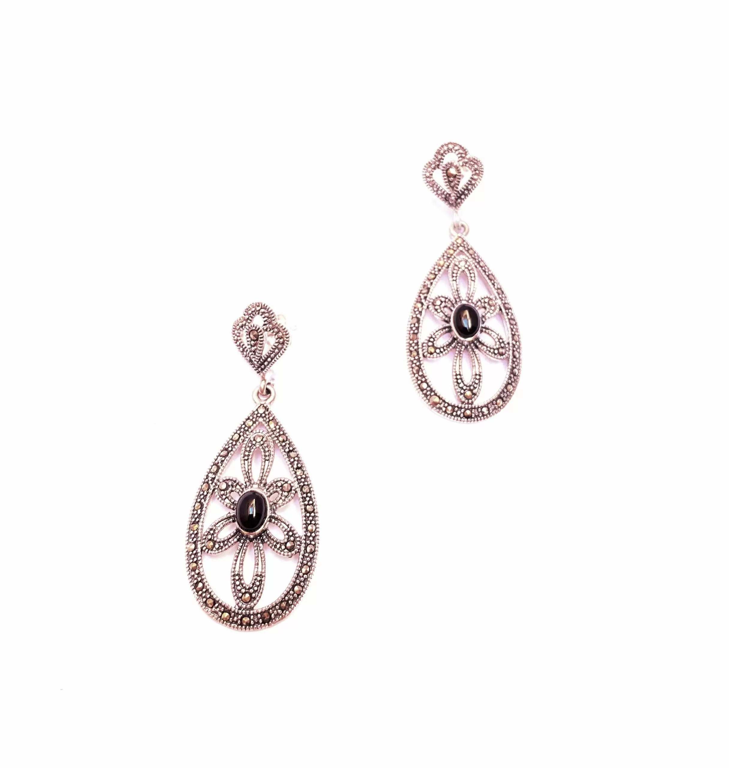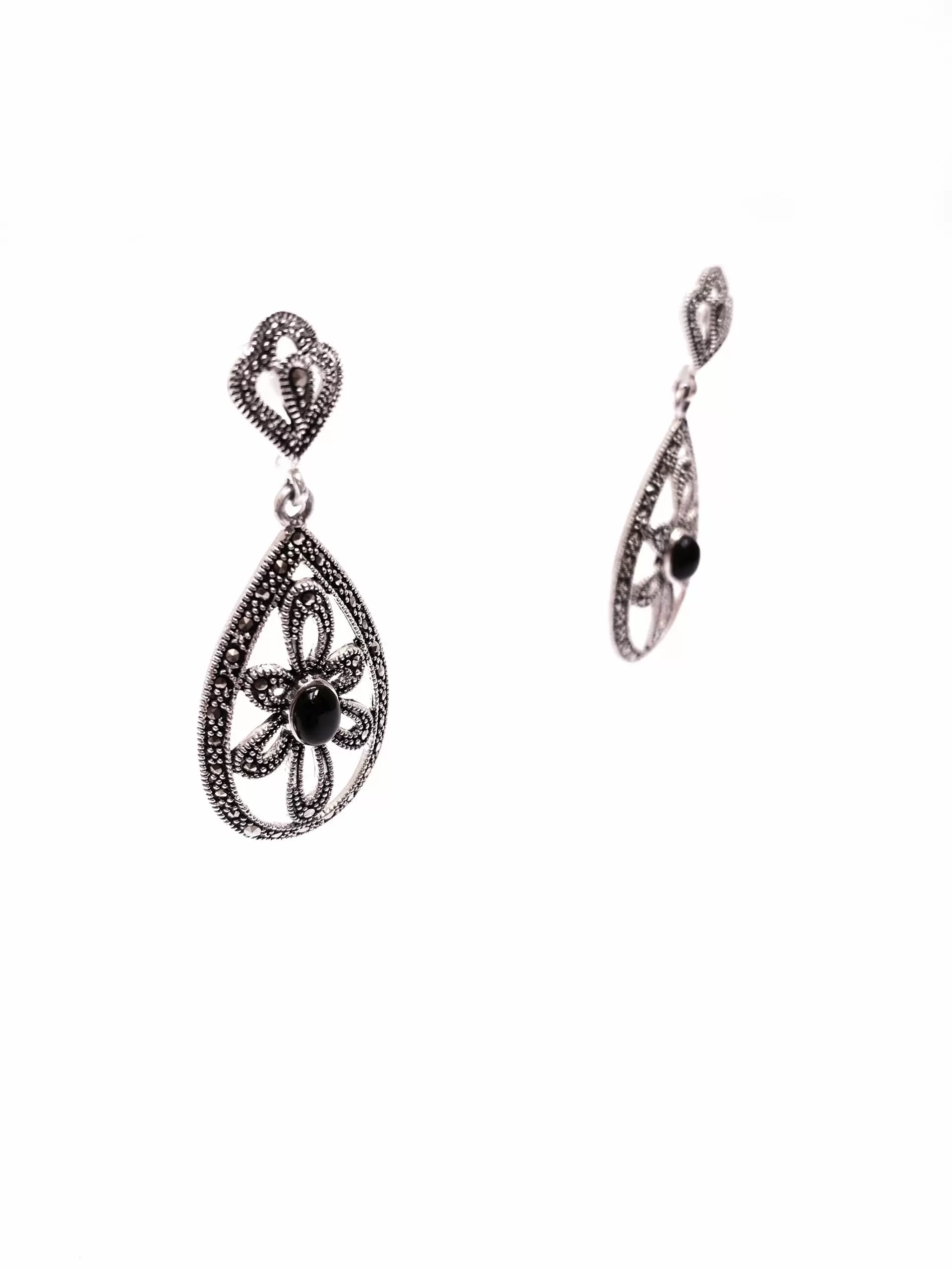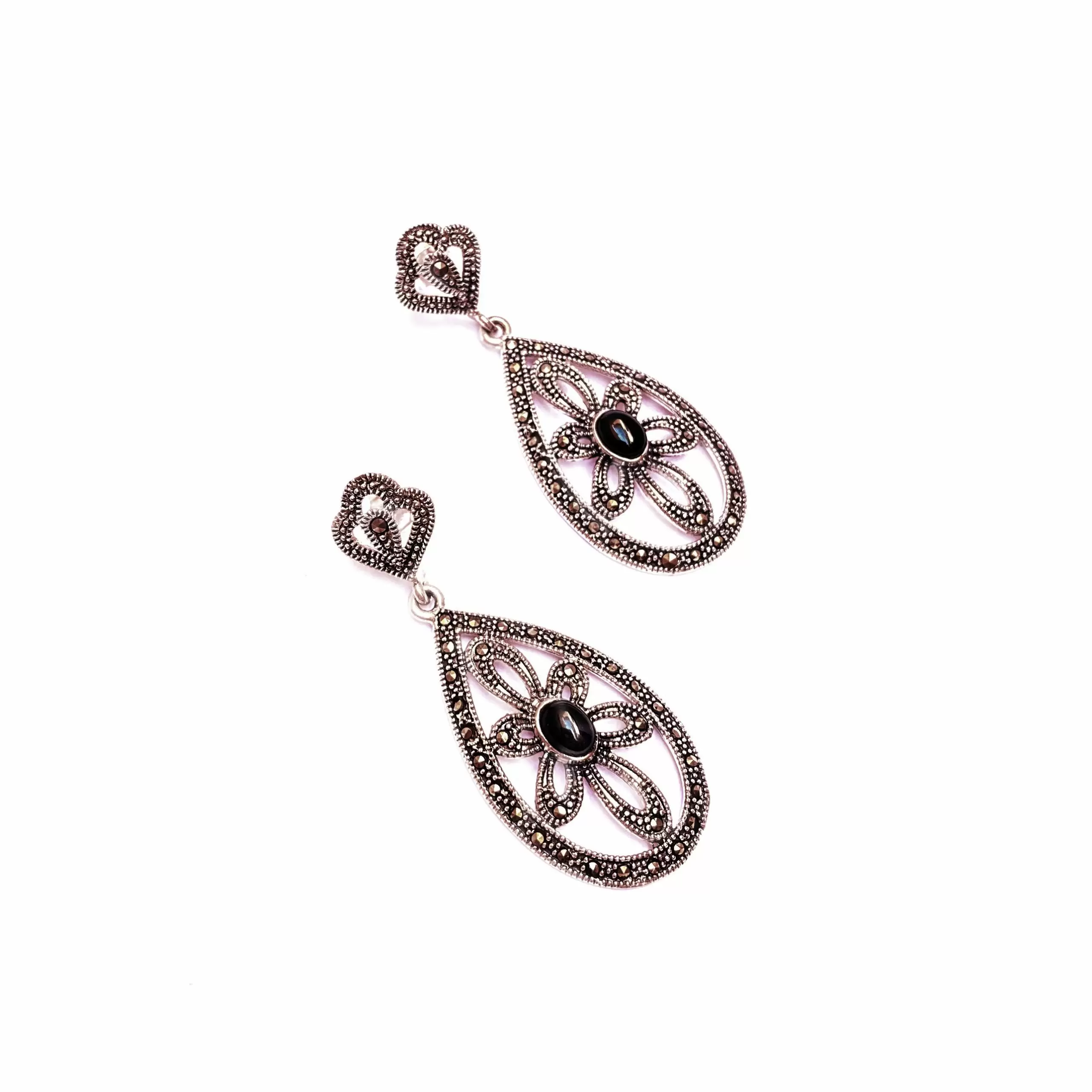 Início Feminino Brinco Marcassita Brinco Marcassita Vazado Onix em Prata 925