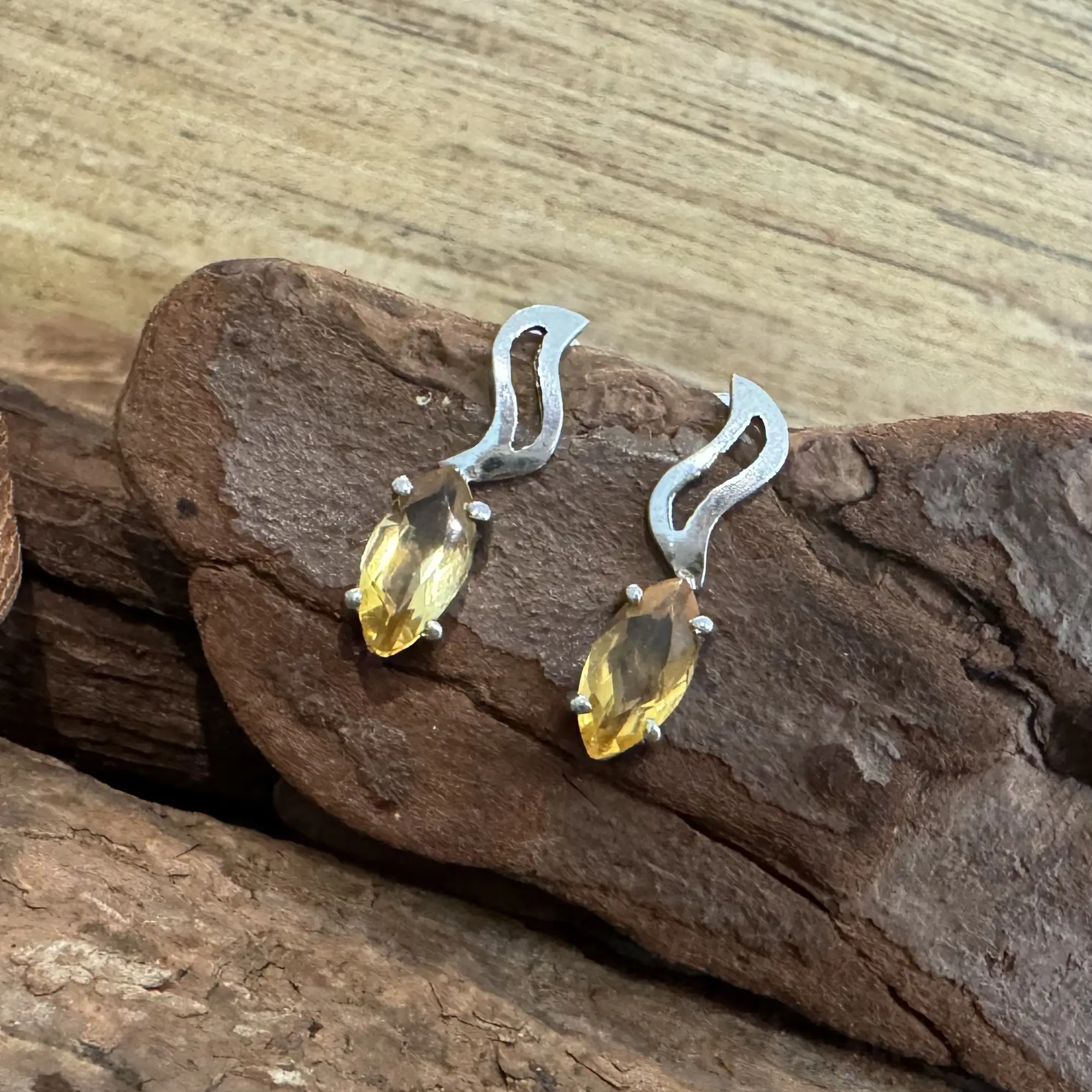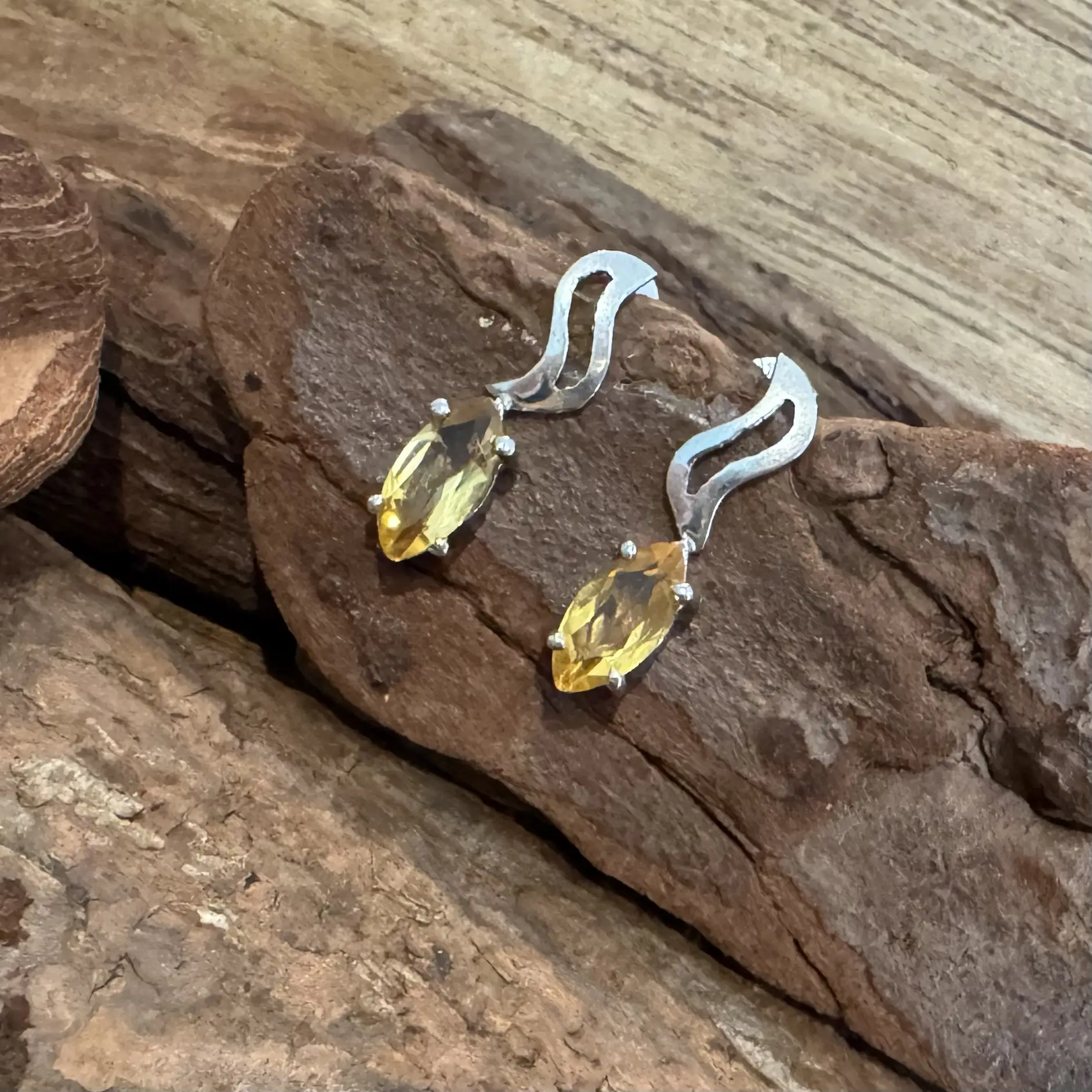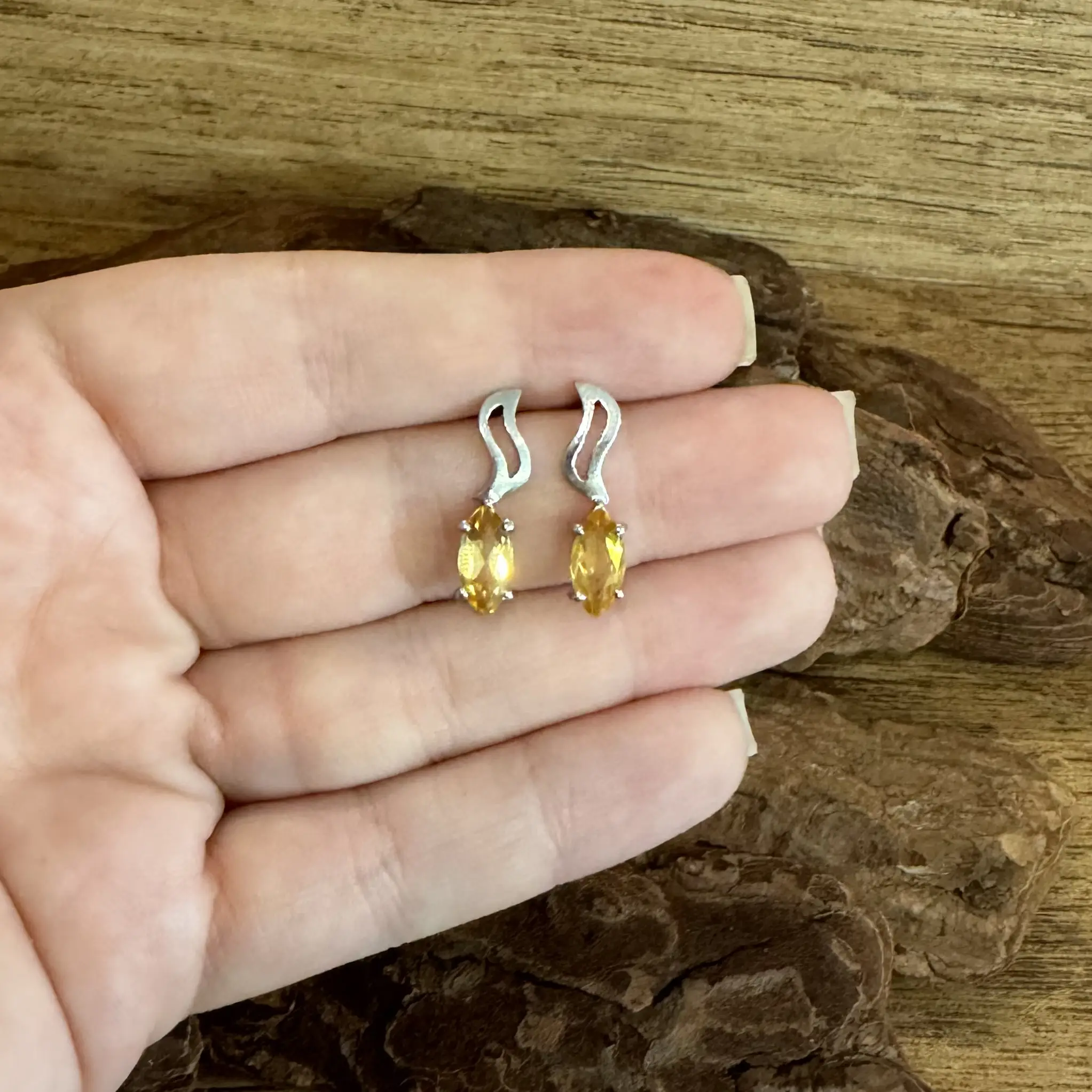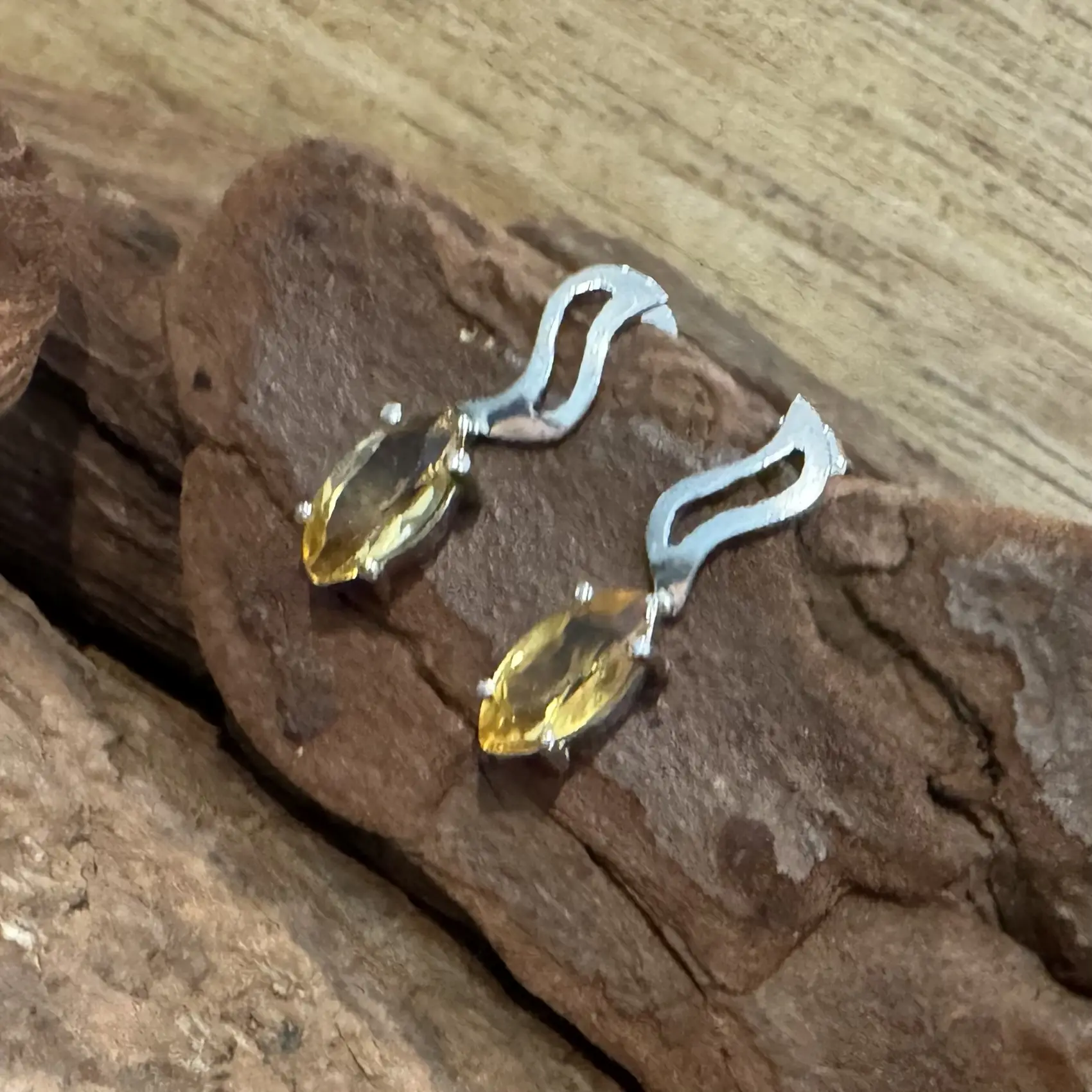 Brinco Navete de Citrino em Prata 925 com Ródio.