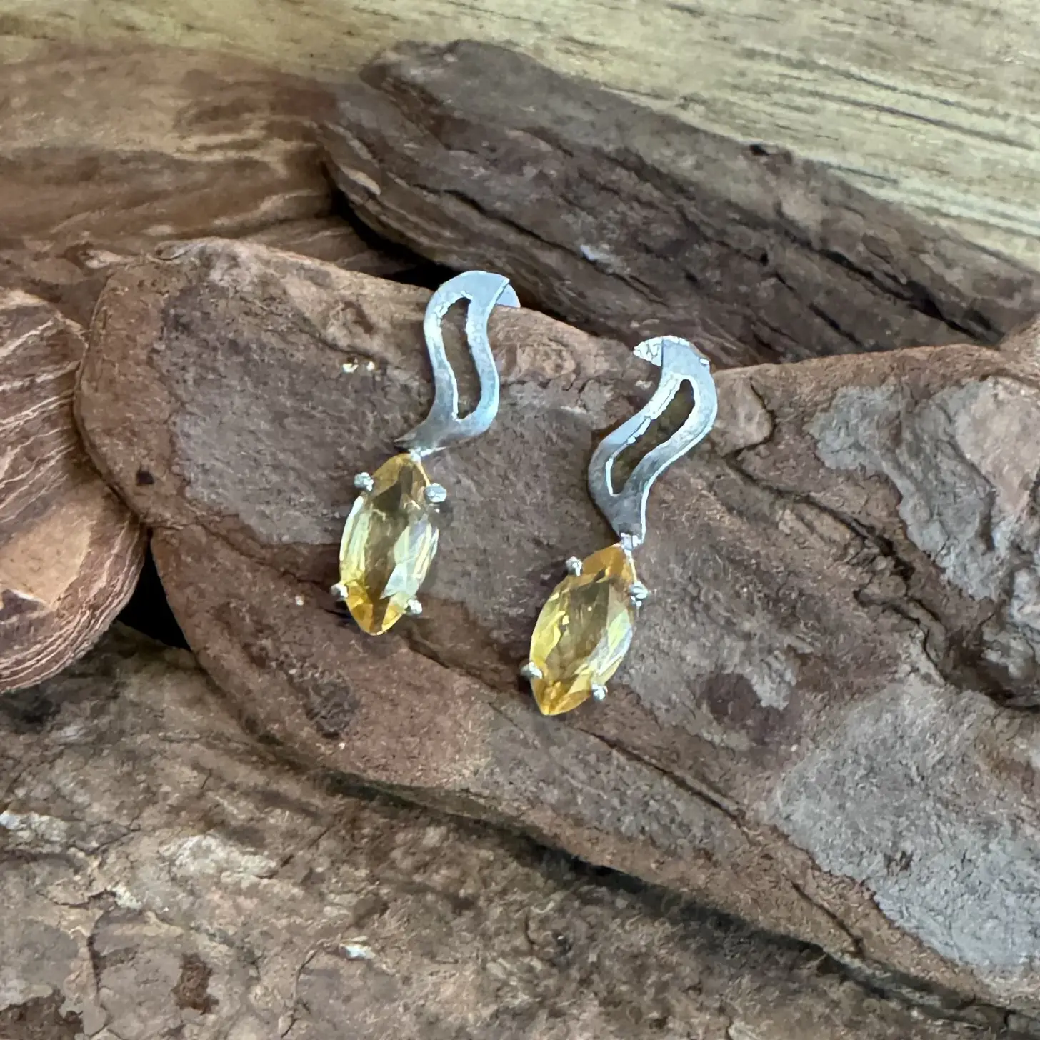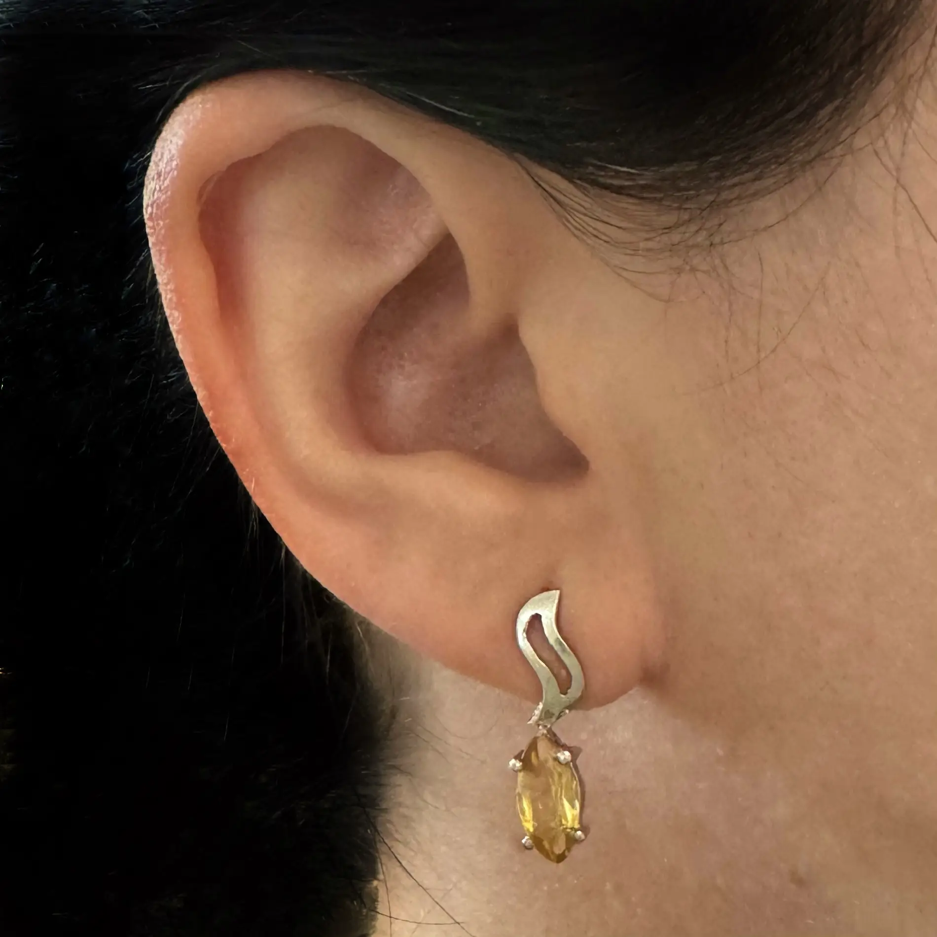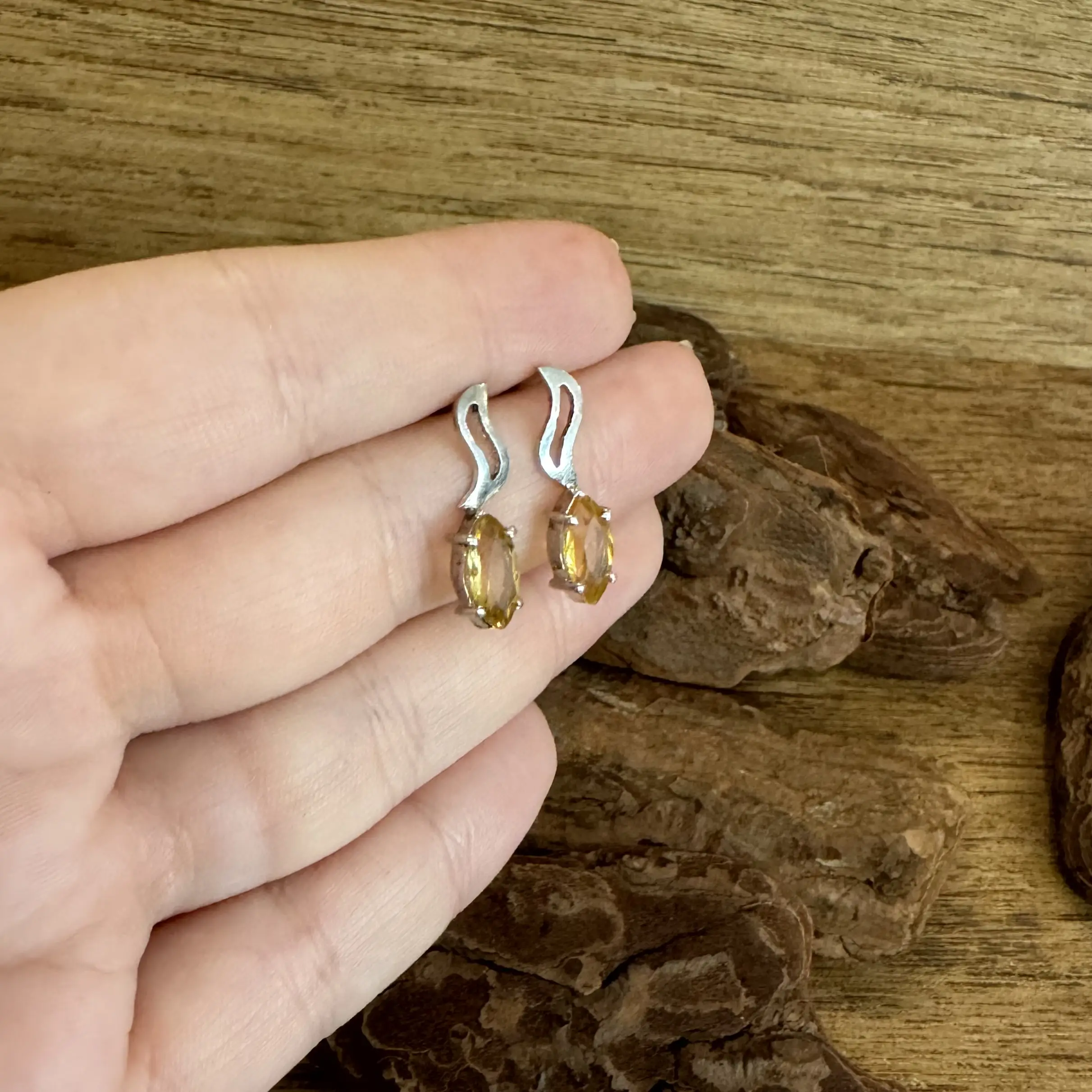 Brinco Navete de Citrino em Prata 925 com Ródio.