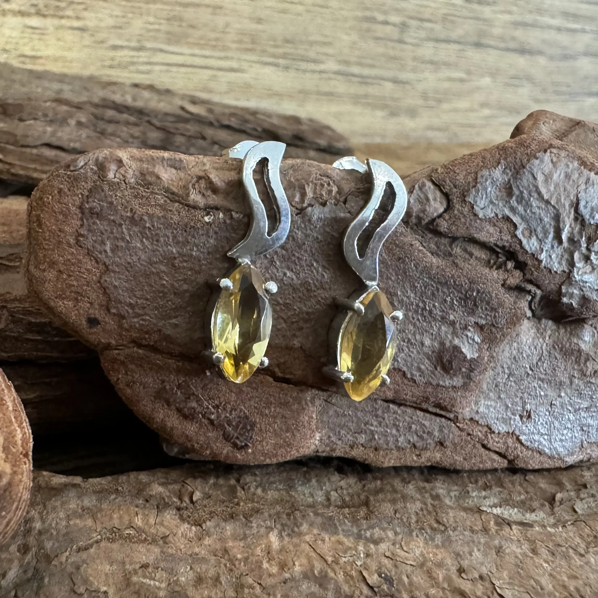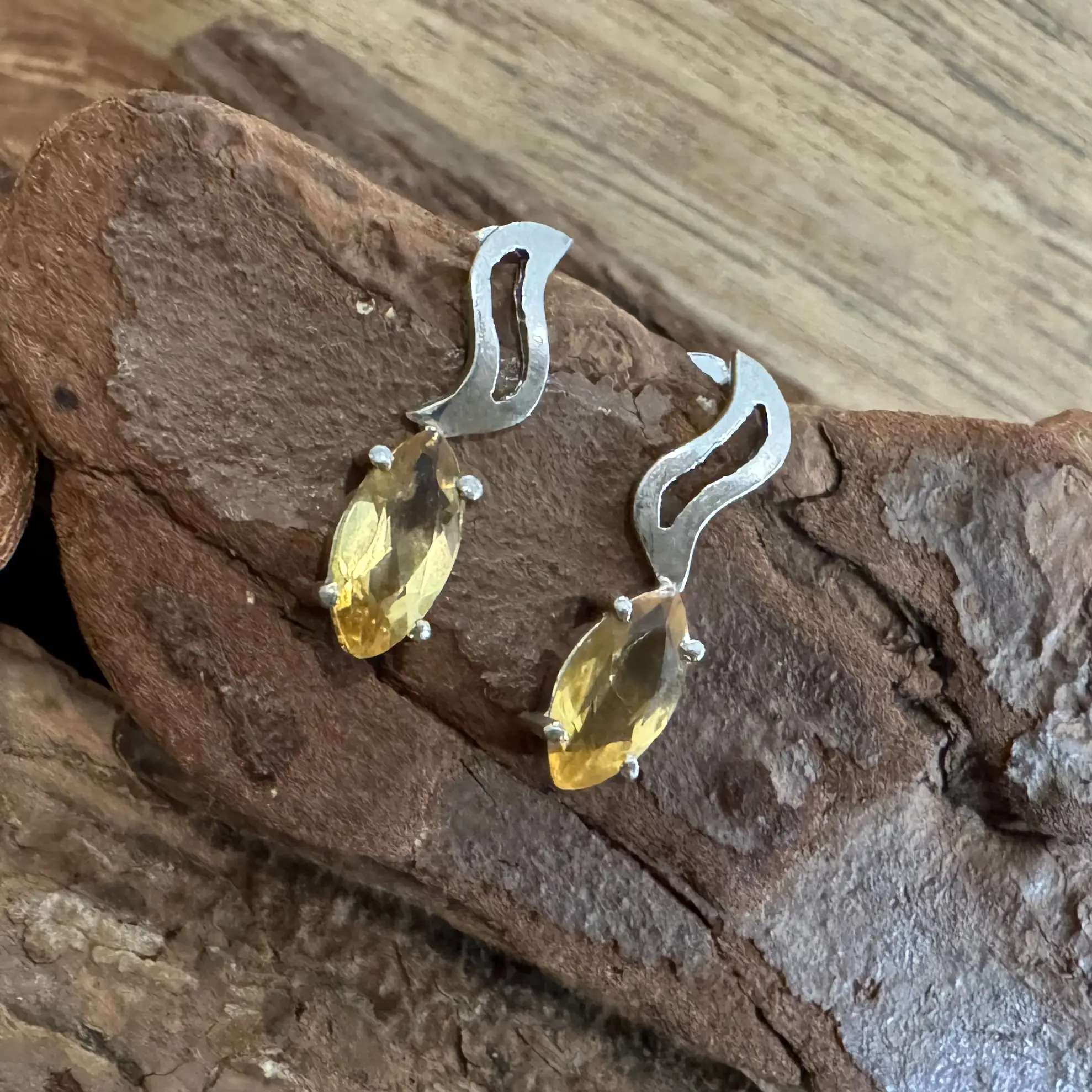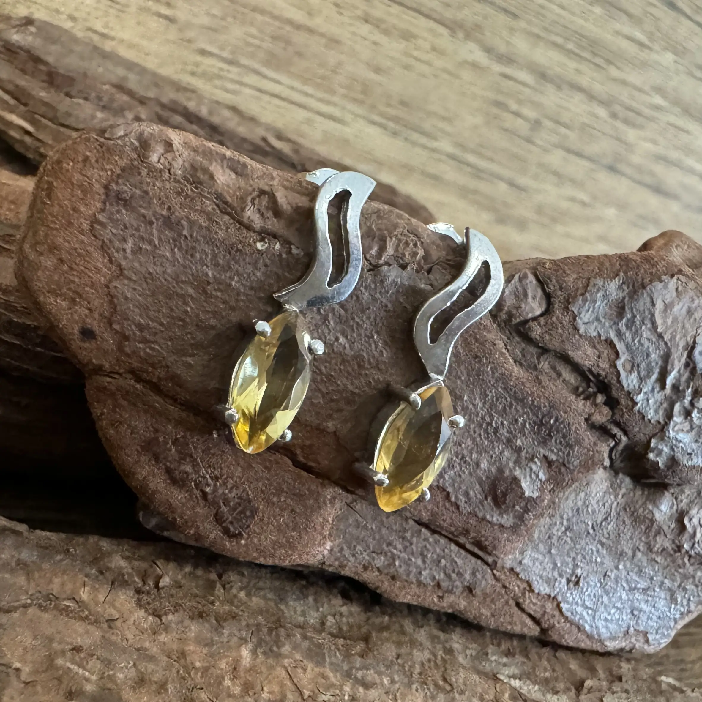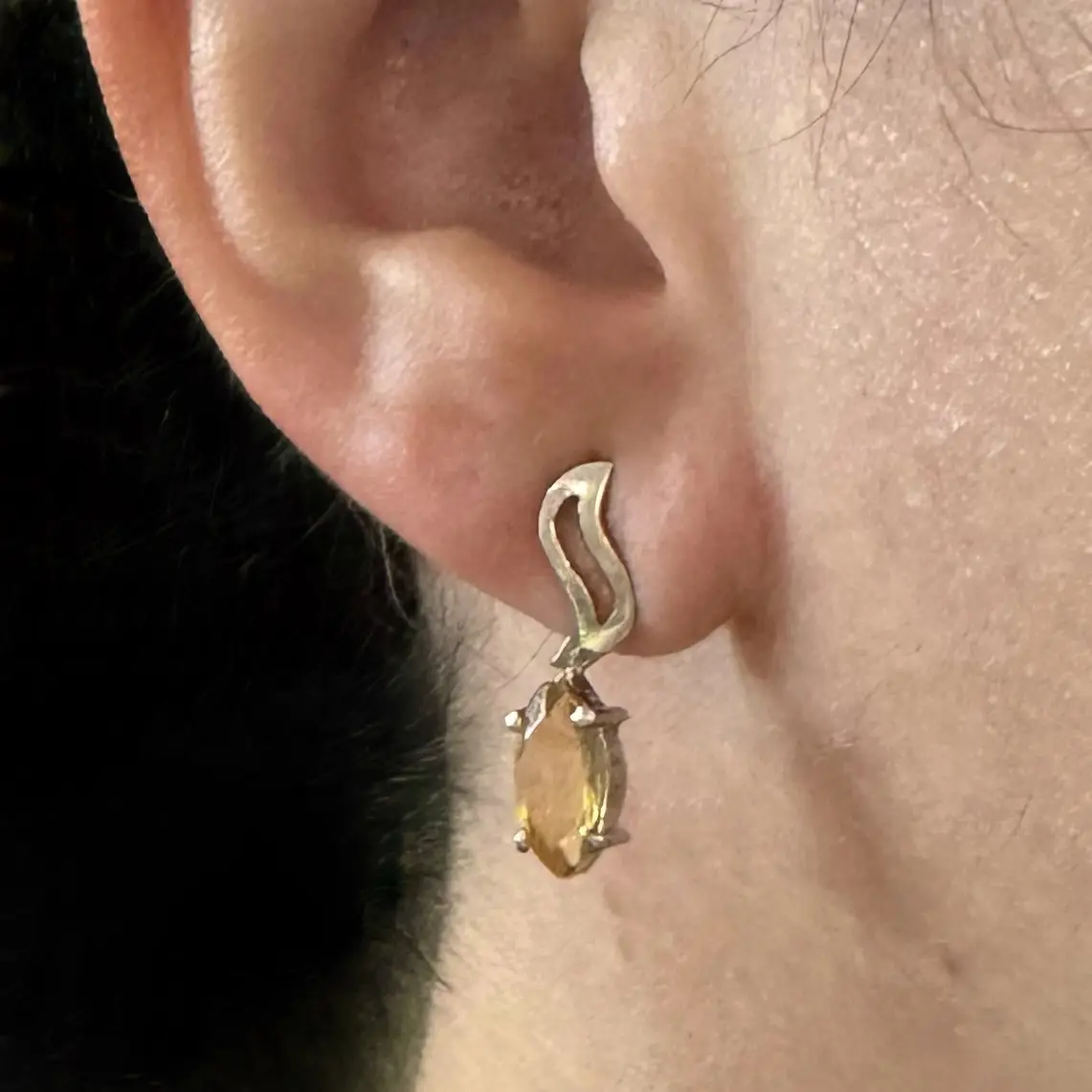 Brinco Navete de Citrino em Prata 925 com Ródio.