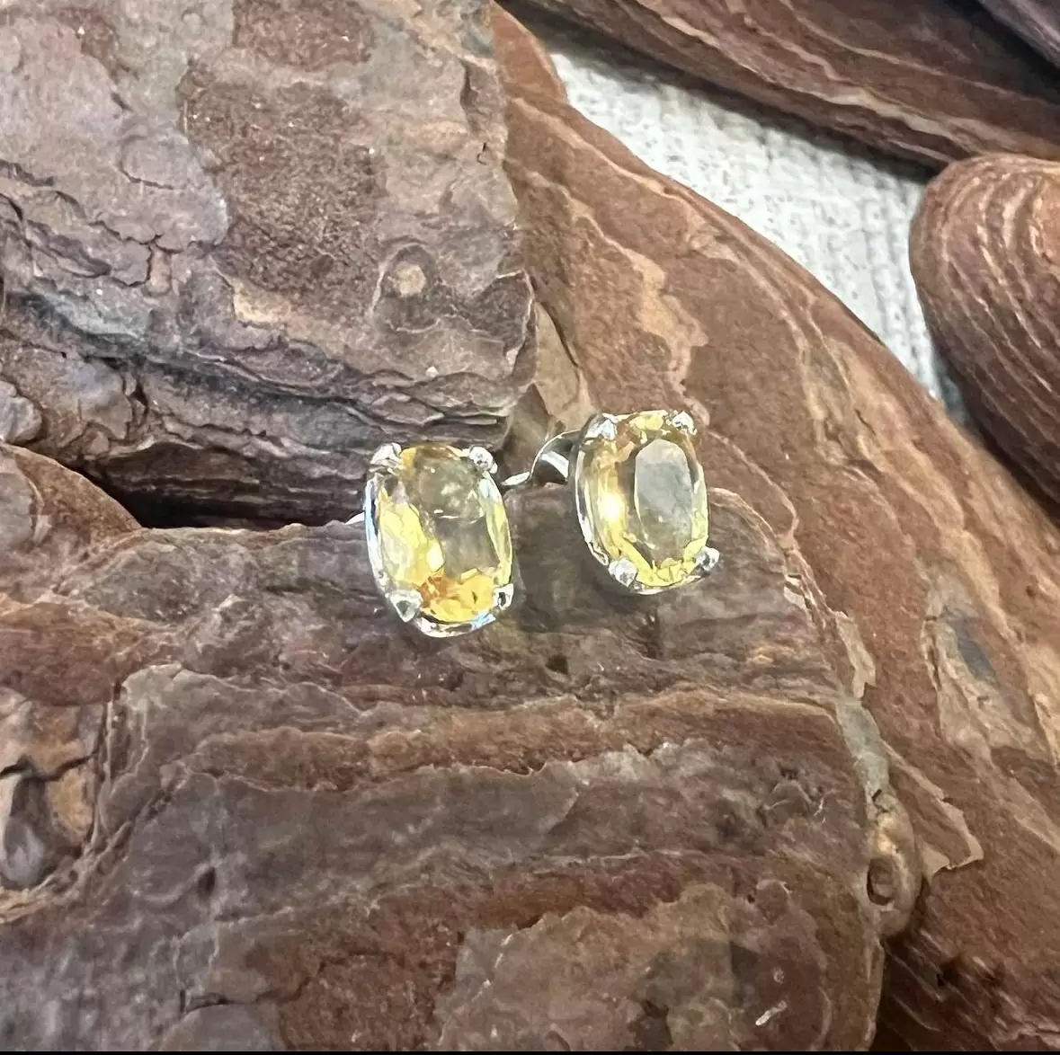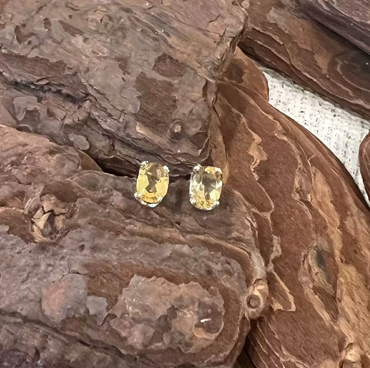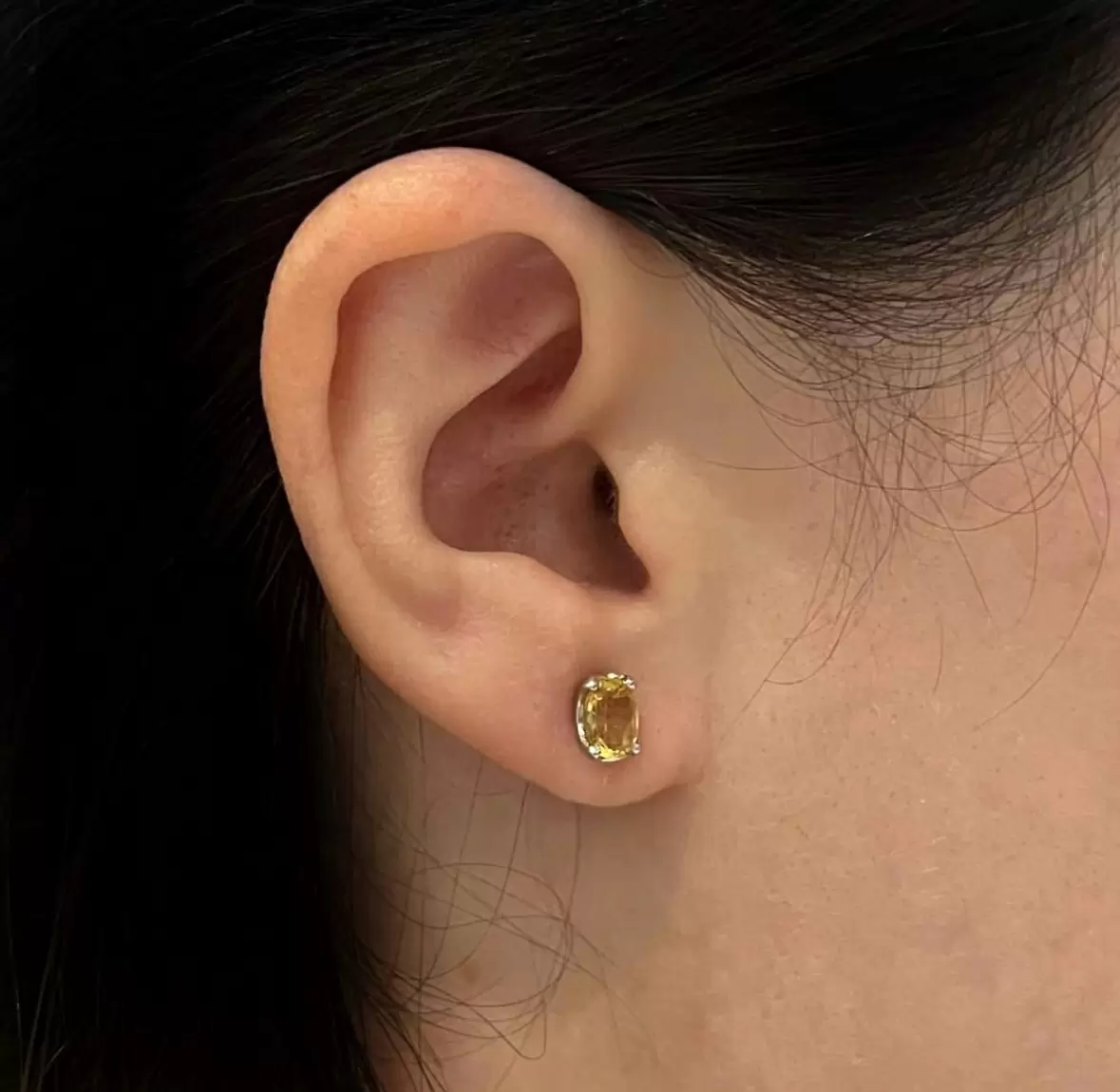 Brinco Oval de Citrino em Prata 925 com Ródio.