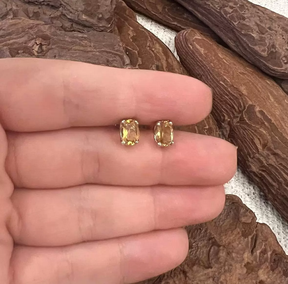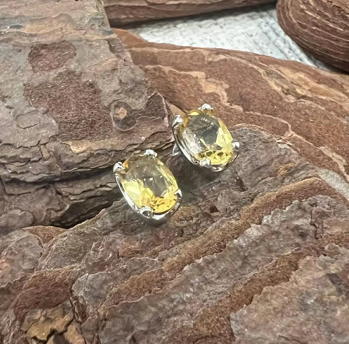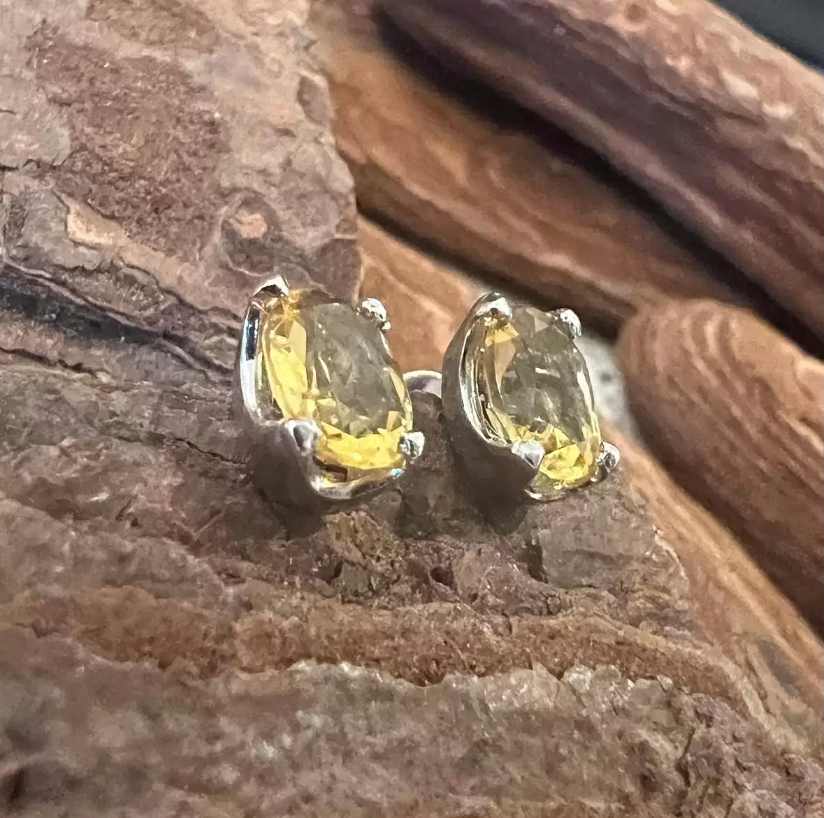 Brinco Oval de Citrino em Prata 925 com Ródio.