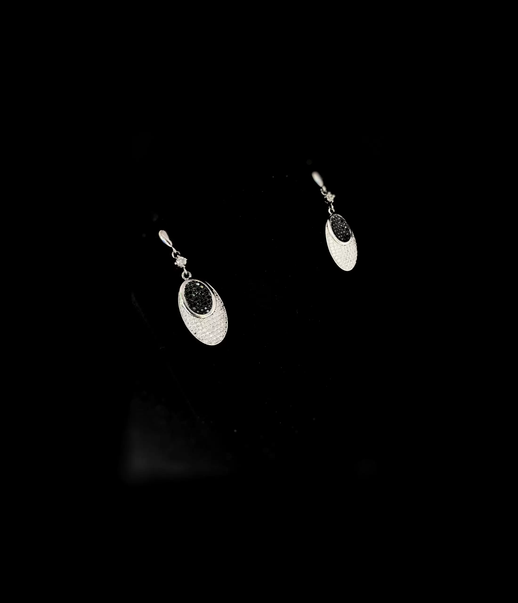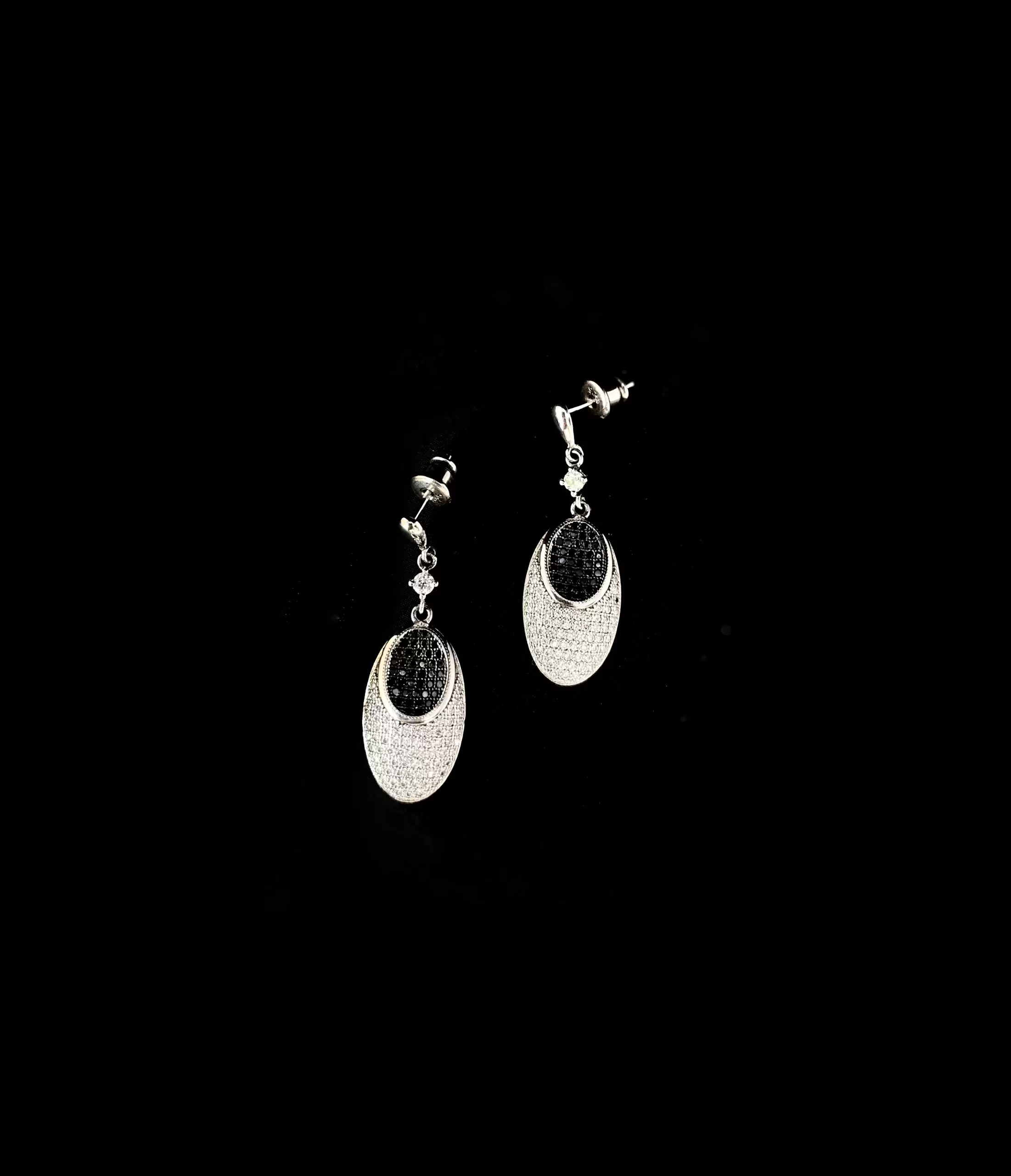 Brinco Oval de Zircônias Brancas e Negras em Prata 925 e Ródio