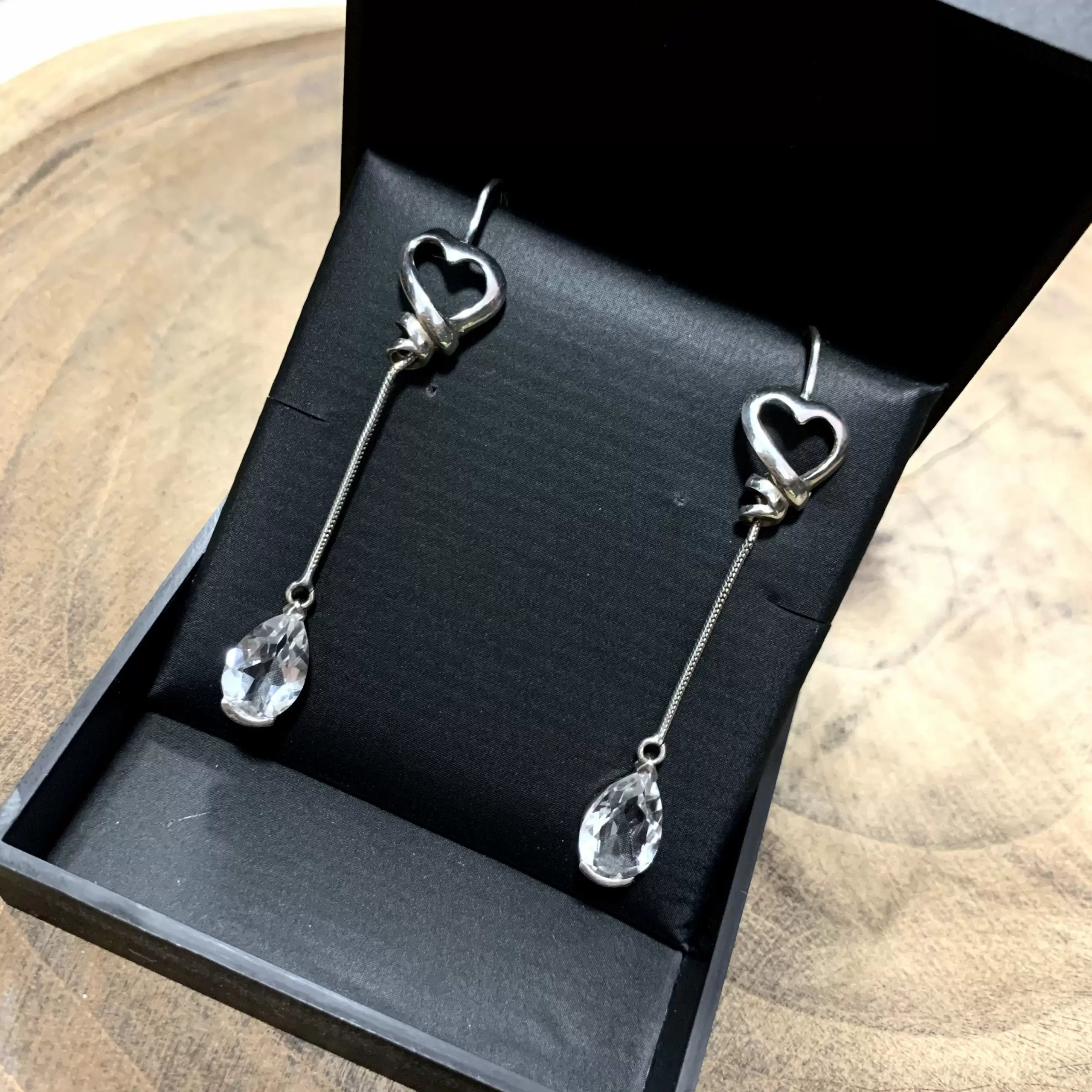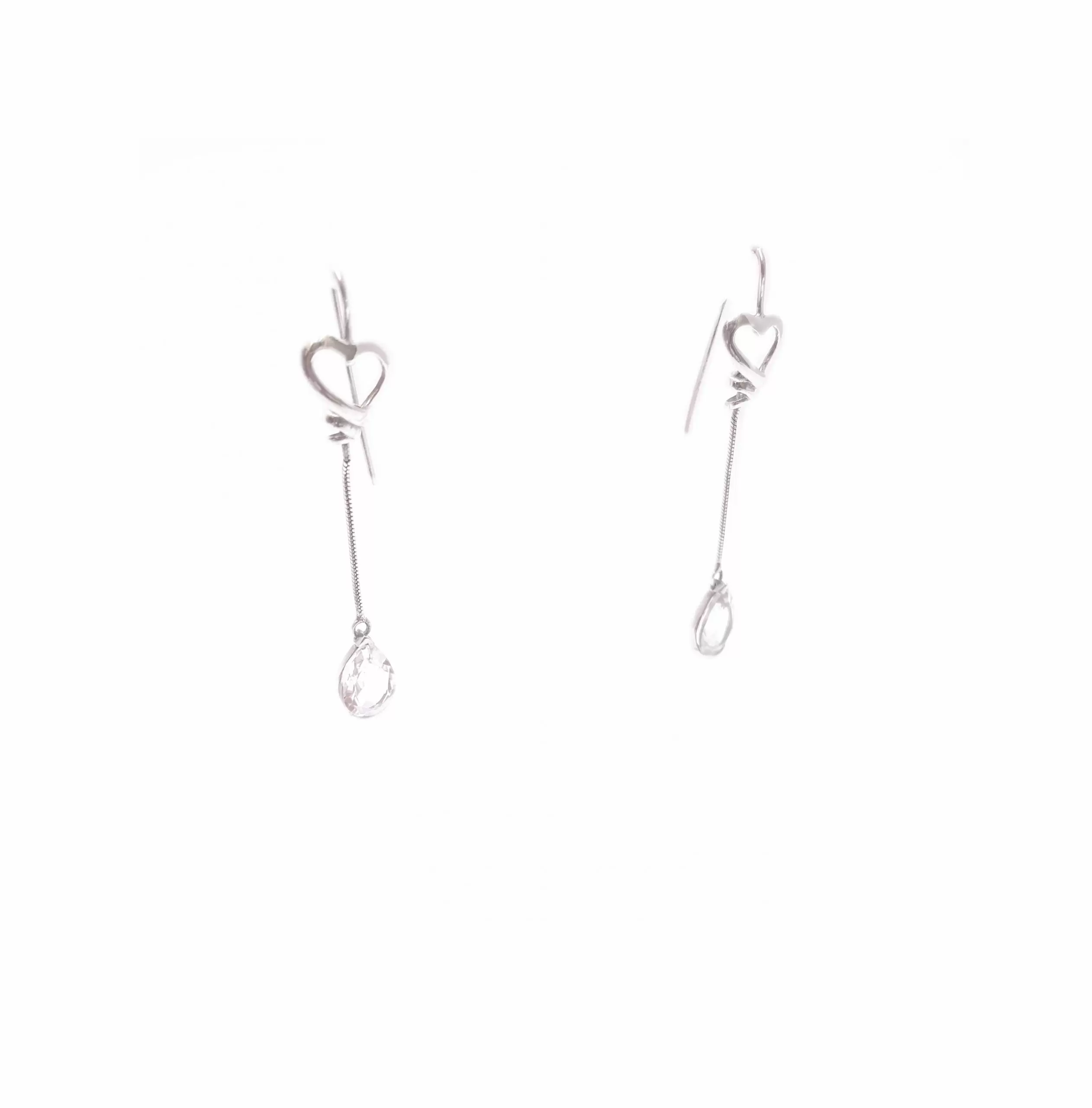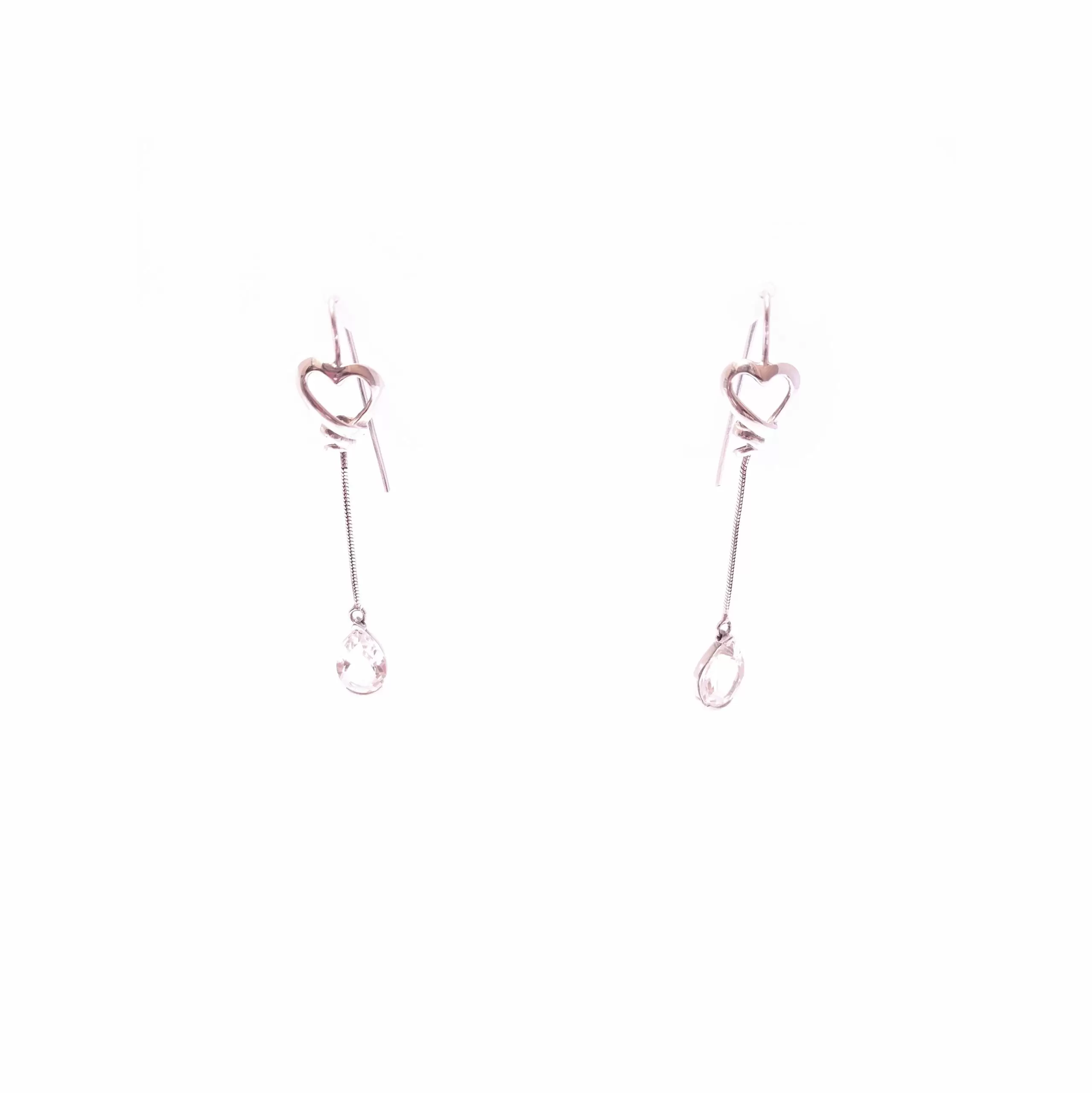 Brinco Pendurado Coração com Gota de Cristal em Prata 925