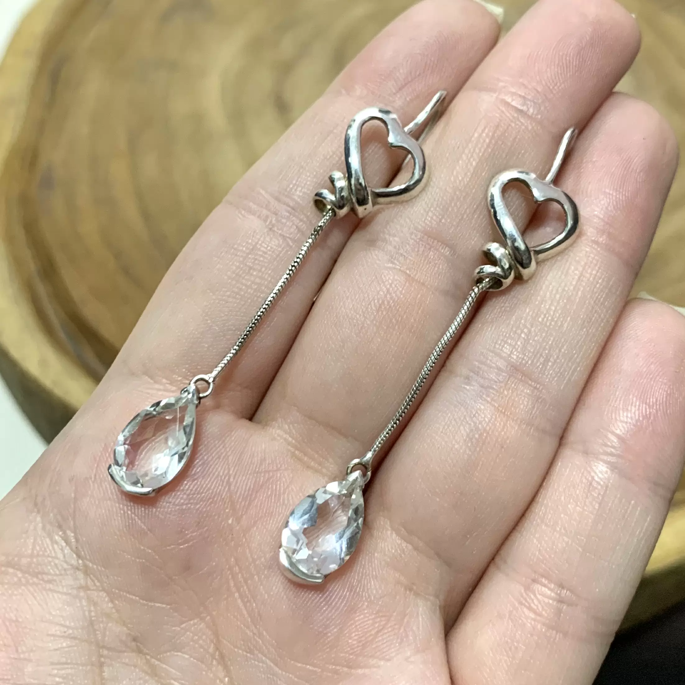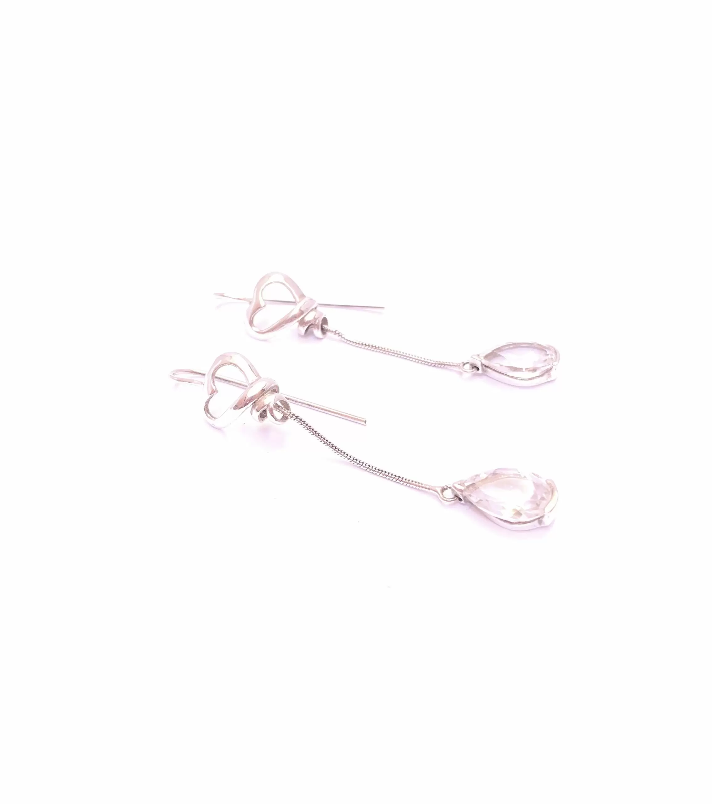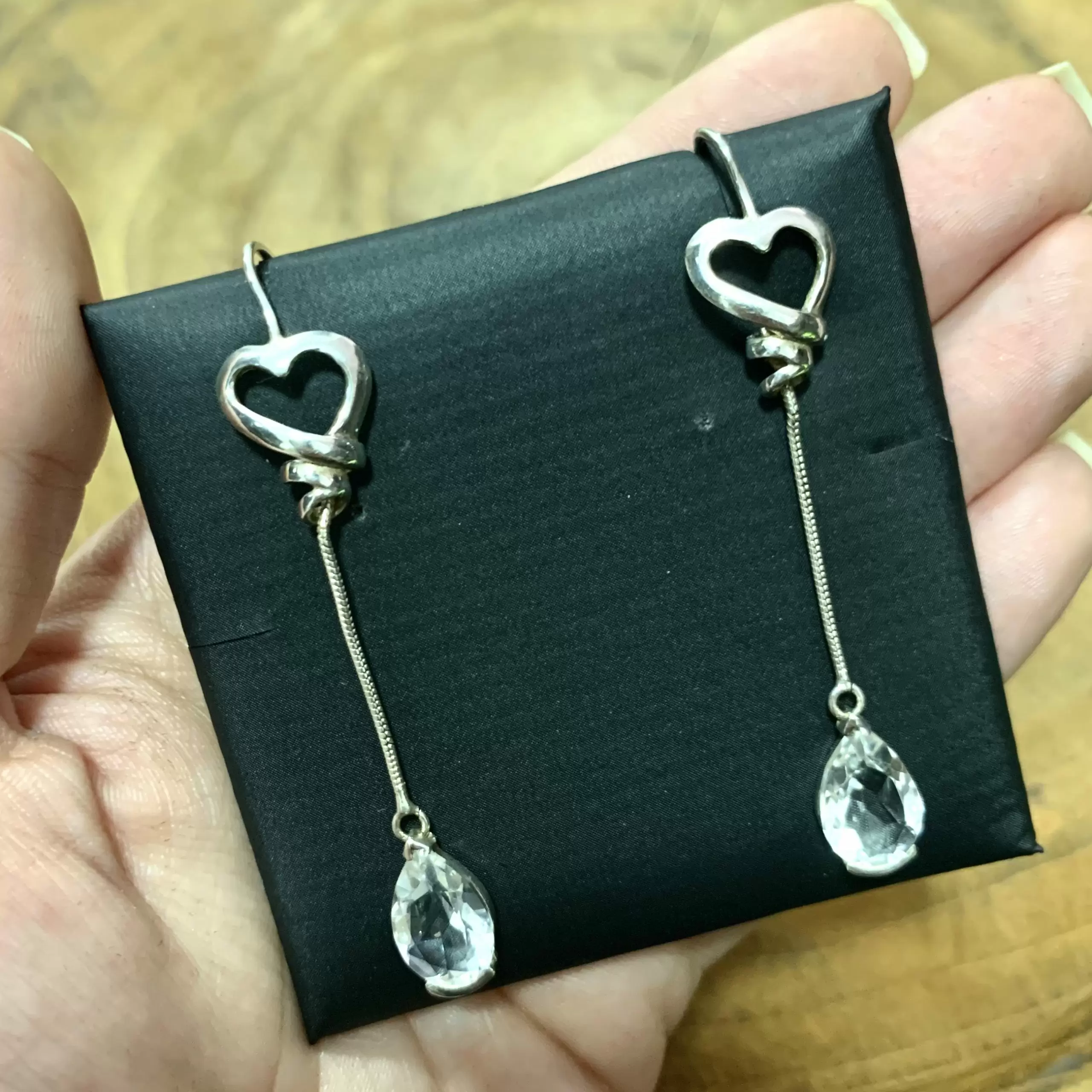 Brinco Pendurado Coração com Gota de Cristal em Prata 925