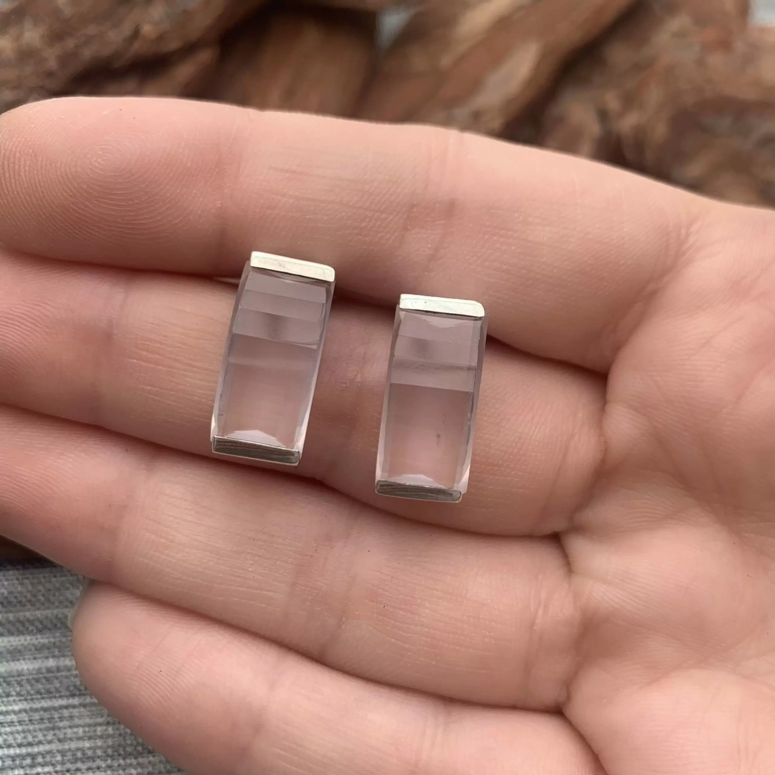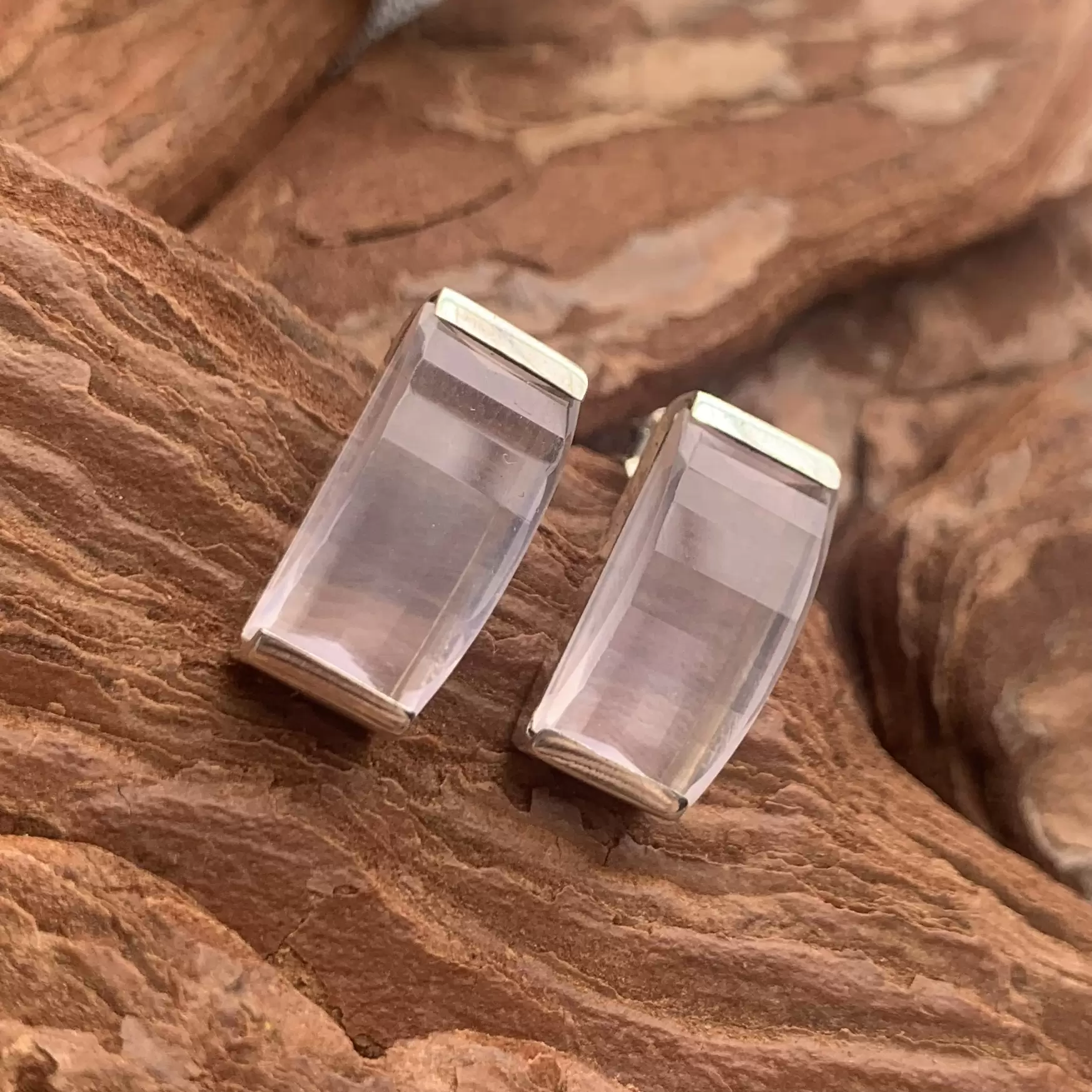 Brinco Retangular fixo de Quartzo Rosa