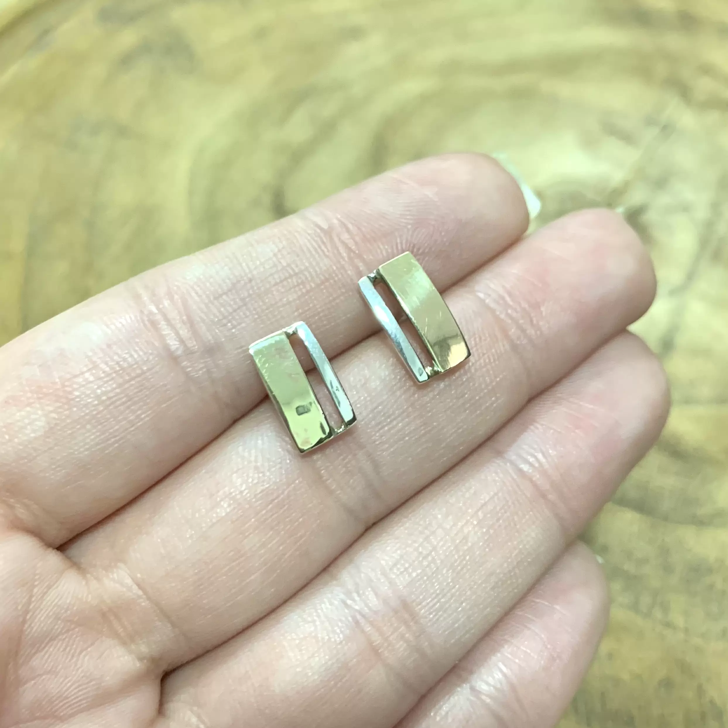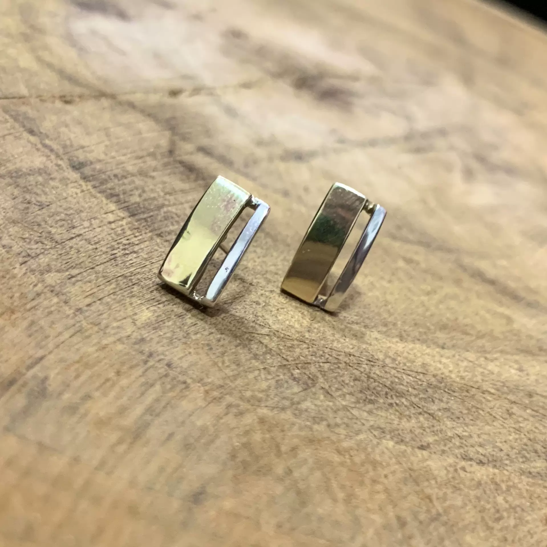 Brinco Retângulo Delicado com Aplique Ouro em Prata 925