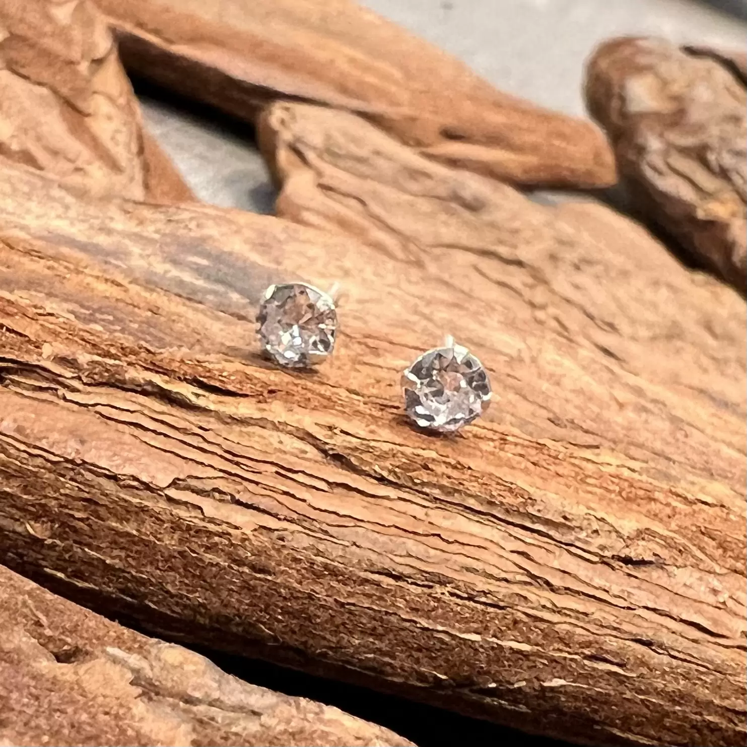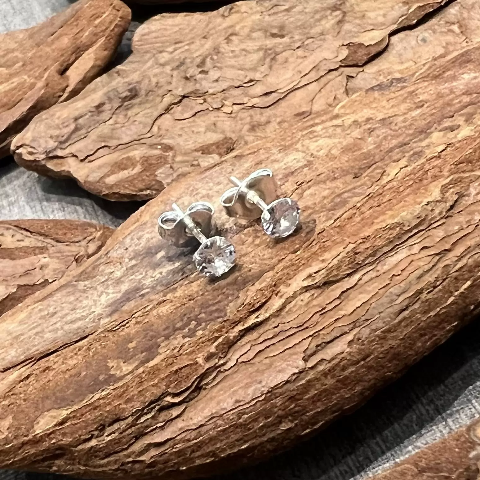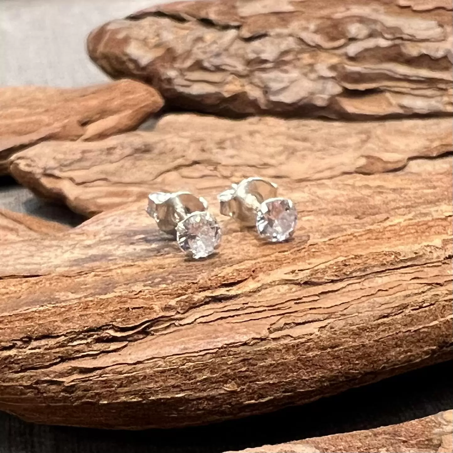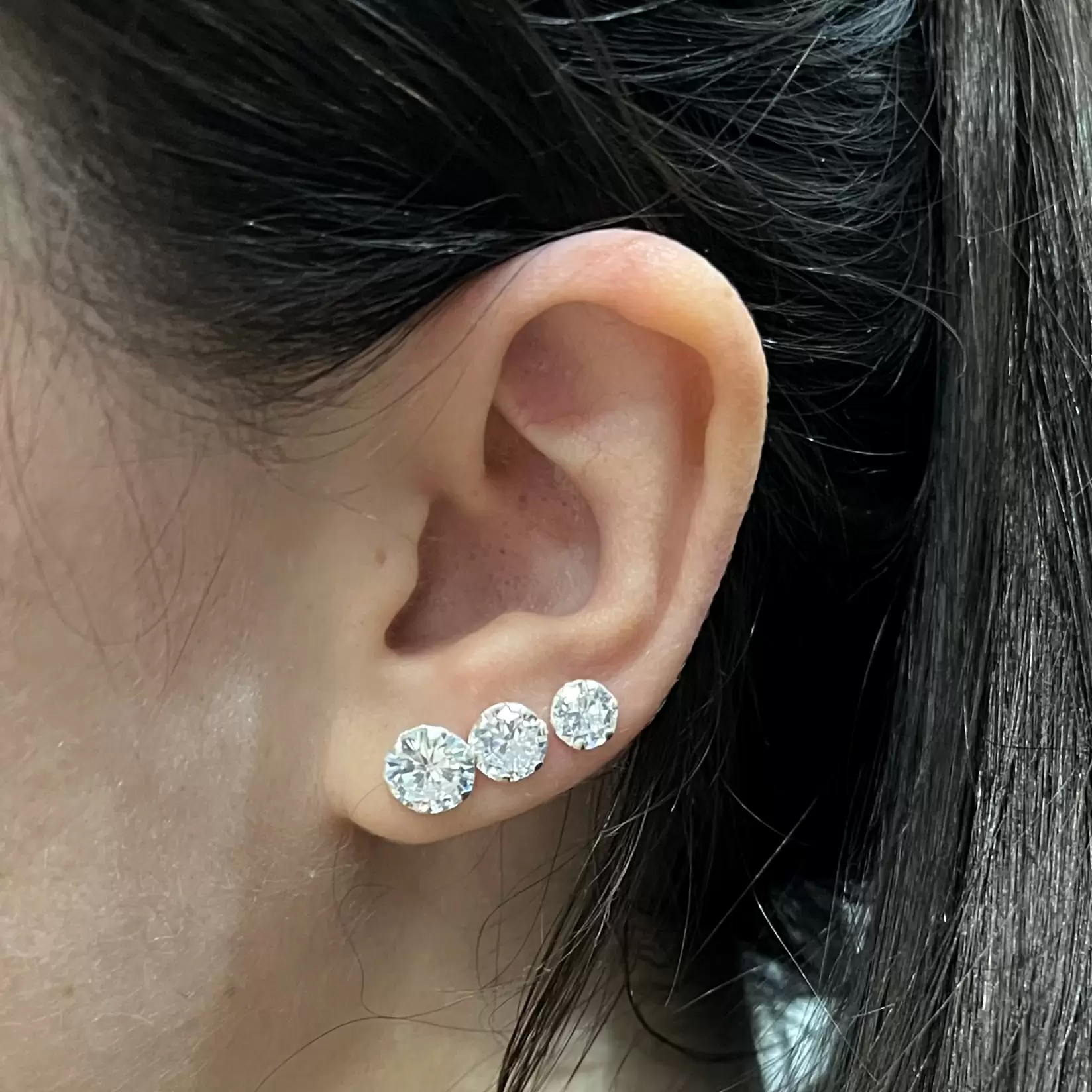 Brinco de zircônia branca redonda com 4mm feito em Prata 925.