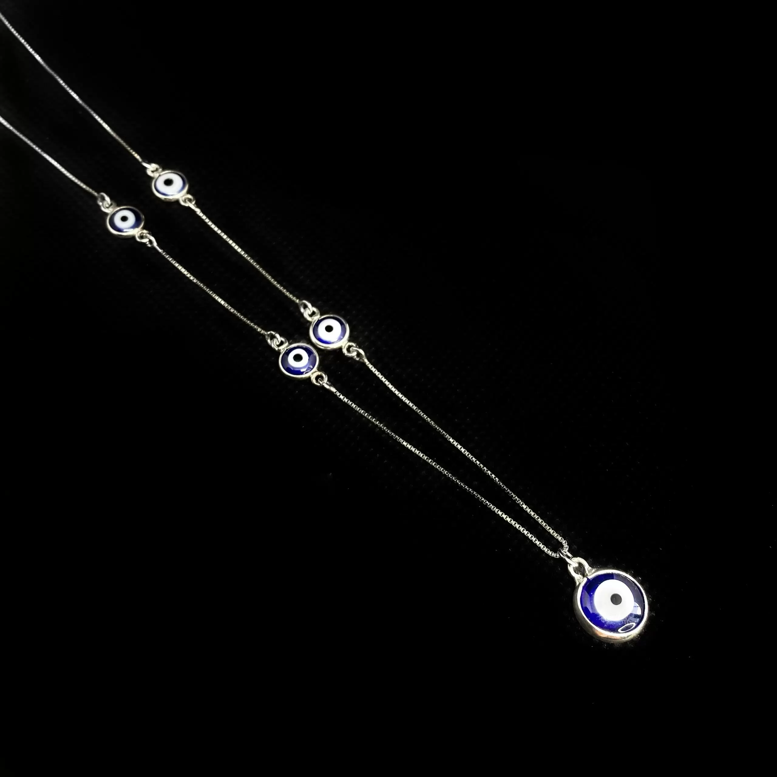 Colar 4 Olhos Grego Pequenos , 1 Médio, Azuis Escuros em Prata